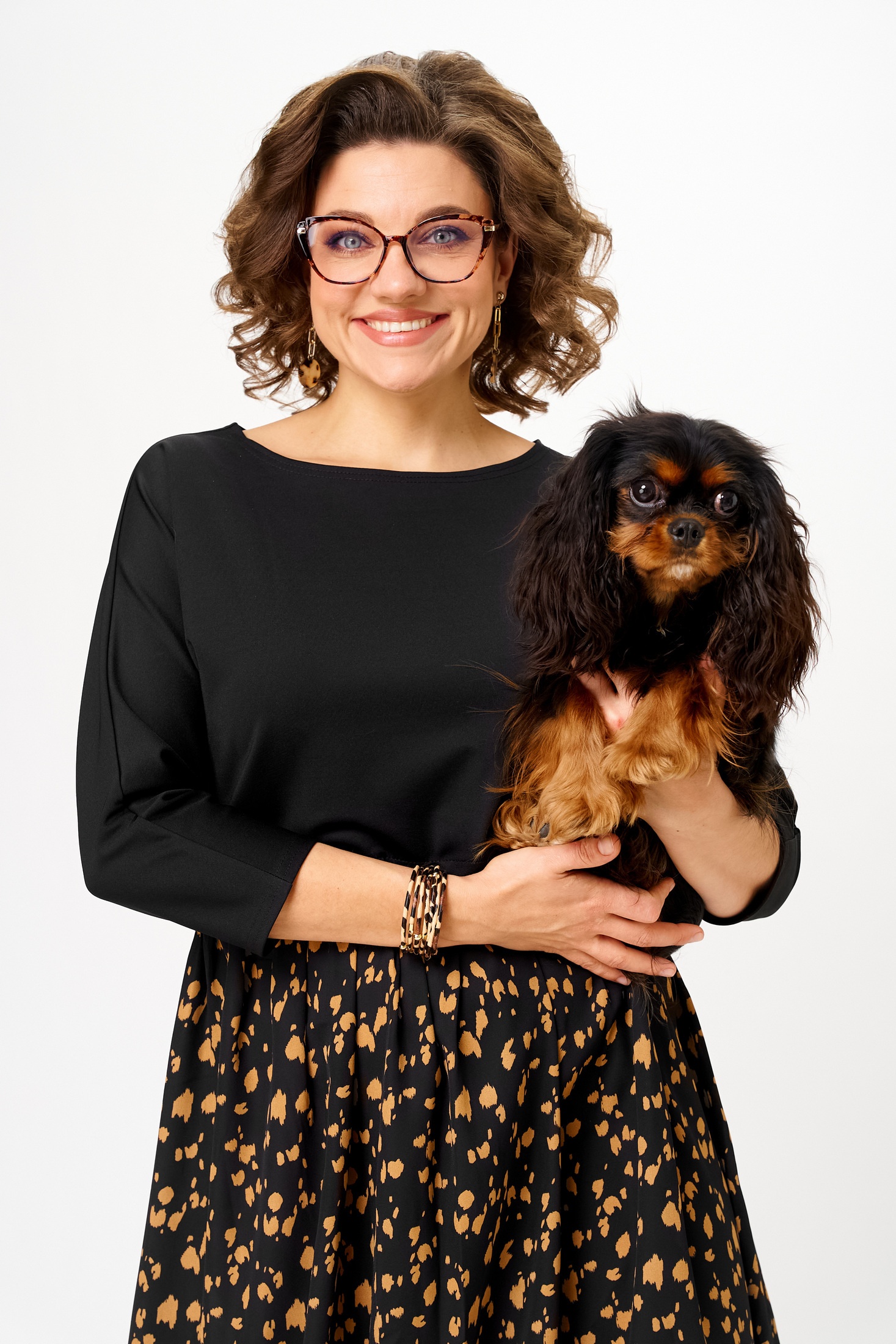 Платье 1309-1 черный+принт Anastasia
