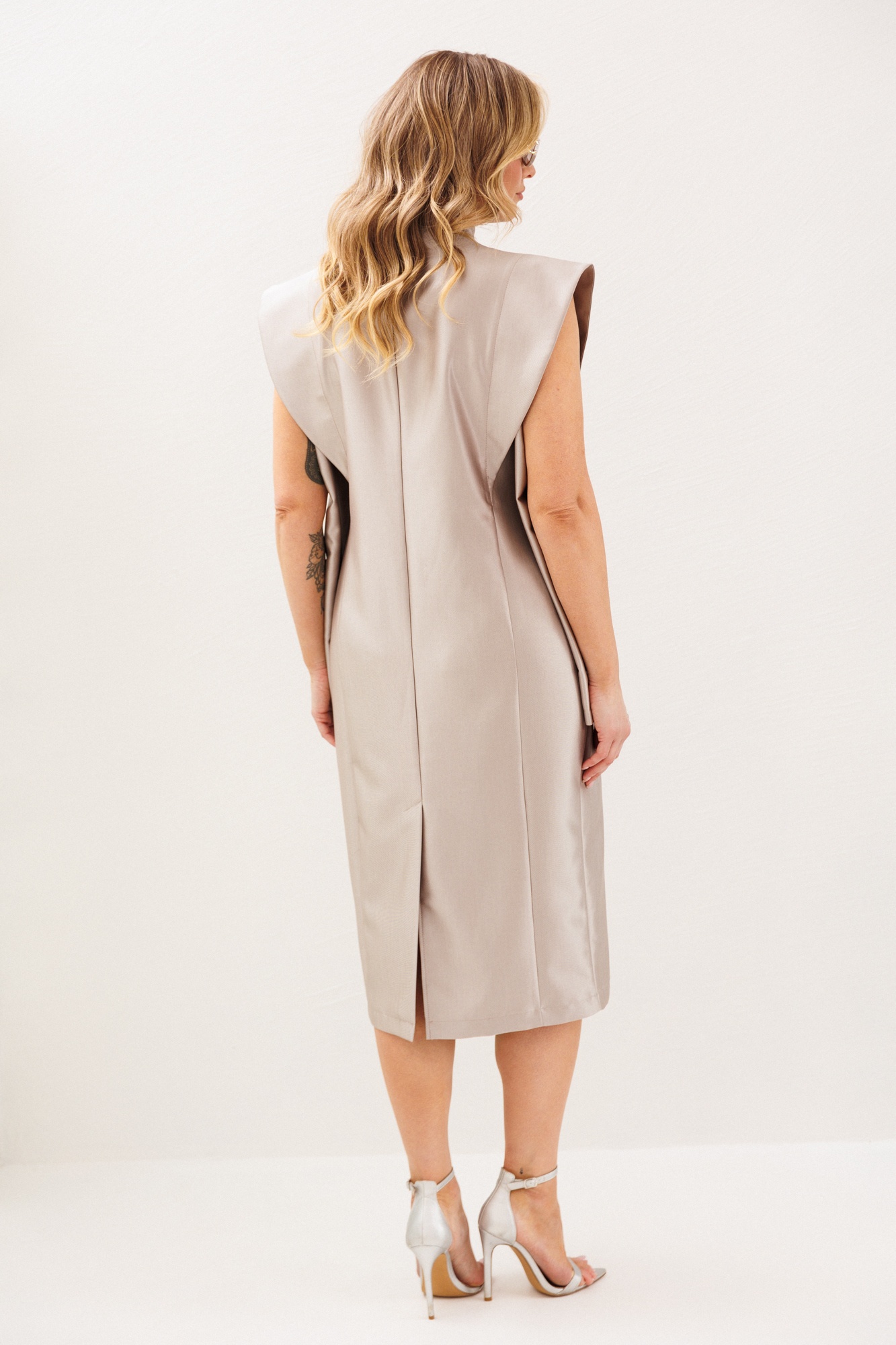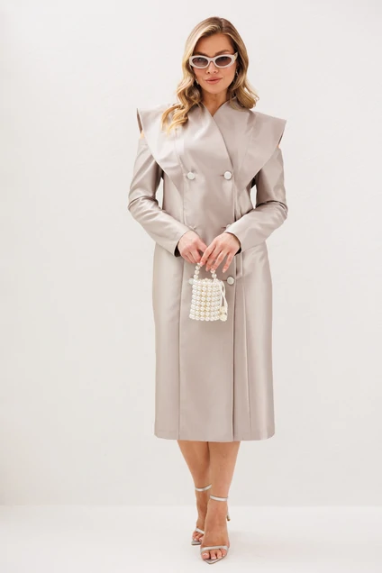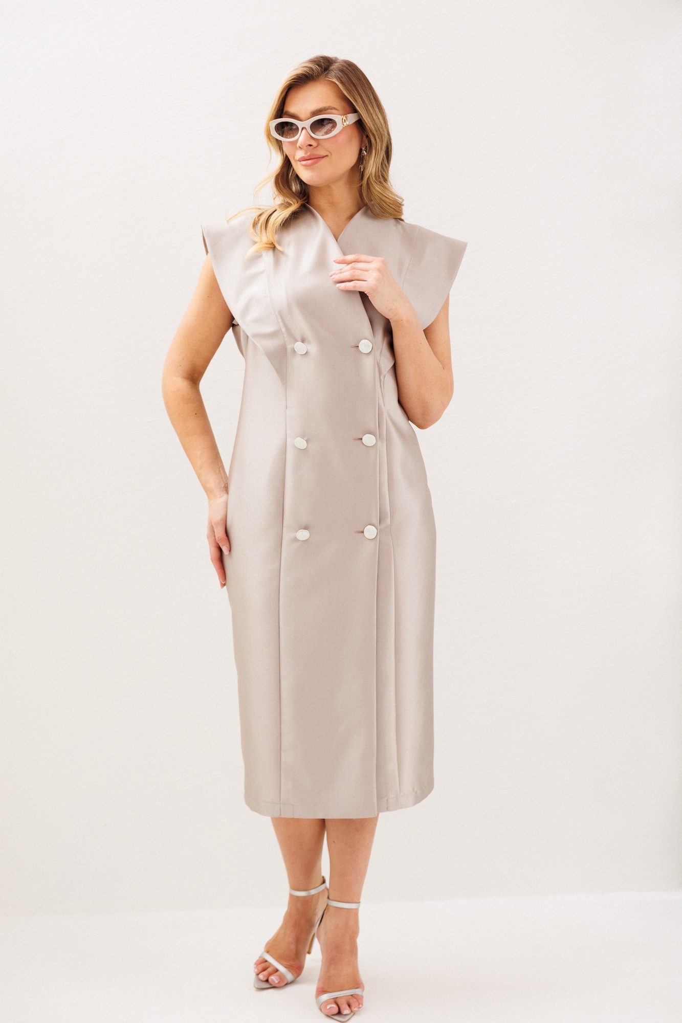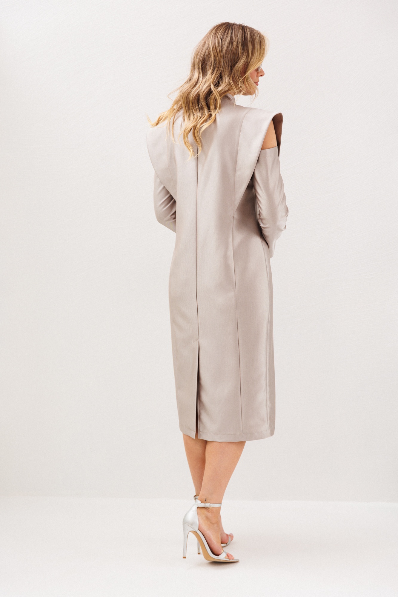 Платье 1348-1 жемчужный бежевый от бренда Anastasia — это великолепный выбор для женственного образа на любое торжество. Коллекция бренда выполнена из текстильной ткани с прекрасным сочетанием полиэстера и вискозы, что обеспечивает комфорт и легкость в носке. Платье двубортное, полуприлегающего силуэта, с уникальными крылышками в зоне плеч и груди, создающими кокетливый акцент. Рельефное прилегание достигается за счет швов, выходящих из плечевого шва, и средним швом с шлицей по спинке. Длина изделия по спинке составляет 119 см, рукава втачные с открытыми плечами — 52 см. Выполнено в жемчужном бежевом цвете, идеально подходящем для весенне-летнего сезона, подчеркнет вашу изысканность на любом празднике.