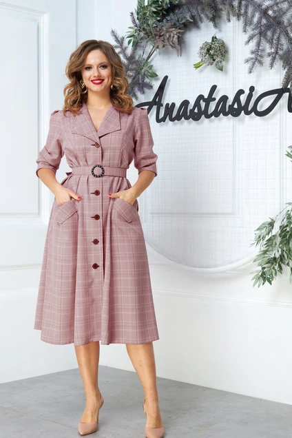Платье в стиле фильма "Служебный роман" из текстильной ткани в клетку, прилегающего силуэта. По полочке и спинке идут рельефы из плечевого шва, застежка на петли и пуговицы. Воротник типа "опаш", рукав 3/4 длины с отложным манжетом. По полочке карманы с отложным клапаном. платье по низу гаде. В комплекте съемный пояс. Пояс (пряжка) и пуговицы могут незначительно отличатся от фото. Длина платья: (48-56)- 115см., (58-62)-117 см. Длина рукава: (48-62)-45см.