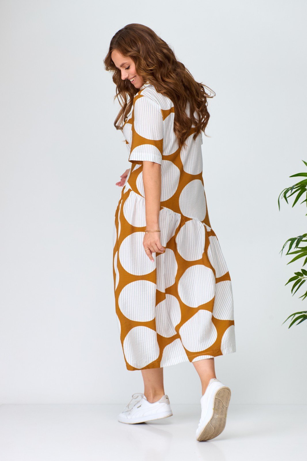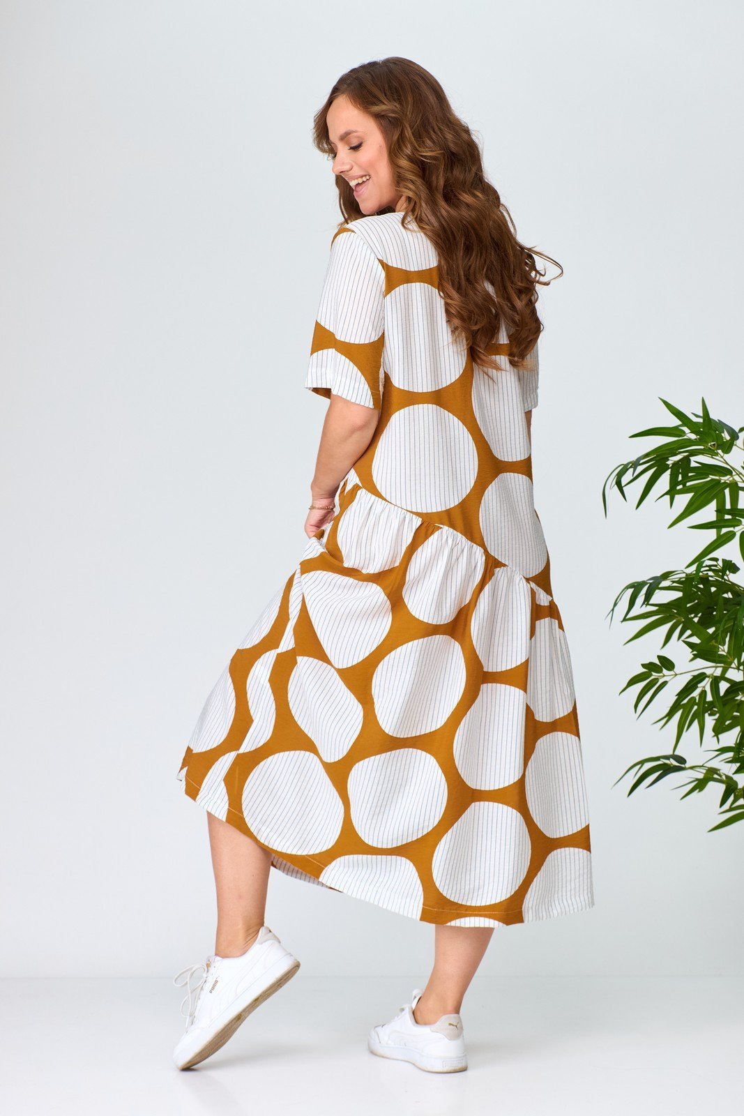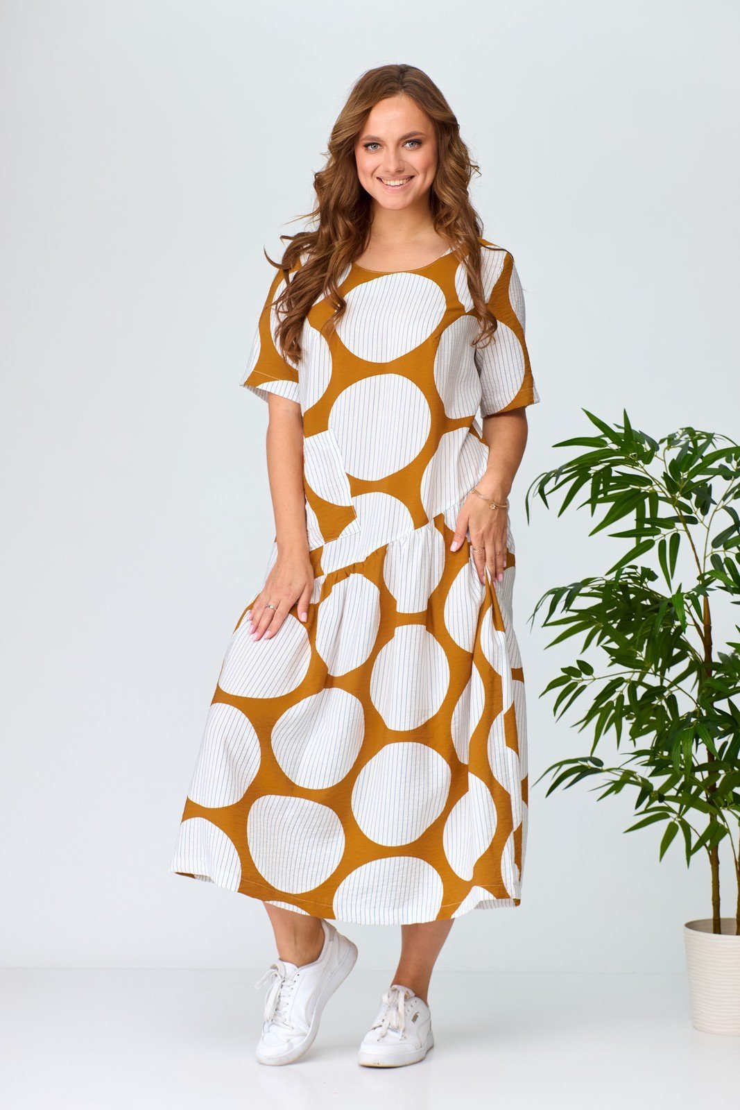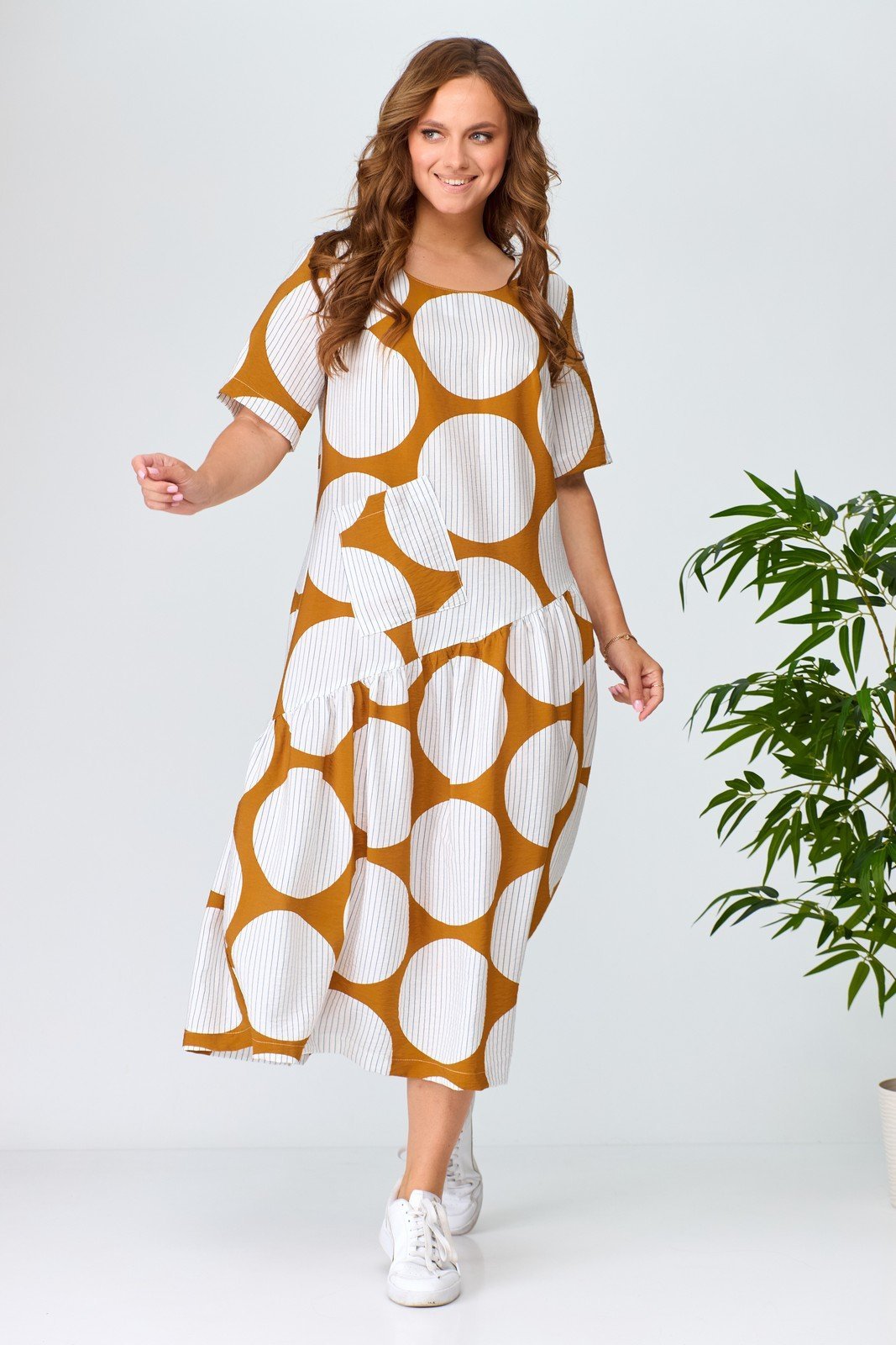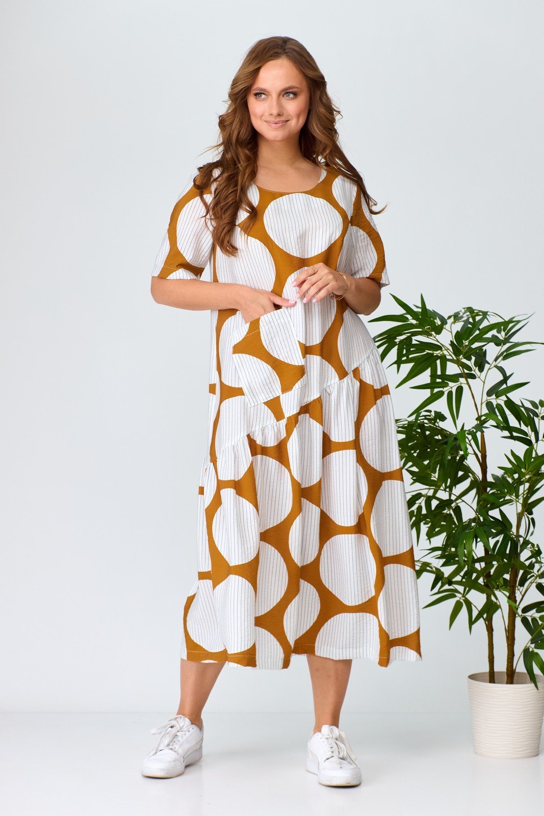 Платье 999-1 молочный + горчица Anastasia подчеркнет ваш уникальный стиль. Коллекция бренда Anastasia предлагает текстильное платье прямого силуэта с оригинальным принтом. Изделие выполнено из вискозы и полиэстера, что обеспечивает комфорт и легкость в носке. Длина платья (50-54) составляет 118 см, а (56-60) — 122 см, длина рукава составляет 27-28 см. Платье украшено отрезным косым валаном со сборкой и накладным карманом на передней части. Идеально для весеннего и летнего сезонов, это платье станет отличным выбором как для повседневного использования, так и для отдыха. Цветовая палитра в молочных и горчичных тонах добавляет яркости вашему образу.