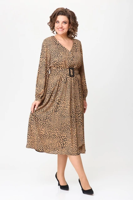 В области талии по боковым швам обработаны шлевки через которые продет пояс с декоративной пряжкой по переду. Юбка платья на подкладке.