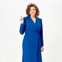 Платье полуприлегающего силуэта, выполнено из однотонной ткани. Платье длиной выше колена. Полочка платья с двубортной застежкой на петли и пуговицы. Горловина V-образной формы, с отложными лацканами и воротником пиджачного типа. Полочка с вертикальными рельефами и прорезным карманом с клапаном.