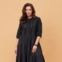 Платье из легкой натуральной ткани станет идеальным выбором для любого случая. Длина макси и свободный крой создают элегантный силуэт, а воланы и кружево добавляют женственности и романтичности. Модель с короткими рукавами, со стойкой и застежкой спереди на пуговицах удобна в носке и подчеркивает достоинства фигуры. Модный принт «в горох» добавит свежести вашему образу.