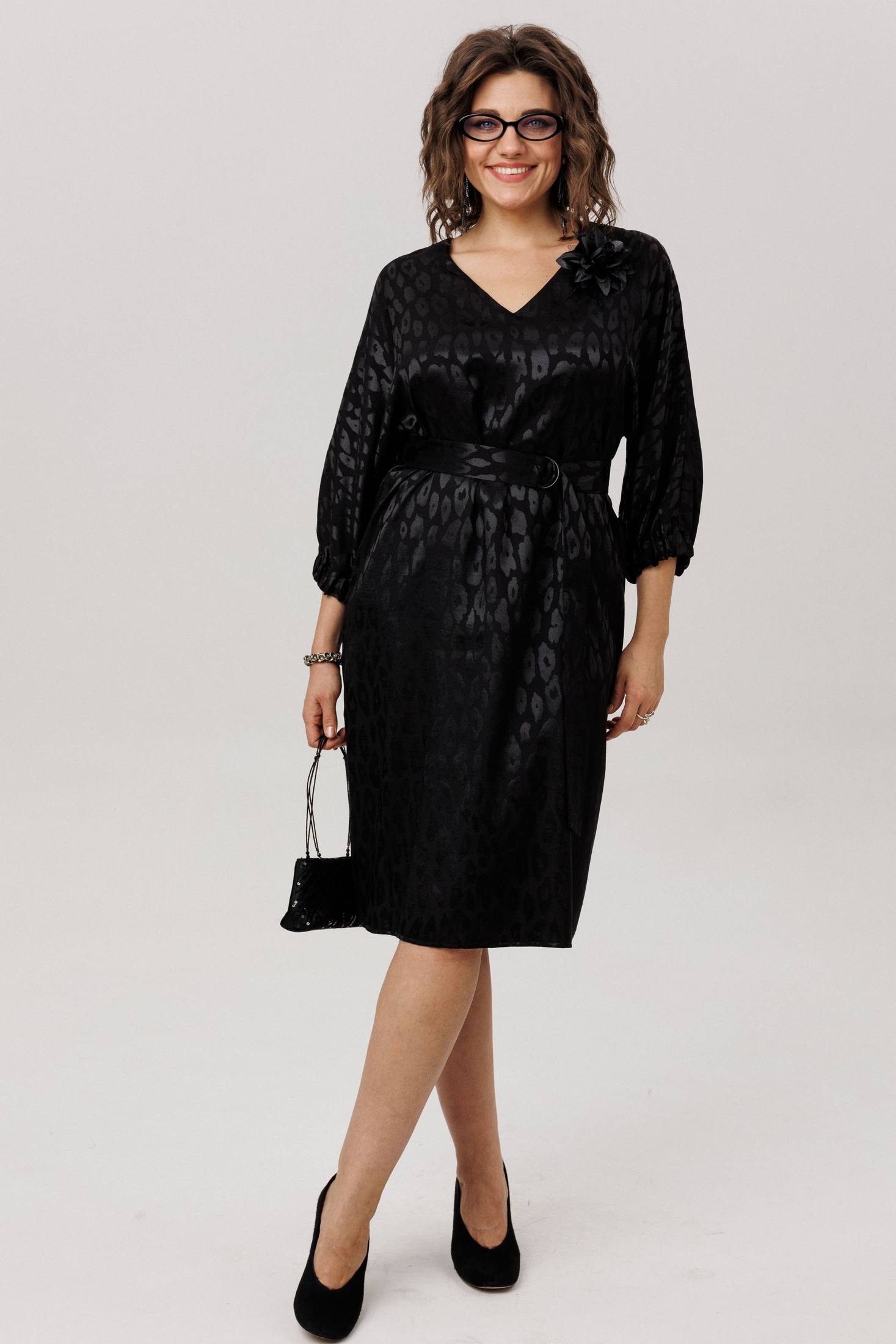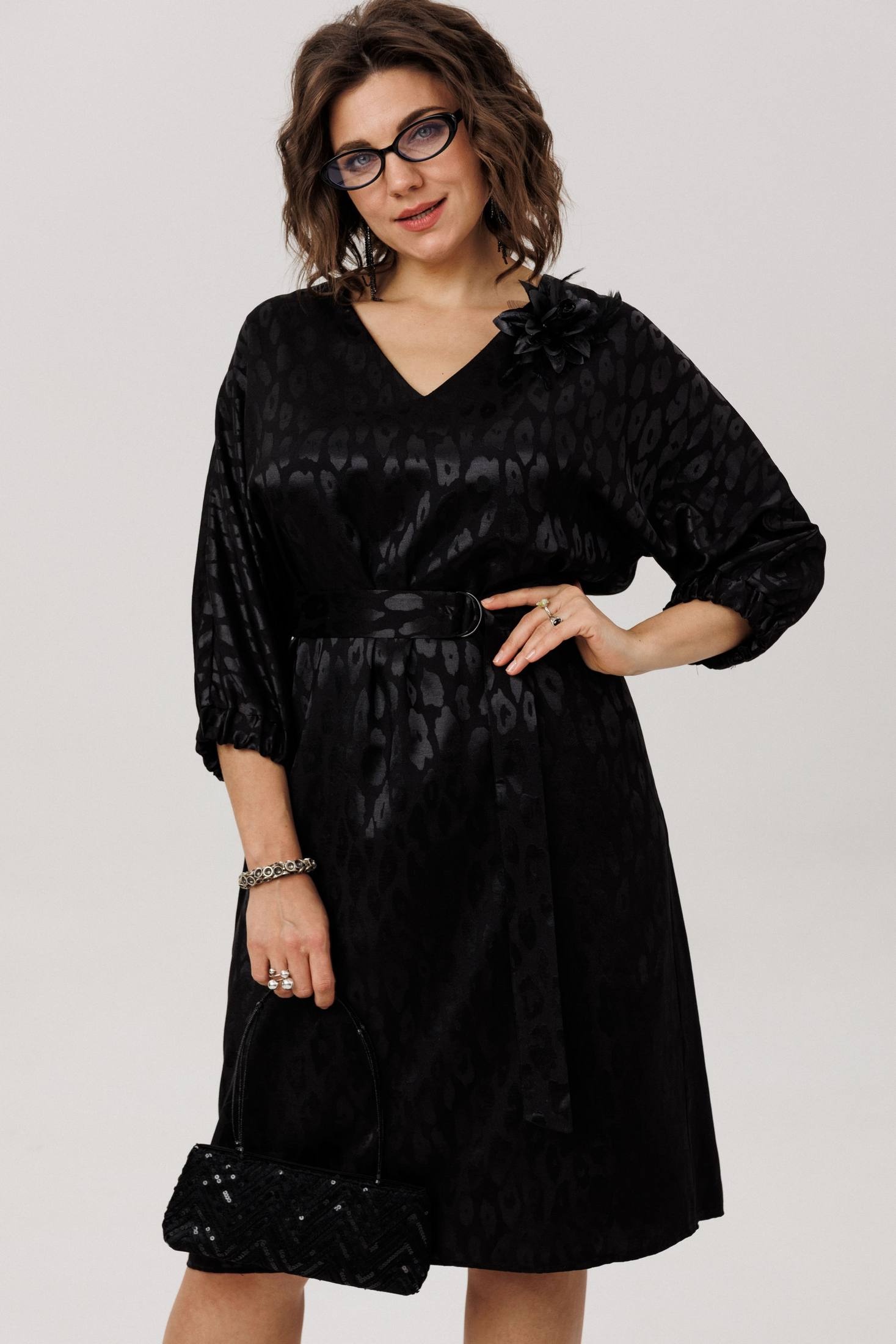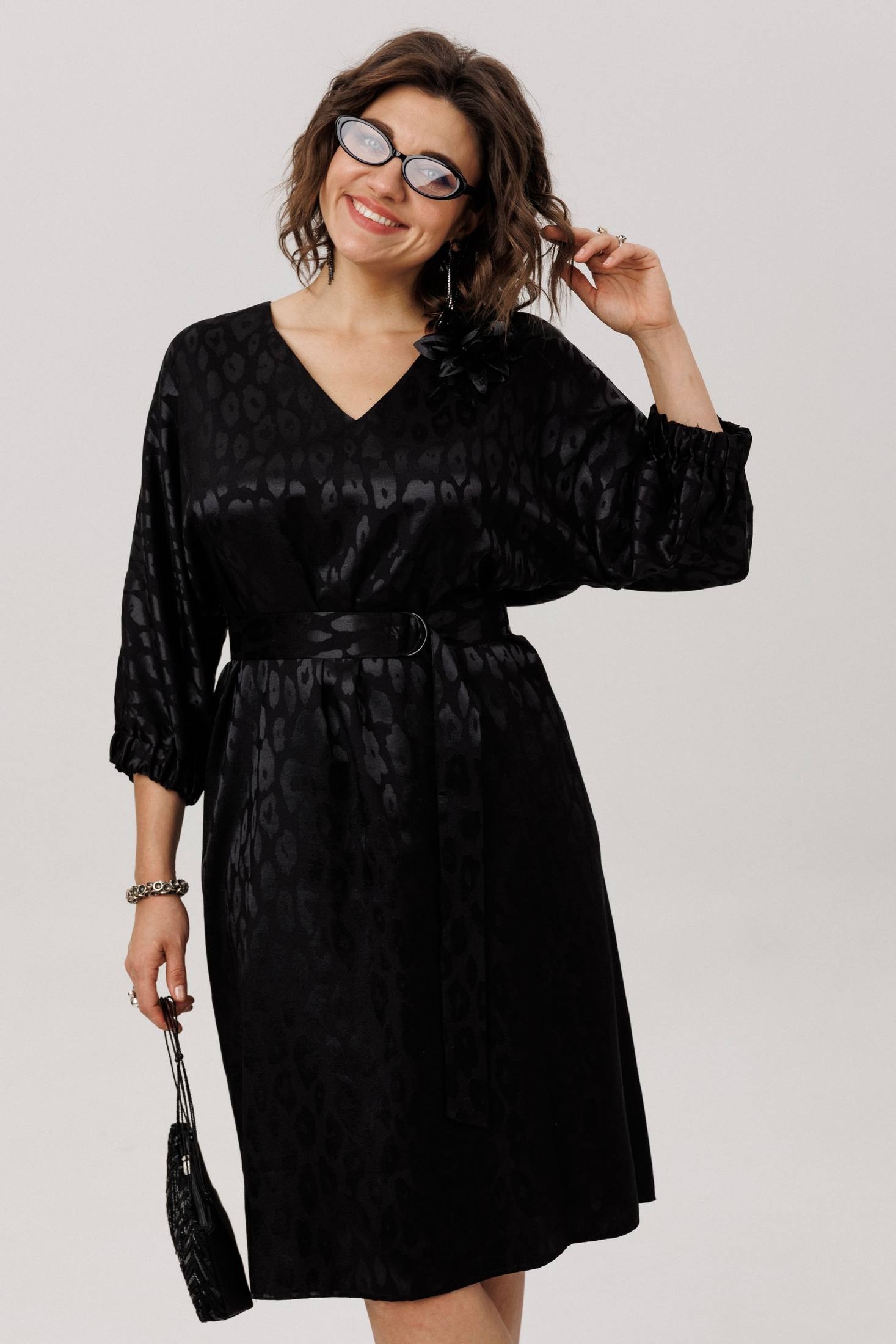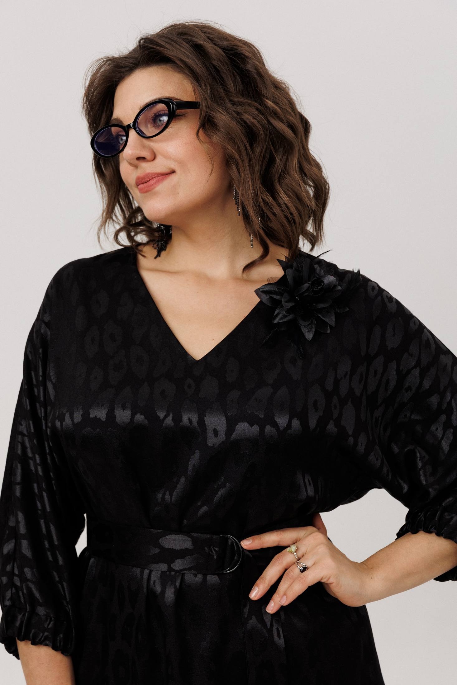 Цельнокроеный рукав-кимоно обеспечивает свободу движений и комфорт, а манжет на резинке придает образу изысканность. Пояс в комплекте прекрасно подчеркнет вашу талию, а съемная брошь-цветок подчеркнет вашу романтичную натуру. V-образный вырез горловины элегантно открывает шею, делая образ еще более привлекательным.
