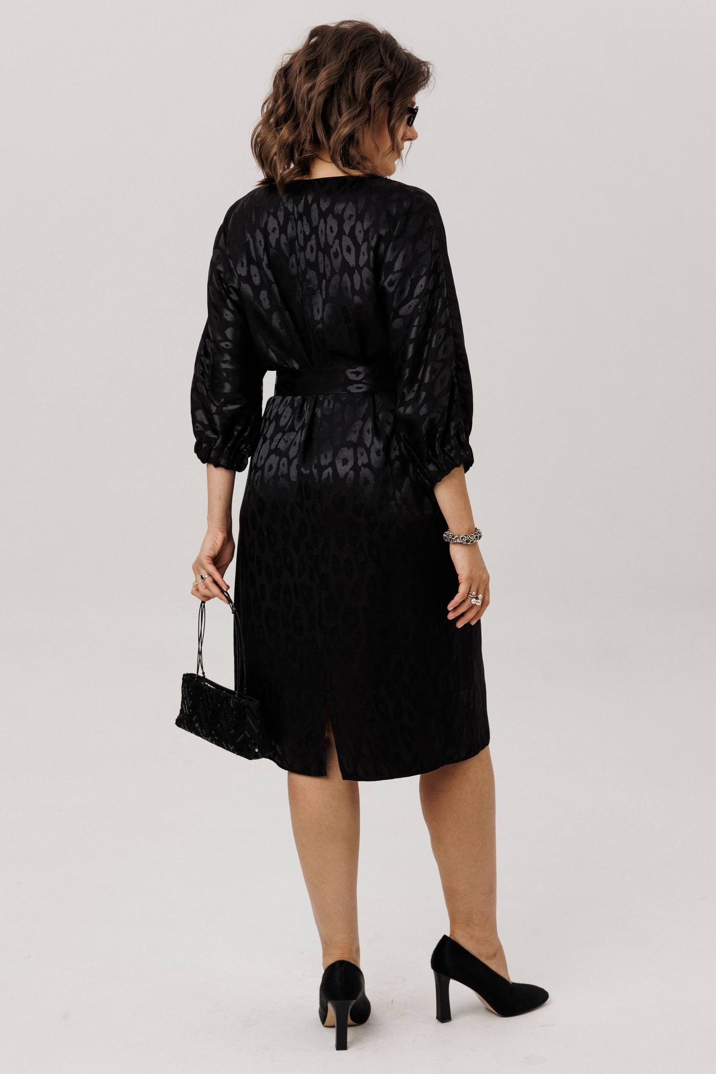 Это элегантное платье с прямым силуэтом станет идеальным дополнением вашего гардероба. Оно выполнено из легкой ткани с изысканным принтом в цвете «шелковый хищник», который добавляет наряду оригинальности и шарма.