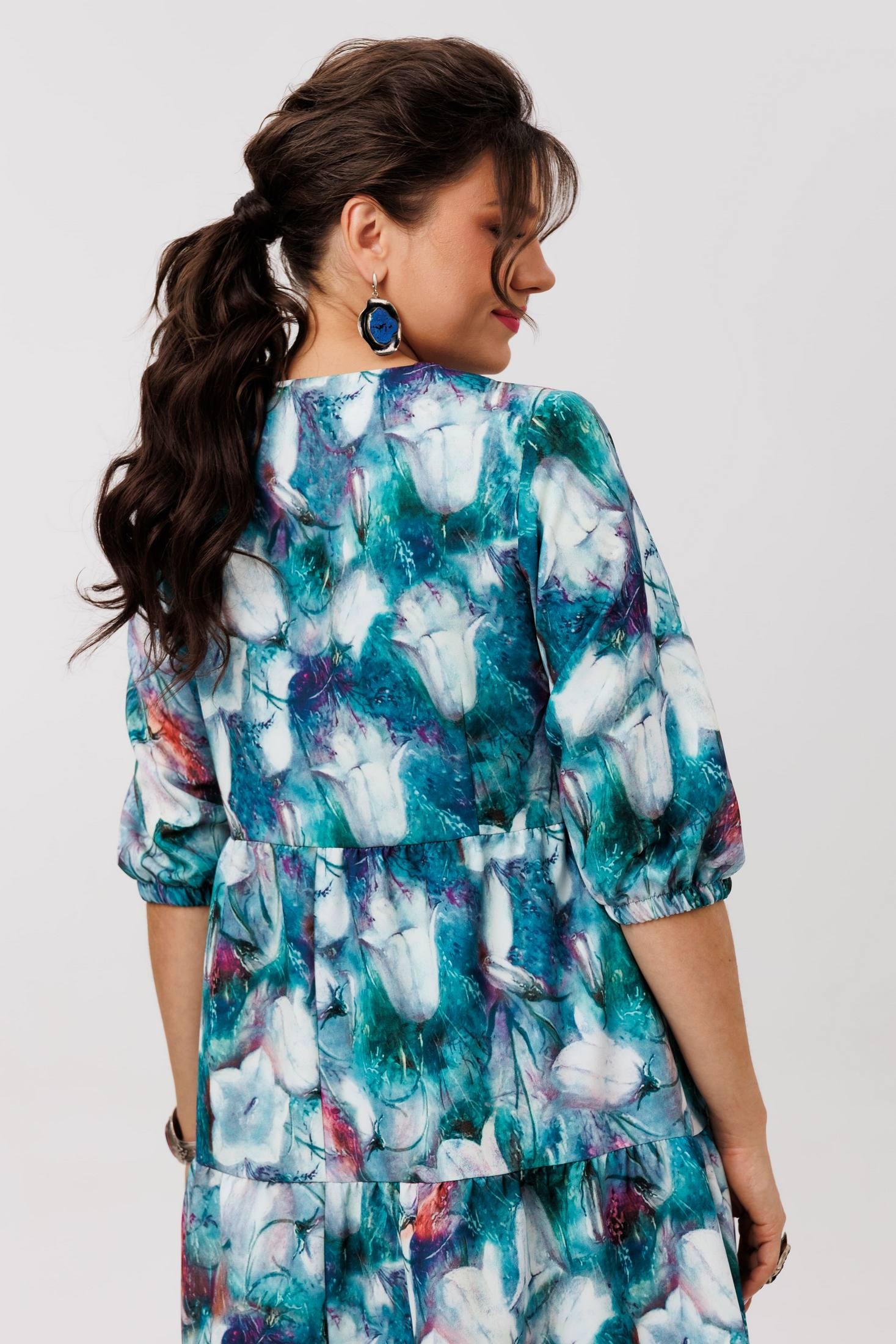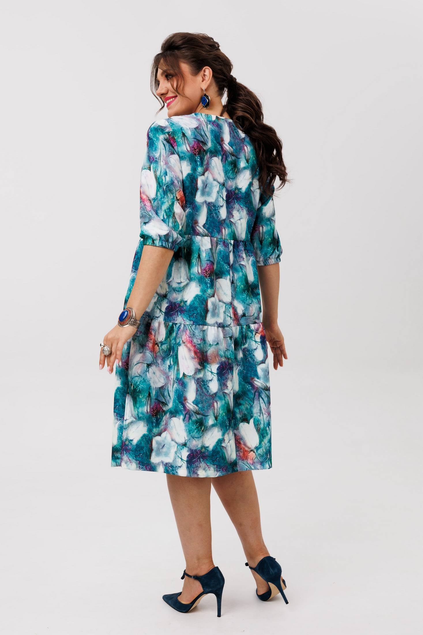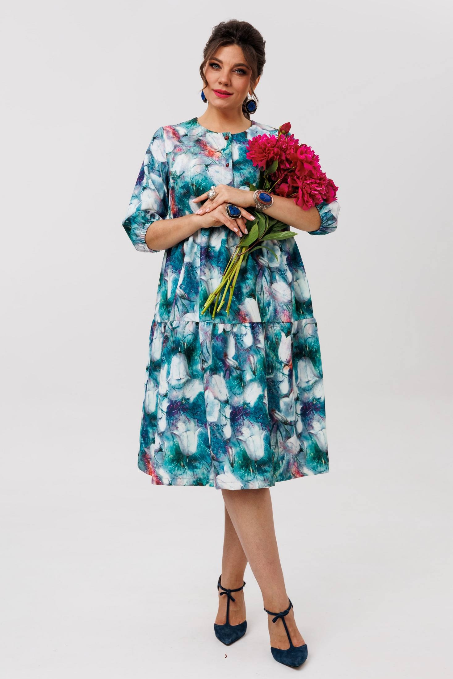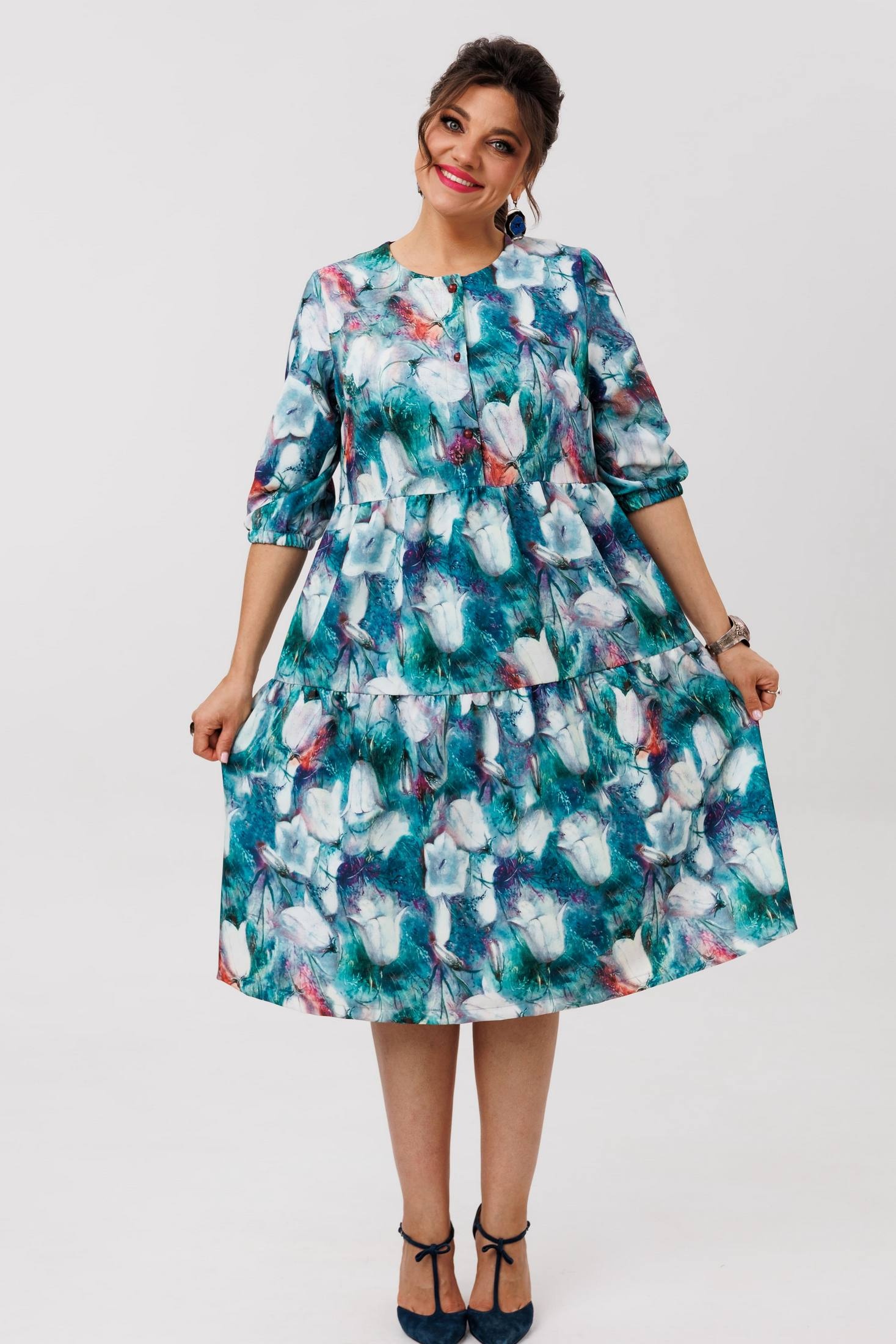 Платье 1649-1 колокольчики Anelli — это нарядная модель от бренда Anelli, которая покоряет своим романтичным настроением. Коллекция бренда выполнена из вискозы с добавлением полиэстера и эластана, что придаёт ткани мягкость и легкость. Свободный покрой и отрезной лиф под грудью обеспечивают комфорт, а каскады воланов добавляют динамику в образ. Идеально для весенне-летнего сезона и подчёркивает вашу грациозность на любом торжественном мероприятии. Длина изделия — 104-105 см, длина рукава — 40-43 см. Это платье с изысканным рисунком "колокольчики" приятно обволакивает фигуру и позволит вам почувствовать себя непринуждённо и уверенно в любой ситуации.