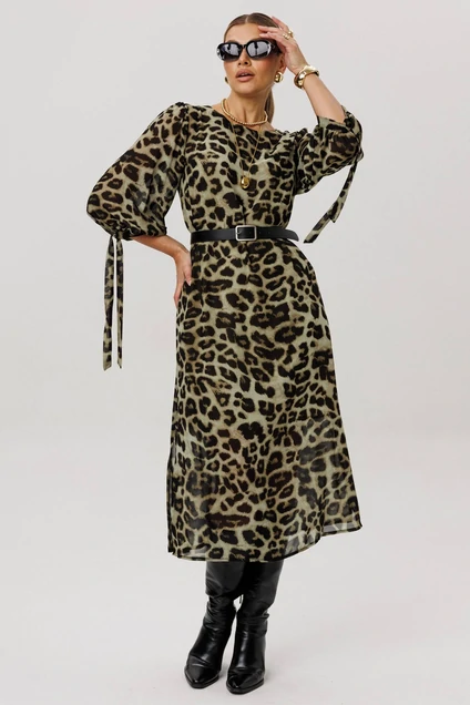 Платье 1733 зеленый леопард Anelli