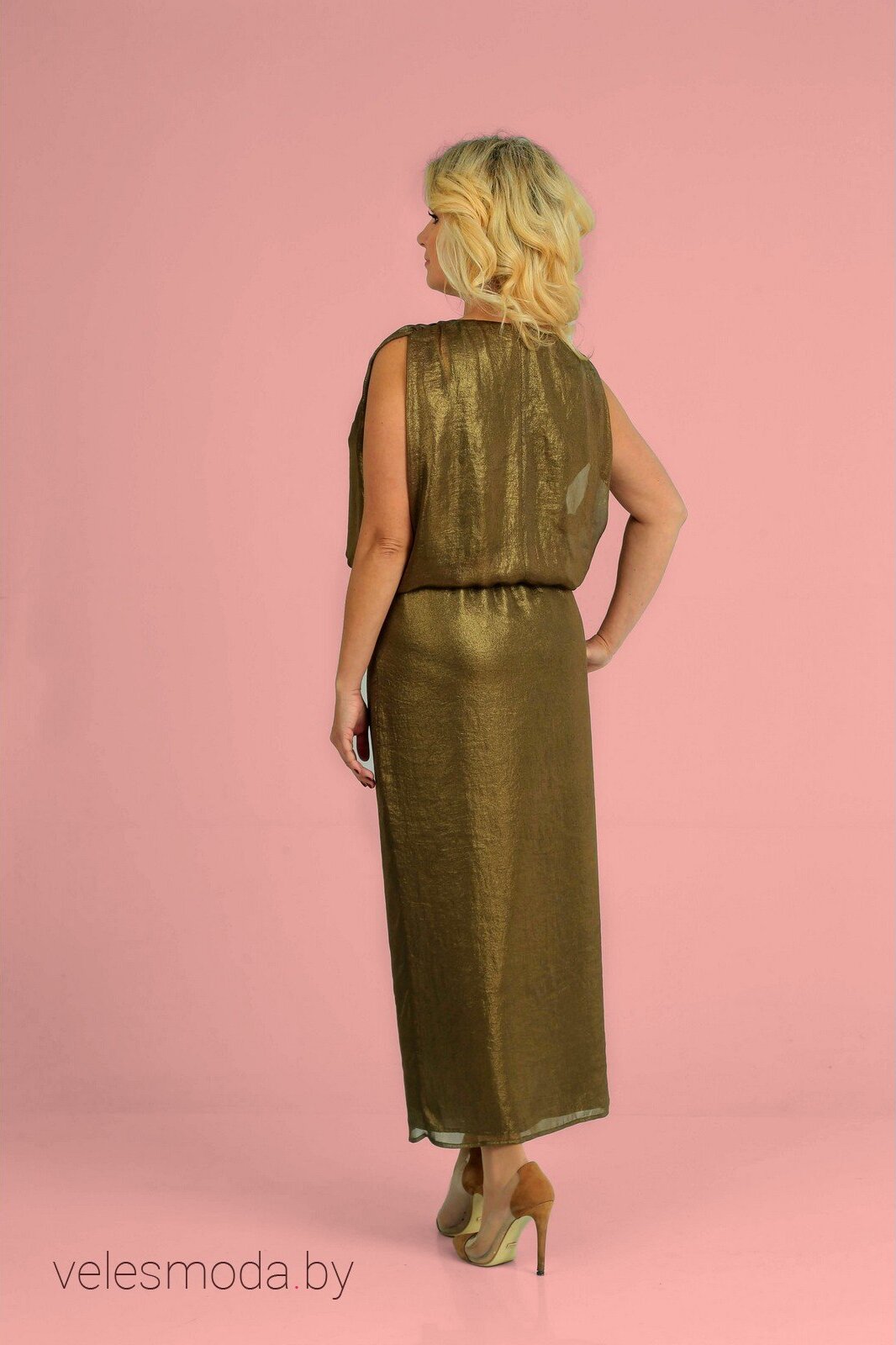 Категория:Платье. Нарядное платье на подкладке, украшено декоративной съемной брошью в виде цветка в тон плтья. Платье в комплекте со сьемным ремнем. Отрезное по линии талии. Ткань: Шифон с бронзовым напылением. Подкладка из креп-шифона. Длинна изделия 125см. Рост 164-170 см. Сезон:Лето.