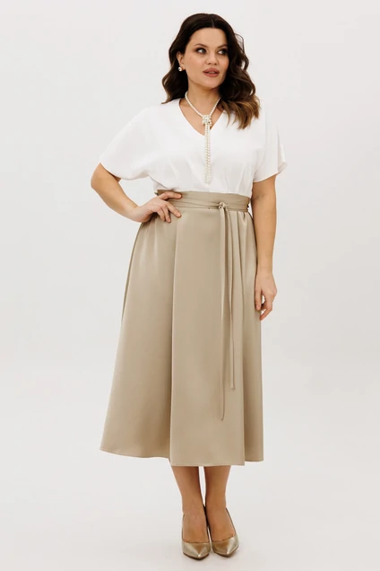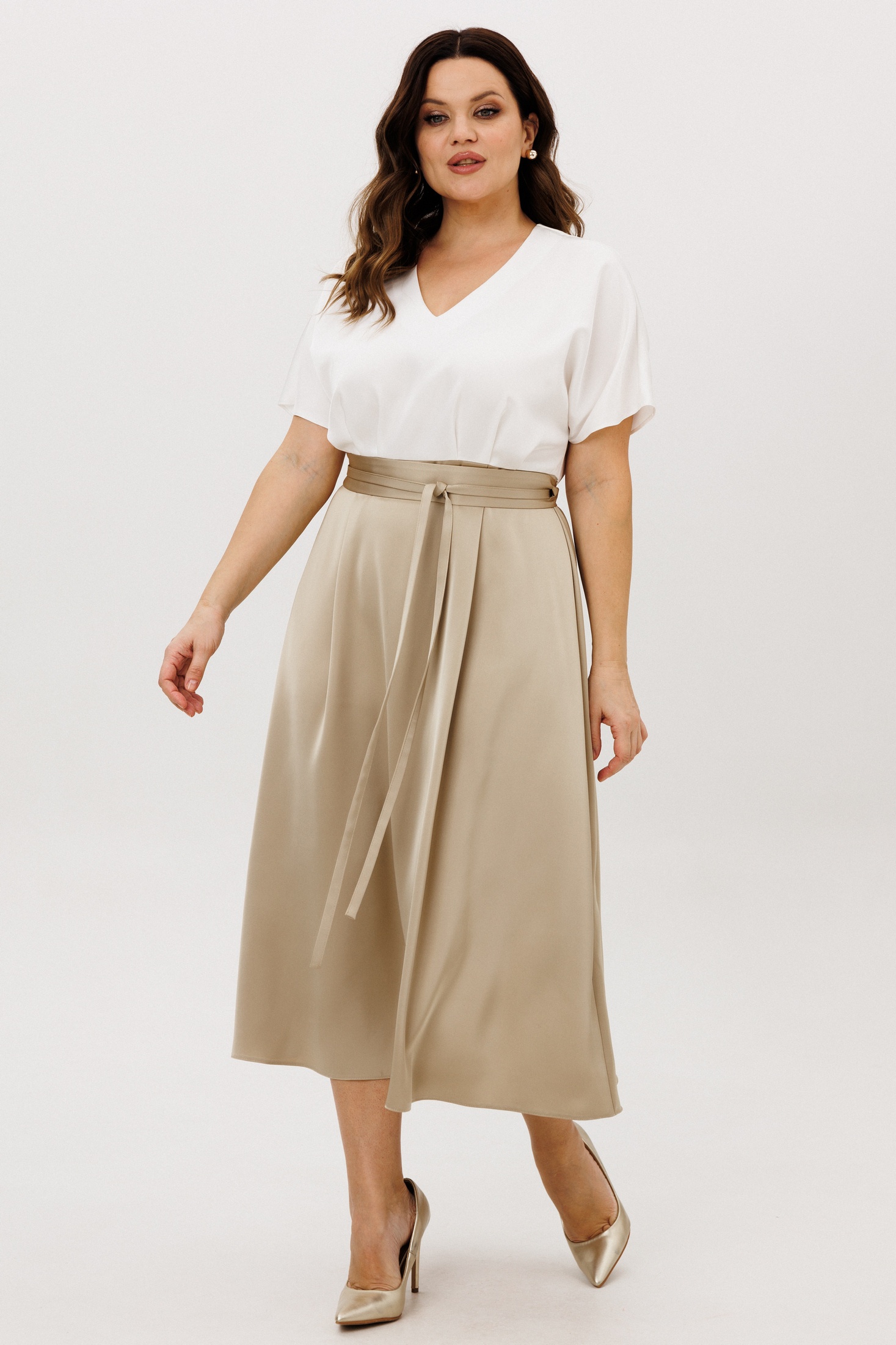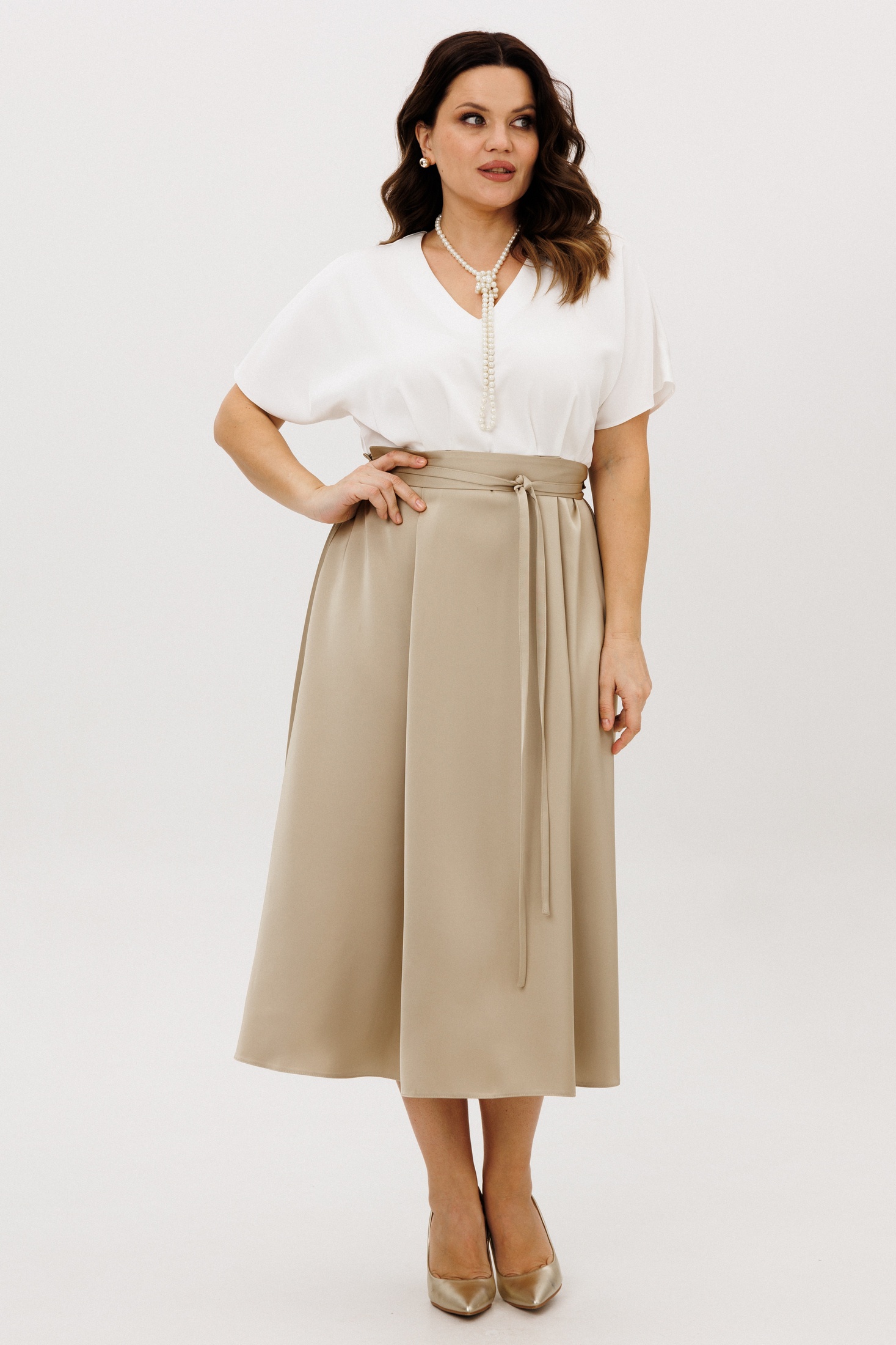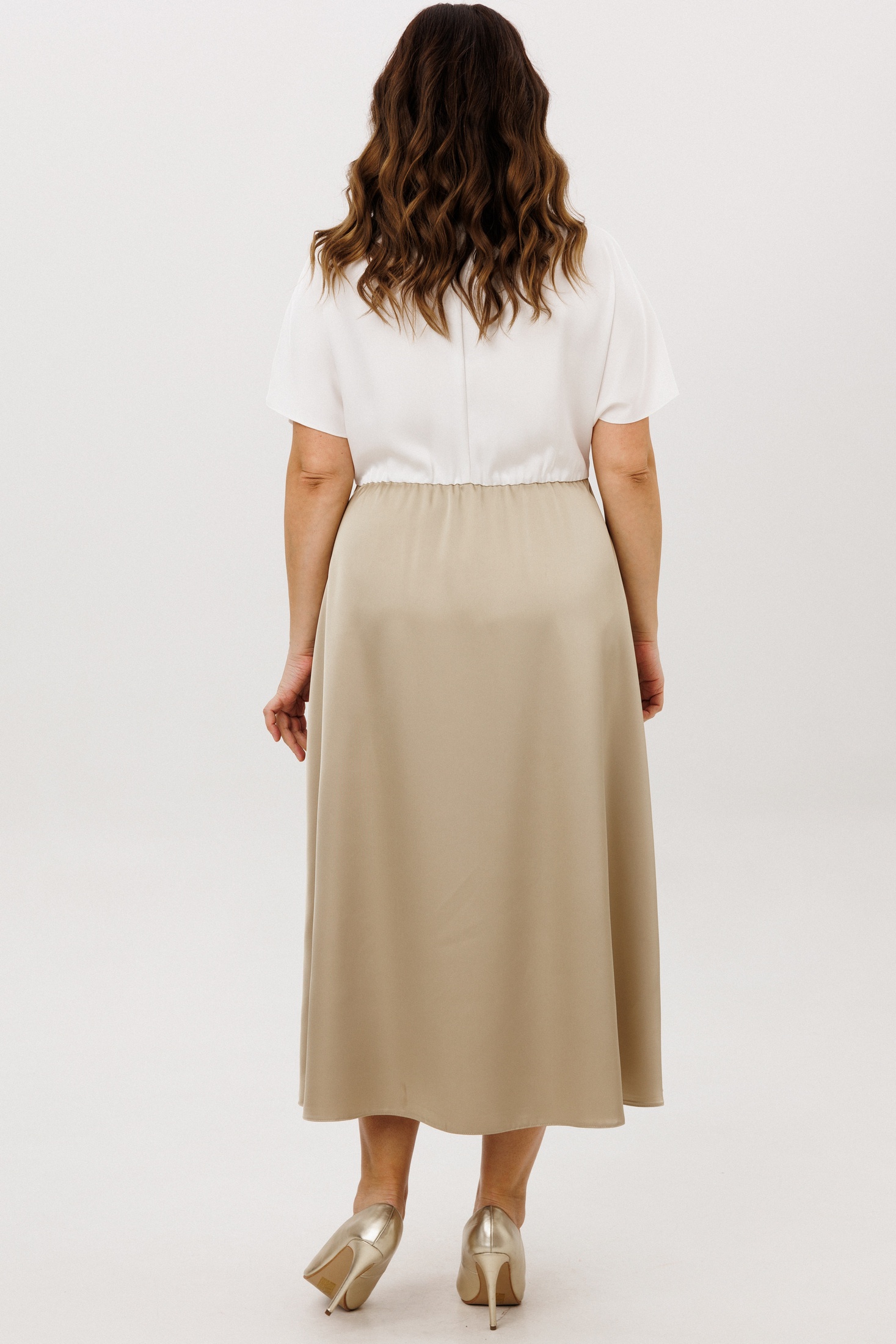 Платье 721-2 ANIDEN — это универсальная модель для вашего гардероба. Коллекция бренда ANIDEN предлагает платье из матового атласа, который легко ухаживать и не электризуется. Прилегающий силуэт и V-образный вырез подчёркивают женственность, а отрезная линия талии со складками добавляет элегантности. Платье имеет цельнокроеный рукав длиной выше локтя и резинку по спинке, обеспечивая комфортную посадку. А-силуэт юбки делает его подходящим для различных мероприятий, будь то работа или встреча с друзьями. Нежные бежевые оттенки и классический фасон подойдут для любого сезона и случая.