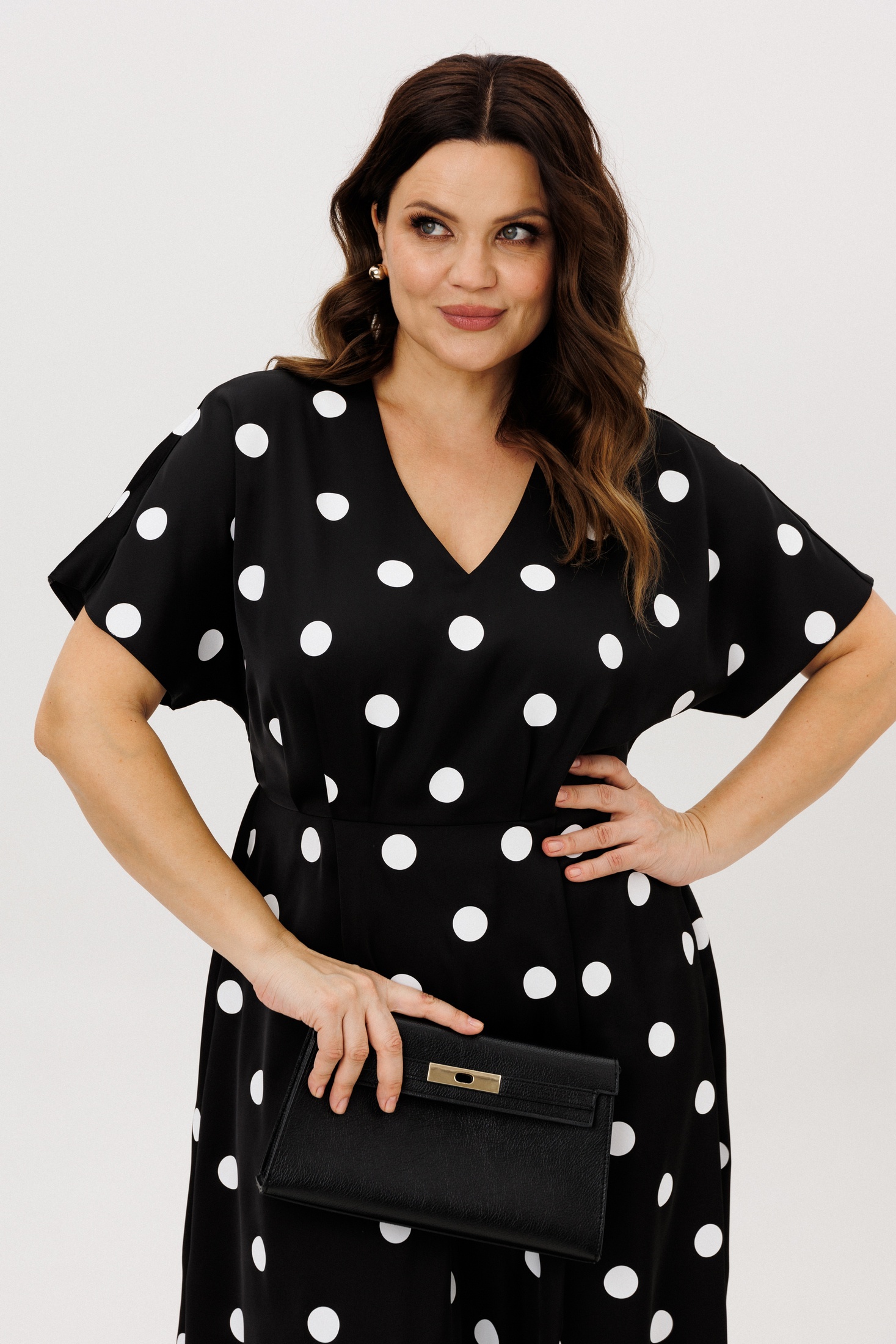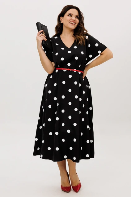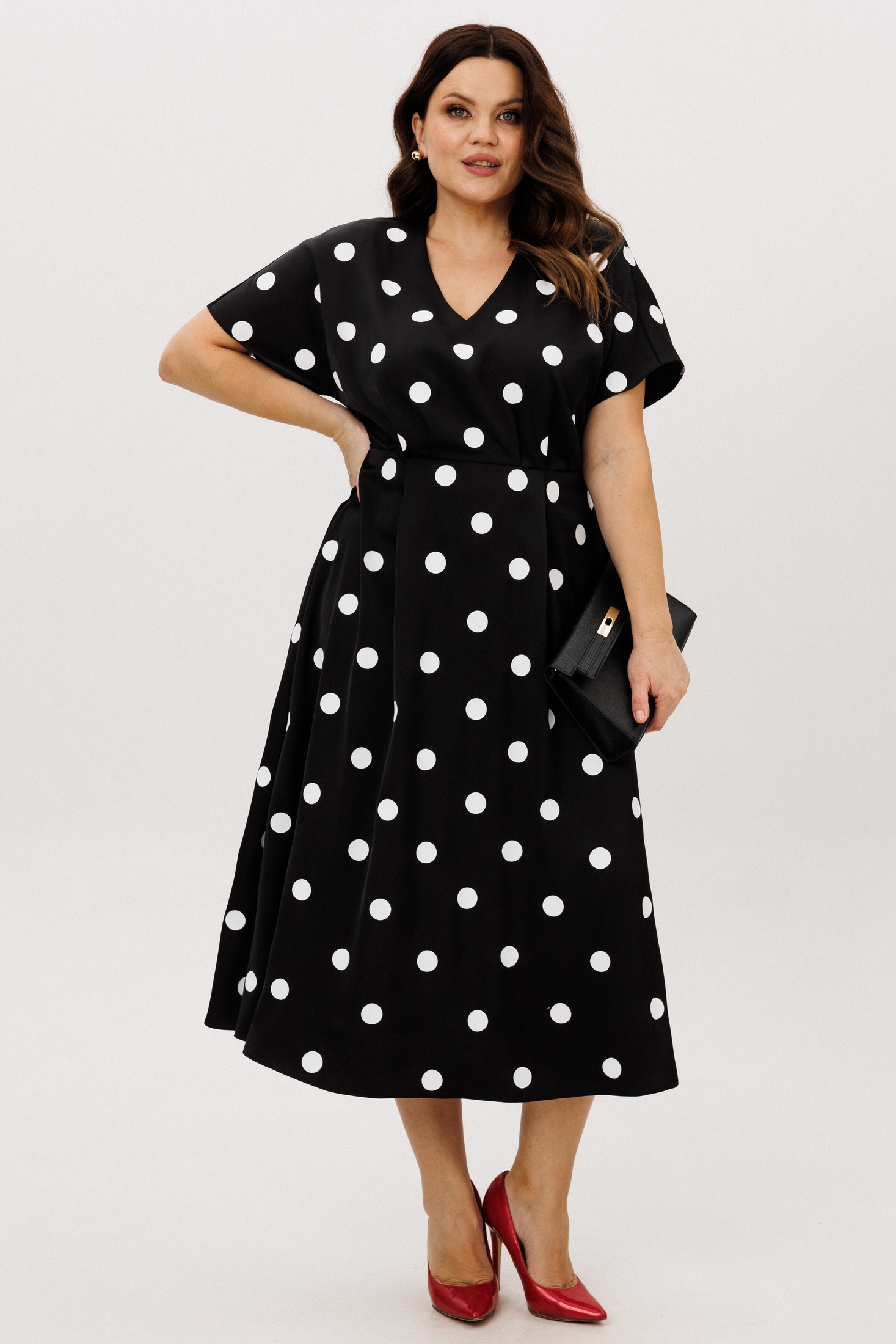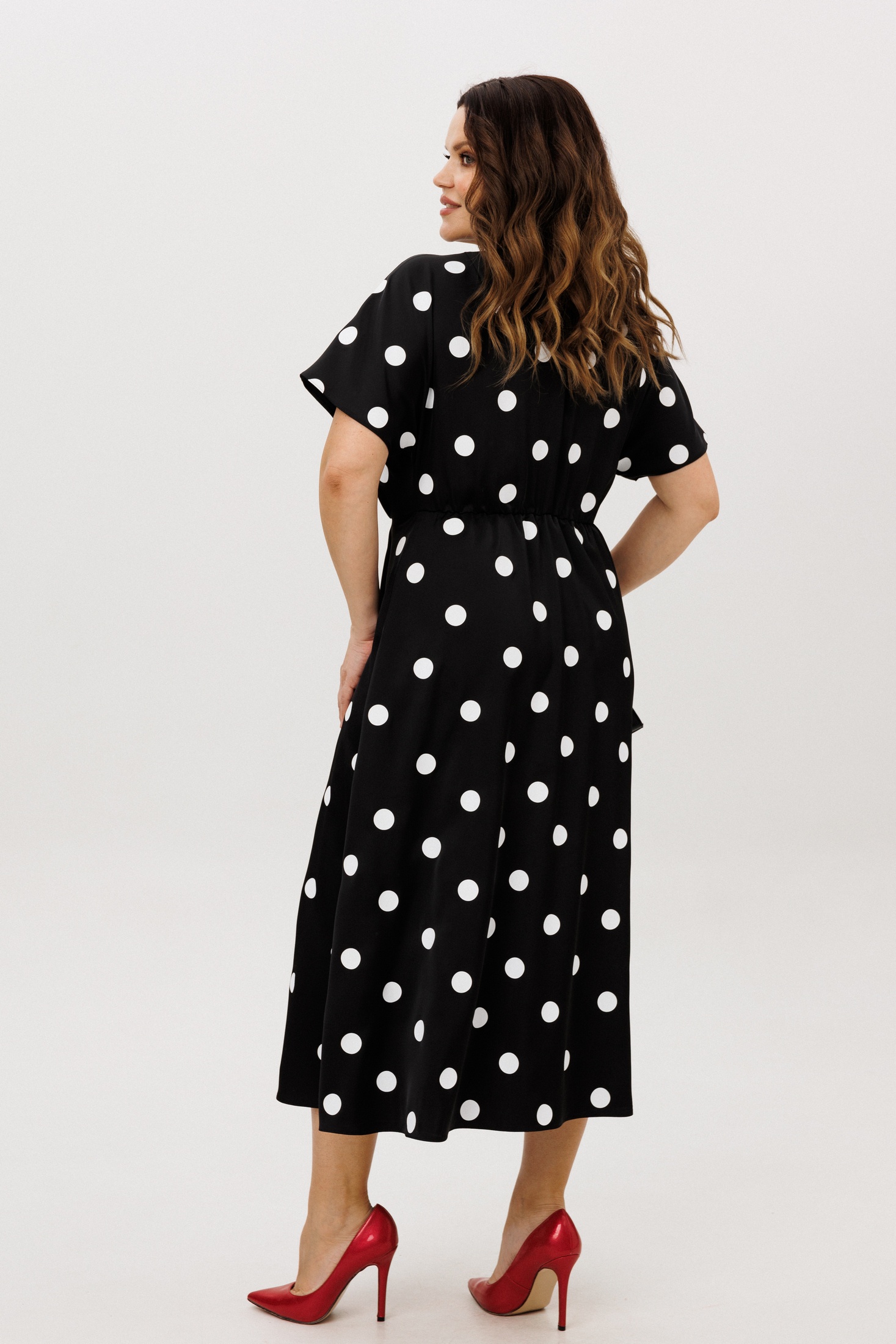 Платье 721-4 черно-белый ANIDEN идеально подчеркивает вашу индивидуальность благодаря своему уникальному дизайну. Коллекция бренда ANIDEN предлагает это стильное платье из матового атласа, известного своей легкостью в уходе и антистатическими свойствами. Фасон прилегающий по лифу и отрезной по линии талии с юбкой А-силуэта обеспечивает комфорт и изящество в каждом движении. V-образный вырез и цельнокроеный рукав длиной выше локтя наделяют образ женственностью и современностью. Подходит для всесезонного использования, сочетая универсальность и элегантность. Черно-белый цвет в горошек добавляет игривости и делает его идеальным выбором на каждый день или любой праздник.