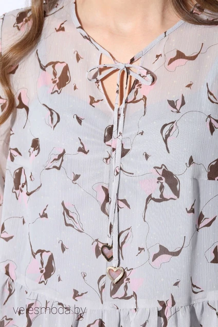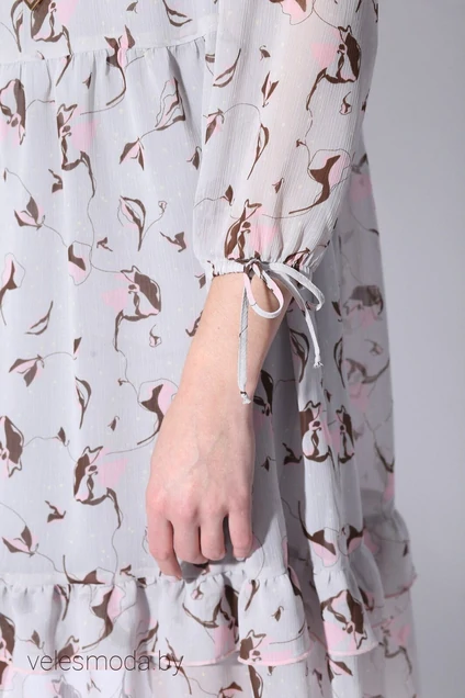 Элегантное женское платье из лёгкого шифонового материала, оформленное изящным принтом в виде мягких цветочных узоров на светлом фоне. Модель отличается женственным свободным силуэтом с игривым воланом по низу и аккуратным подрезом на уровне линии талии, добавляющим лёгкости струящейся форме. Дизайн дополнен втачными рукавами 3/4 длины, мягко собранными на эластичные манжеты, которые добавляют романтичности образу. V-образный вырез горловины с элегантными завязками, завершёнными декоративными наконечниками, подчёркивает изысканность модели. Под платьем находится комфортное нижнее платье на тонких бретелях из приятного к телу трикотажа, создающее удобство и уверенность при носке. Размеры: - Длина платья в размере 44 - 99 см, длина рукава - 52,5 см. - Длина платья в размере 50 - 102 см, длина рукава - 52,5 см. Это платье идеально подойдёт для создания лёгкого, непринуждённо элегантного образа, бережно сочетая в себе стиль и комфорт.