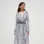 Платье М1046P Art Ribbon — элегантный образ с дизайнерским принтом, который привлечёт внимание и создаст незабываемое впечатление. Коллекция бренда Art Ribbon предлагает уникальное платье из полиэстера с шифоновой текстурой, обеспечивающей лёгкость и комфорт. Длина по щиколотку акцентирует на женственном стиле и подходит для тёплых сезонов. V-образный вырез и длинные рукава на манжетах добавляют изысканности, а отрезная талия на эластичной тесьме подчёркивает силуэт. Платье имеет подкладку, что делает его идеальным для вечерних мероприятий или светских выходов. Черно-белый горошек создаёт эффектный контраст, позволяя выделиться из толпы. Это приталенное платье станет отличным выбором для вечеринки или праздничного события.