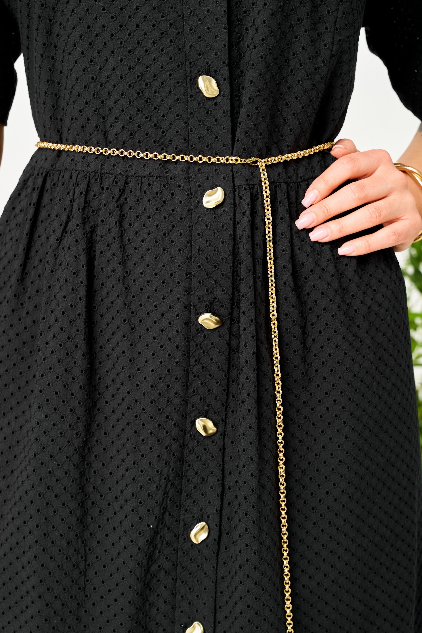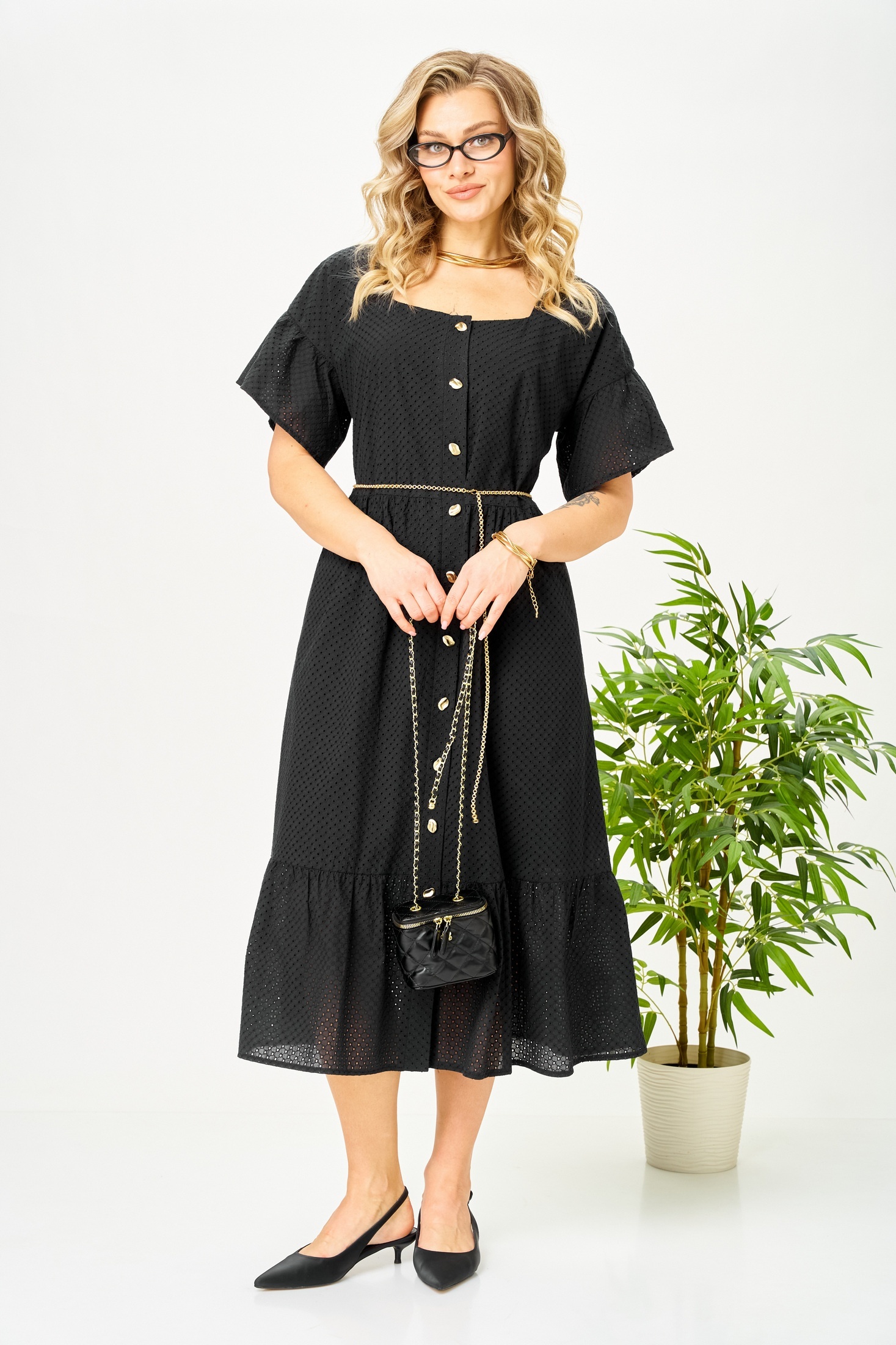 Платье 189 черный AVA fashion – это стильное женское платье из новой коллекции бренда AVA fashion. Выполнено из 100% хлопка, что обеспечивает комфорт и удобство в носке. Элегантный силуэт подчеркивается отрезной вставкой по талии, создавая утонченный образ. Отличительной чертой является квадратный вырез горловины и ремень-цепочка, которые добавляют современности и стиля. Боковые карманы подчеркивают функциональность, а спущенные рукава придают легкость. Миди длина и черный цвет делают его универсальным для любого сезона и повода – будь то офисный день или вечерний выход. Длина по спинке от горловины составляет 121 см, что позволяет легко комбинировать его с различными аксессуарами.