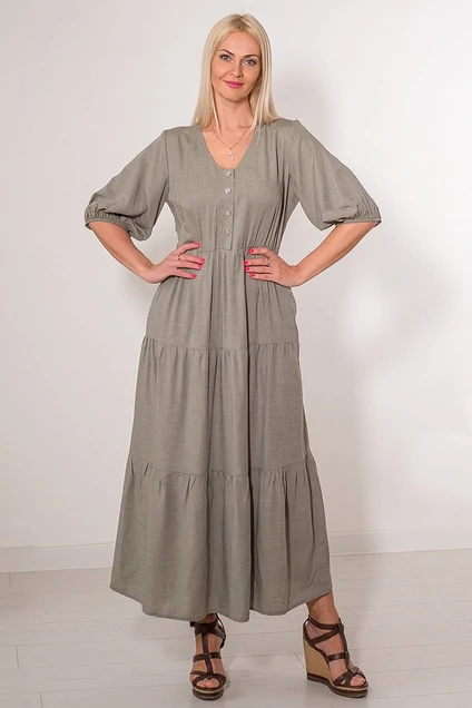 Платье удлиненное на застежку-пуговицы из мягкой и приятной к телу ткани. Юбка выполнена на сборке с функциональными карманами. Прекрасно впишется в базовый гардероб. По стилю к платью подойдет как обувь без каблука, так и на каблуке