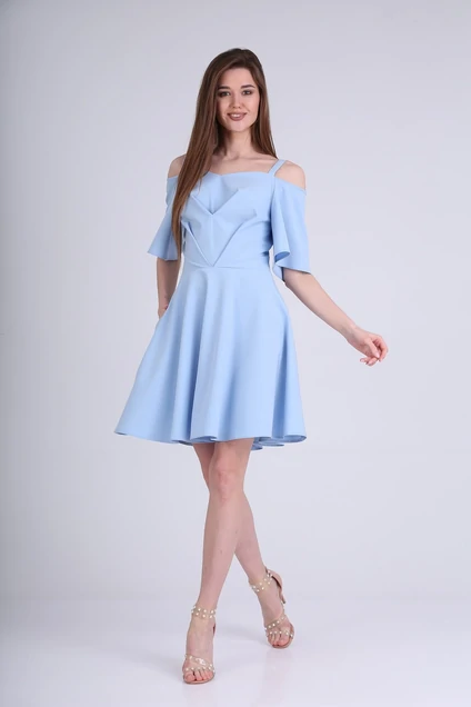 Сказочное платье очаровывает своим игривым дизайном. Модель с заложенными оригинальными складками по лифу и расклешенной юбкой прекрасно подчеркнет женственность вашей фигуры. Рукав спадающий на втачной основе, по плечу дополнен поддерживающими бретелями. В среднем шве спинки предусмотрена застежка на потайную молнию. В боковых швах расположены функциональные карманы.