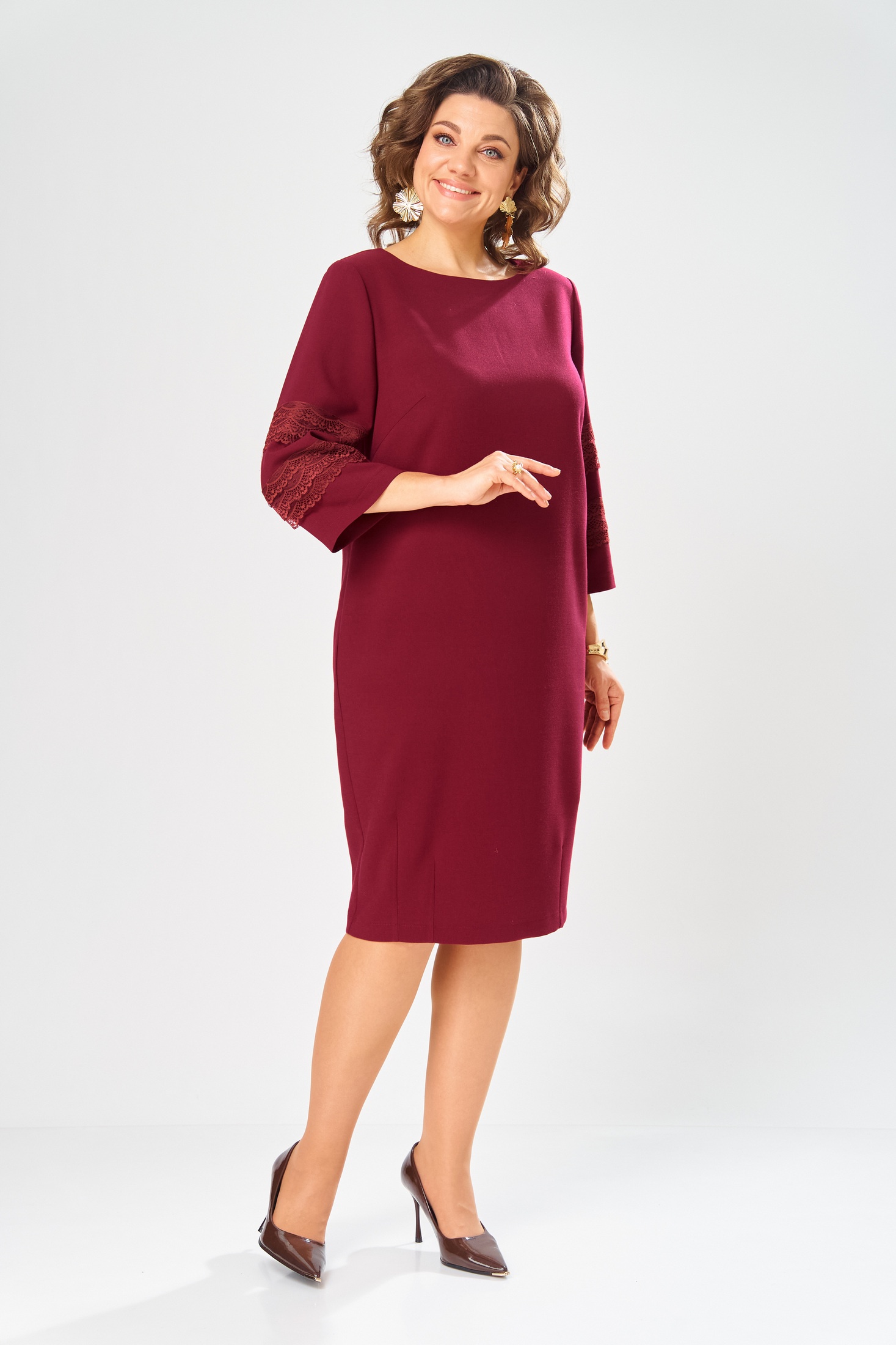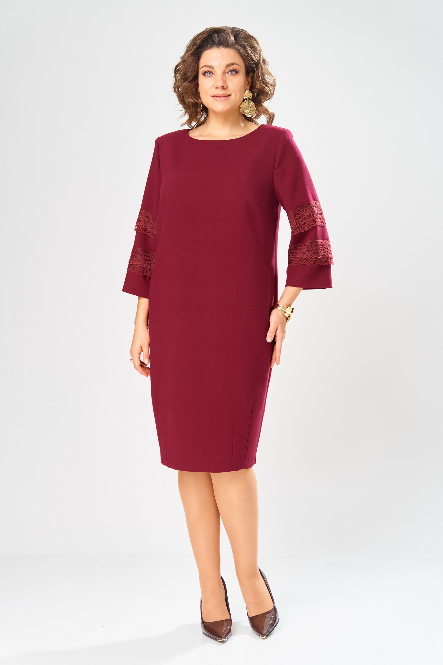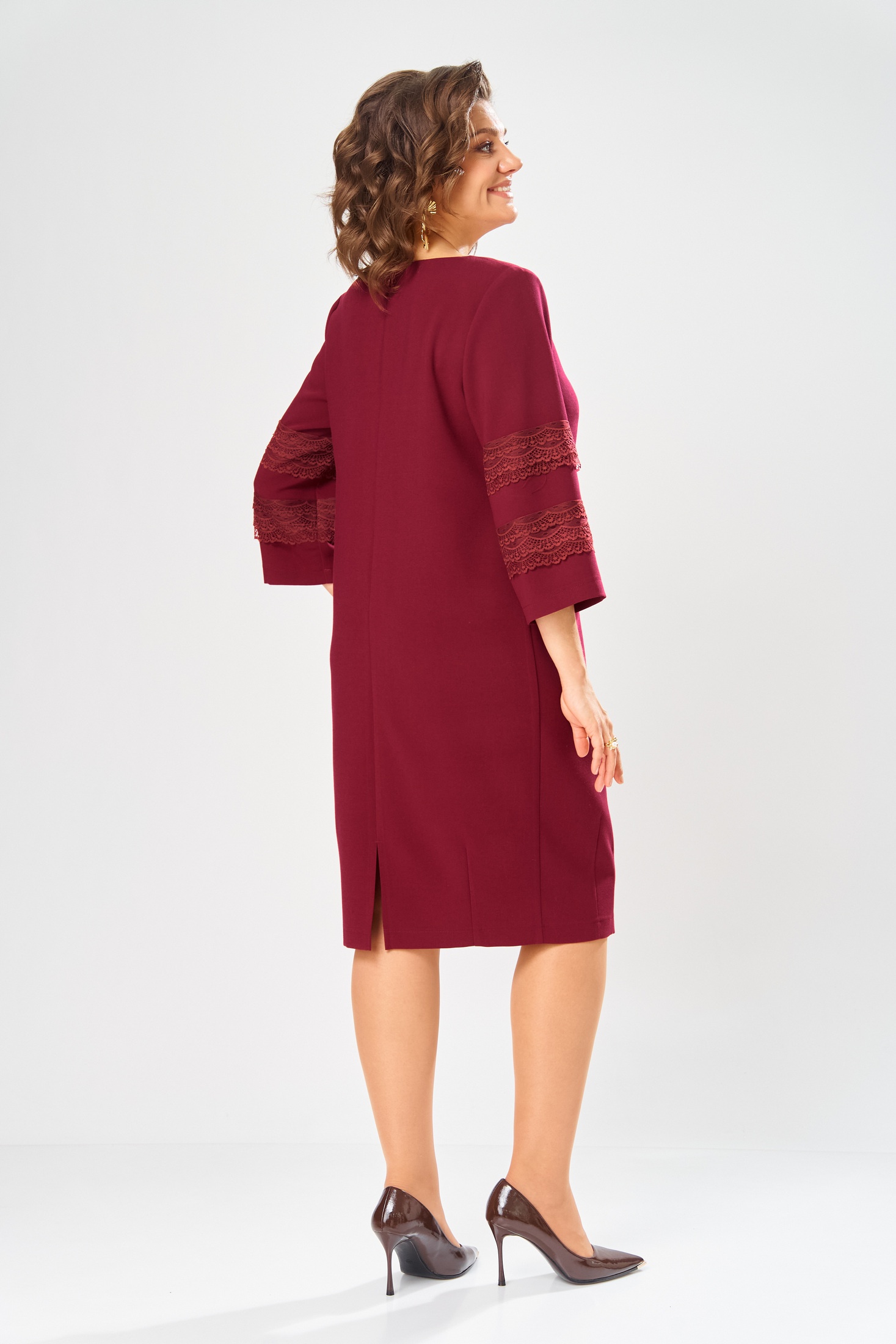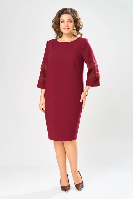 Праздничное платье от бренда «AXXA» О-образного силуэта, выполнено из качественной плательной ткани, что придает изделию определенную элегантность. В области низа спинки и полочки изделия расположены вытачки, благодаря которым силуэт платья принимает слегка зауженную форму. Спинка со средним швом. Сзади платье на потайной молнии. Горловина округлая типа лодочка. Рукав втачной состоит из трех частей. Средняя часть рукава декорирована ажурным кружевом в два ряда, что придает нежность и изящество данному изделию.