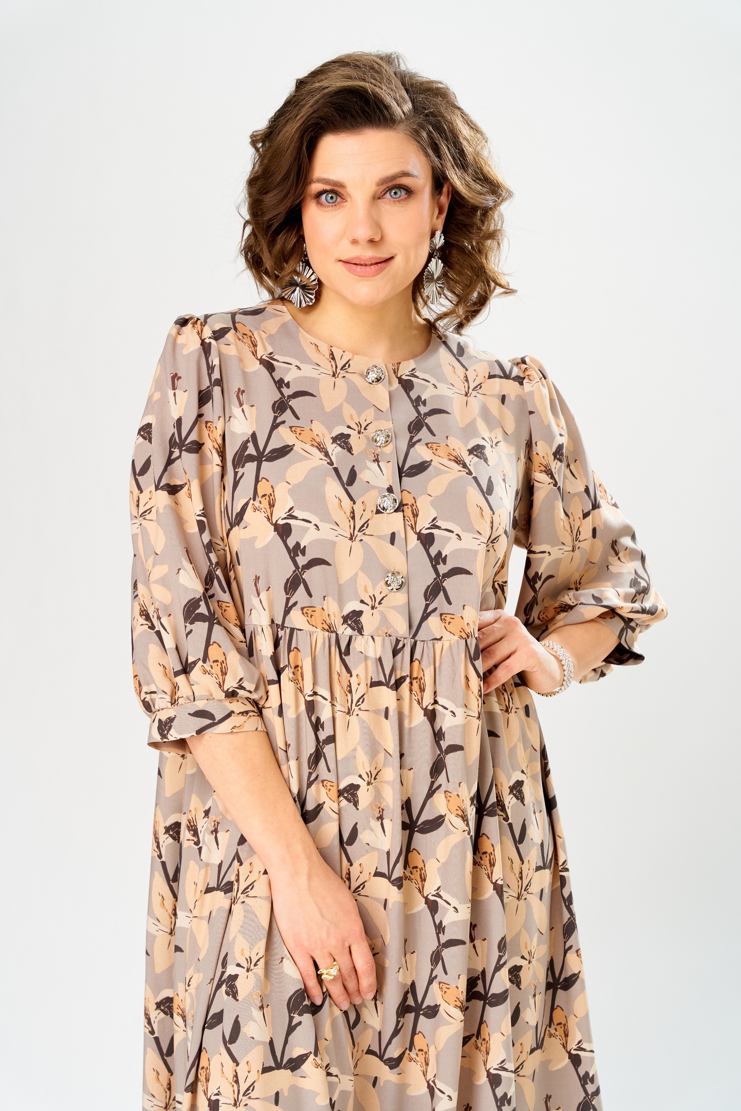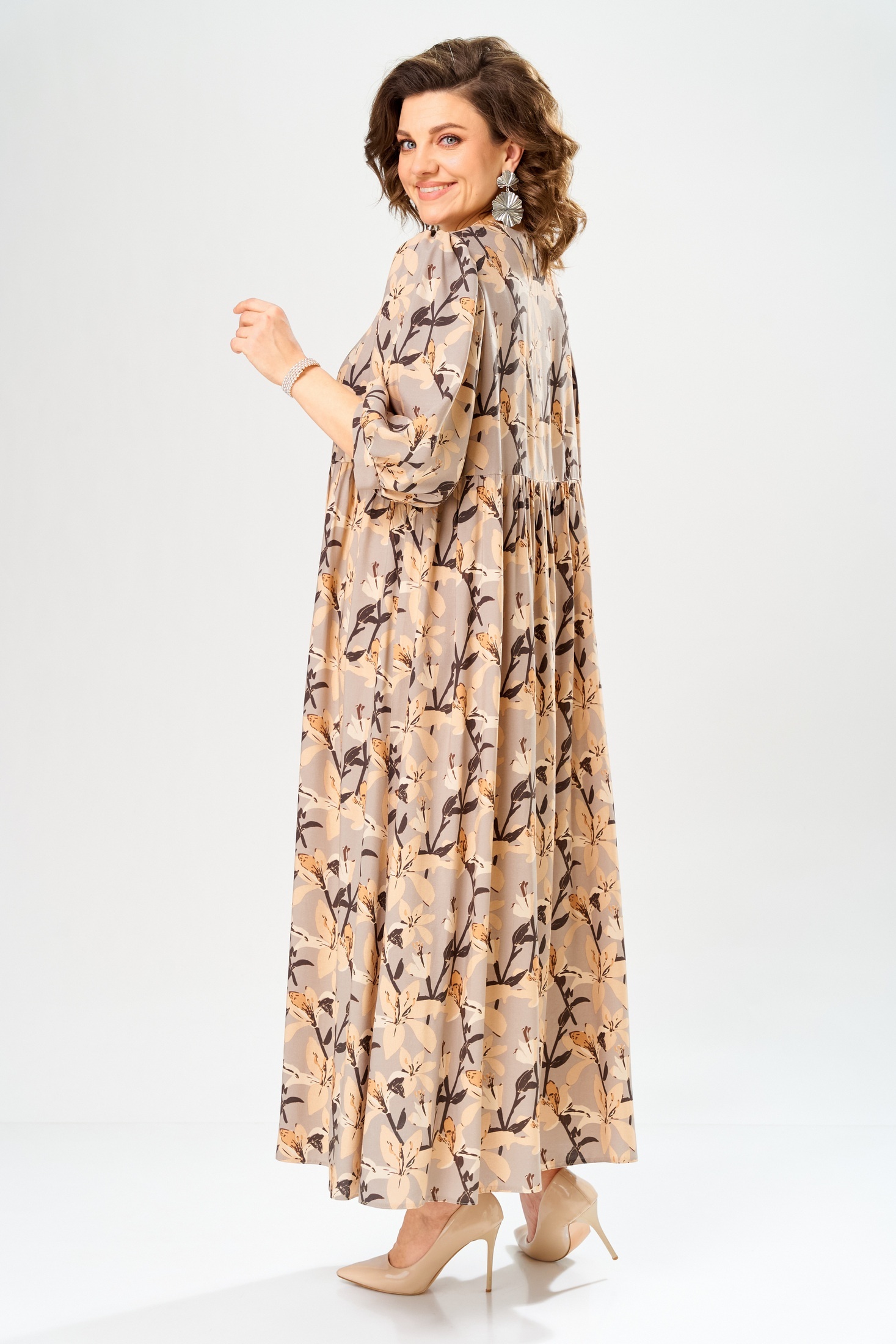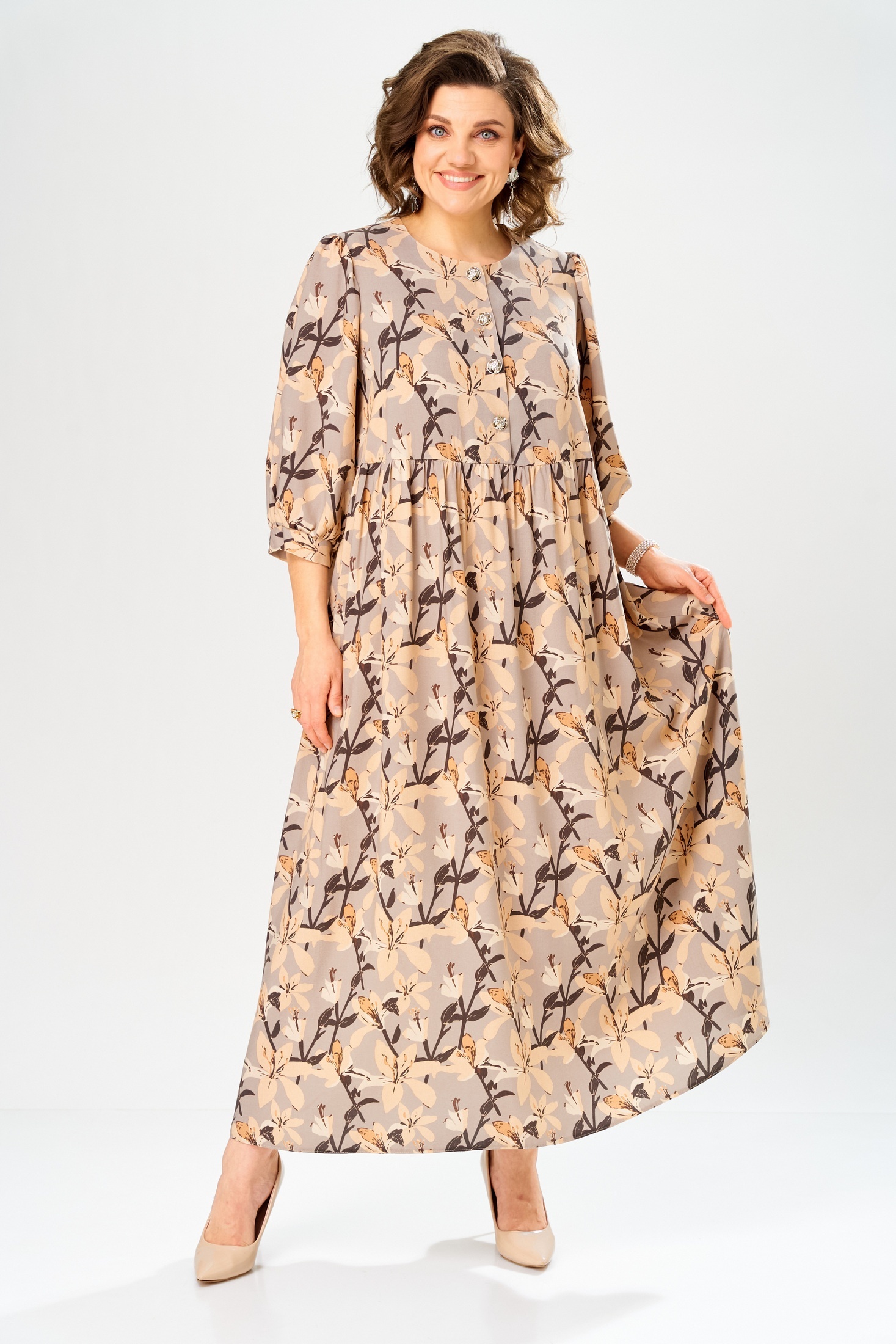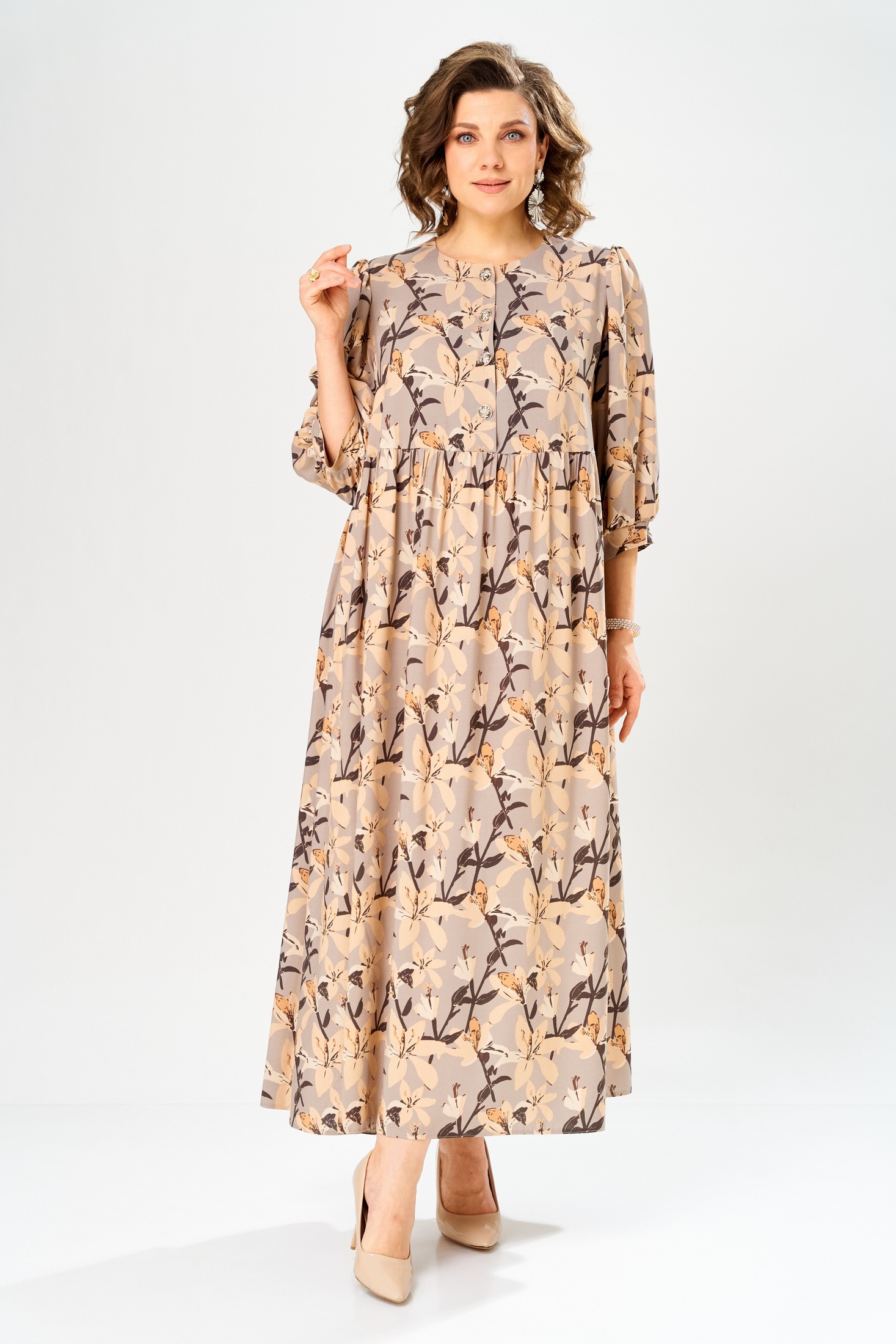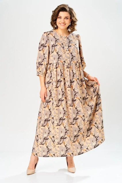 Платье 55235 AXXA – это макси-длина платье свободного силуэта из коллекции бренда «АХХА». Изготовлено из легкой и приятной на ощупь 100% вискозы, что делает его идеальным выбором для весны и лета. Платье выполнено с завышенной линией талии и застежкой на петли-пуговицы спереди. Рукава имеют втачной одношовный крой с манжетой на запястье. Цветовая гамма с цветочным узором подчеркивает его изящество и стиль. Длина изделия составляет 138 см. Платье прекрасно подходит как для повседневного использования, так и для особых мероприятий, позволяя сочетать его с обувью и аксессуарами на любой вкус.