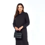 Женское платье полуприлегающего силуэта выполнено из однотонной плательно-костюмной ткани. Платье с центральной застёжкой на 3 петли и пуговицы . Перед со средним швом заканчивающимся шлицей, рельефами из пройм до боковых швов,в швах выполнены карманы,и нагрудными вытачками.Спинка цельная.По переду и спинке в области талии выполнены шлевки для ремня. Рукава втачные , двухшовные, длиной 3/ 4. Внизу верхнего шва рукава декоративные пуговицы и разрез. Вырез горловины фигурный со стойкой.