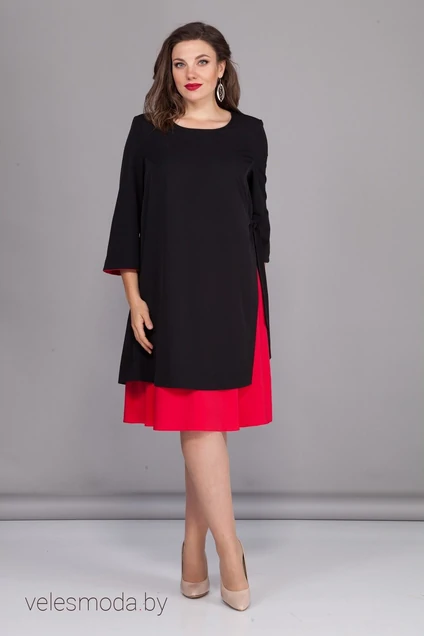 Платье женское свободного кроя, выполнено из высококачественного материала. Модель представлена в черном цвете с ярким красным вставкой на низу, создающей стильное цветовое контрастирование. Дизайн дополнен элегантными трехчетвертными рукавами и круглым вырезом горловины. На рукавах имеются декоративные завязки, добавляющие изящества образу. Это платье идеально подойдет как для офиса, так и для вечернего выхода.
