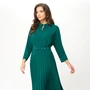 Элегантное платье миди в пастельно-зелёном оттенке представляет собой идеальный выбор для создания изысканного образа. Модель оснащена цельнокроеными рукавами с элегантными манжетами и отложным воротником, который дополнен застёжкой на навесную петлю и изысканной ювелирной пуговицей. Щелевидный вырез с собранной горловиной добавляет изящество. Плиссированная юбка до колена мягко обрамляет силуэт, а скрытая резинка на талии в сочетании с поясом на пряжке в тон подчёркивает фигуру, делая акцент на изяществе струящейся ткани. Это платье, выполненное из немнущейся и приятной к телу ткани, станет универсальным решением как для деловых, так и для торжественных мероприятий.