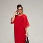 С учетом плюсовых прибавок подходит на рост 170 см. Длина платья (по среднему шву спинки) –100см. Длина рукава (рукав + плечо) – 42см.