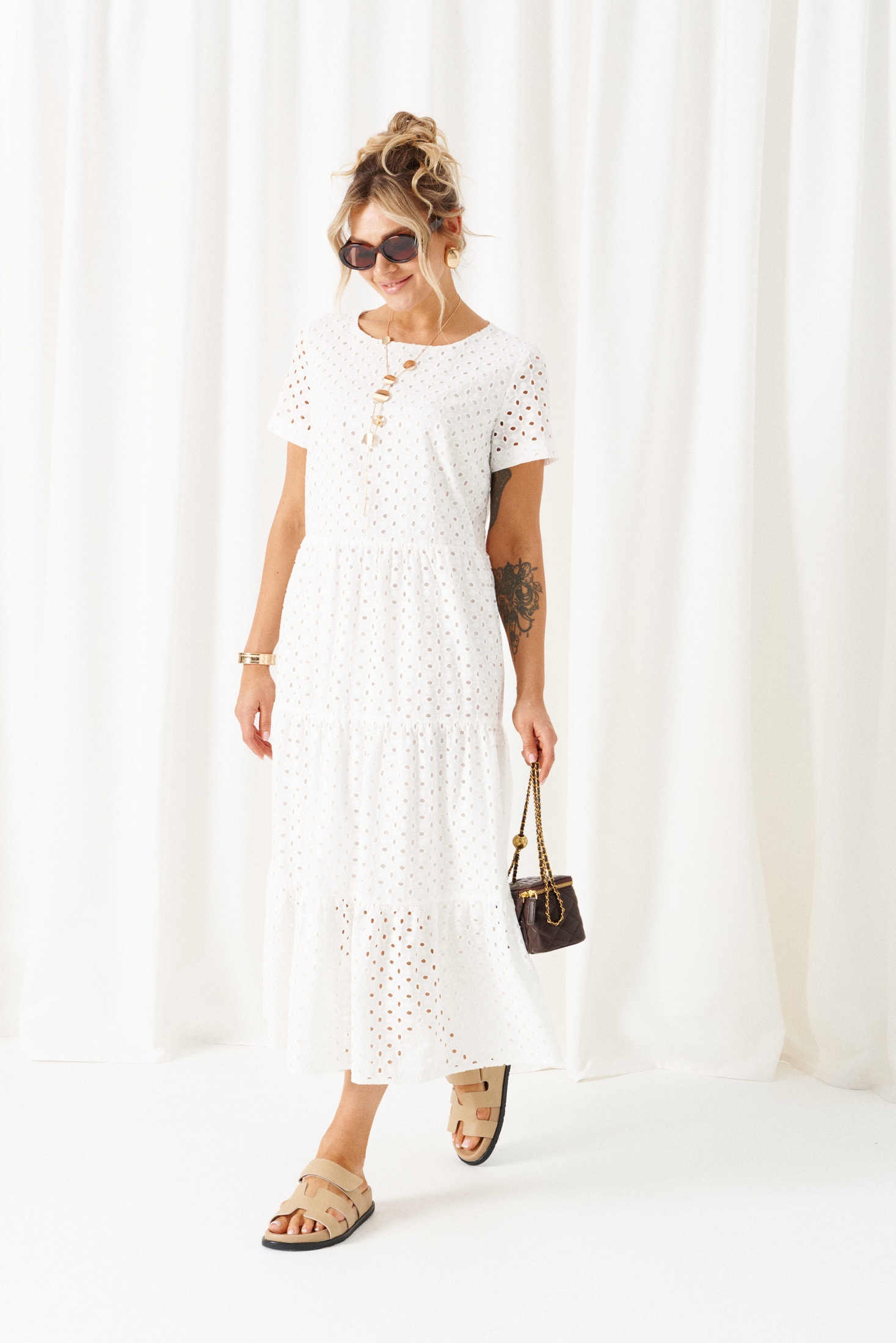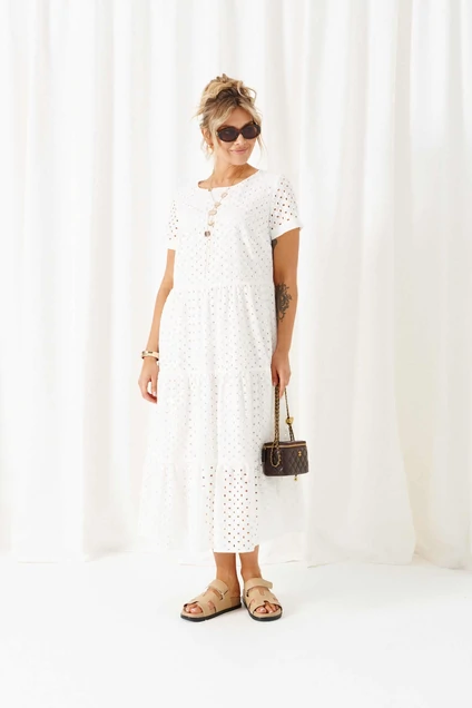 Платье 6462 белый от Beautiful&Free — это идеальное дополнение летнего гардероба. Коллекция бренда сочетает легкость и комфорт благодаря 100% хлопку, который позволяет коже дышать даже в самый жаркий день. Фасон платья длинной в пол и свободного силуэта с отрезной линией талии обеспечивает комфорт и свободу движений. Особенности дизайна включают короткие втачные рукава и округлую горловину. Верхняя часть платья цельнокроеная с нагрудными вытачками, а объемный низ состоит из трех воланов. Идеально для городских будней и отдыха на пляже. Платье имеет длину по спинке около 128 см, длина рукава составляет около 24 см.