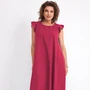 Передняя часть платья на притачной планке, имеющей застёжку на петли-пуговицы. Платье на кокетке по линии талии, что визуально моделирует фигуру и удлиняет ножки. Рукав втачной, укороченный собран на резинку по линии низа. Воздушность и многослойность наряду придают притачные воланы. Такая модель - отличный выбор для мероприятий различного формата, как повседневного, так и праздничного.