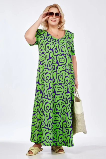Платье женское длинное, А - образного силуэта, рукав втачной с отложным манжетом, вырез V-образный по полочке и спинке, в боковых швах карманы.