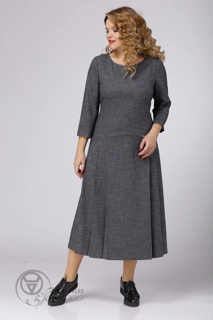 Длина платья по спинке 120 см Длина рукава 48 см Стильное ,молодежное платье из ткани с люрексовой нитью.Прилегающего силуэта, отрезное по линии бедер,лиф на подкладке,застежка молния по спинке,горловина круглая.На юбке по переду и спинке заложены складки.Длина платья «миди».Рукава втачные ,длина 3/4