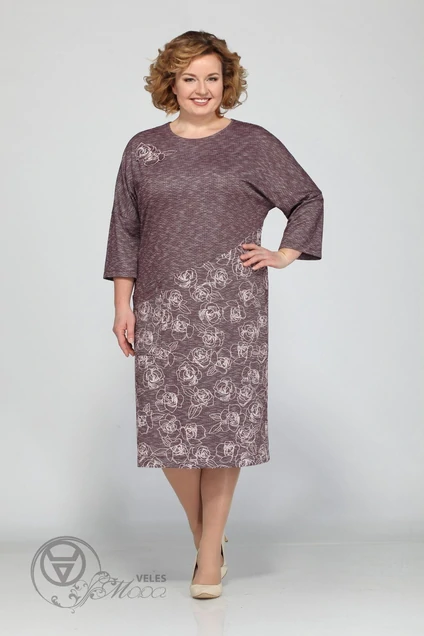 Длина платья по спинке 108 см Длина рукава - 57 см Элегантное женское платье полуприлегающего силуэта, с цельновыкроенными рукавами. Платье выполнено из тканей компаньонов, с правой стороны на полочке ниже линии подреза накладной карман, горловина круглая, длина рукава ¾. Платье декорировано аппликацией с пришивной стразой.