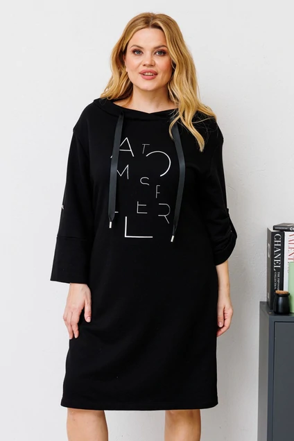 Представляем черное трикотажное платье, идеально подчеркивающее комфорт и стиль. Это платье имеет удлиненный рукав с возможностью подворачивания на пату, что добавляет практичности и игривости образу. Стильный и функциональный дизайн дополнен наличием удобных боковых карманов. Фигурооблегающий крой платья гарантирует идеальную посадку, скрывая все недостатки, и позволяет сохранить свободу движений. В качестве визуального акцента используется уникальная серебряная пленка, нанесенная на переднюю часть платья, которая гарантирует долговечность и сохранение внешнего вида после многочисленных стирок. Это платье - отличный выбор для современной женщины, ценящей качество и комфорт.