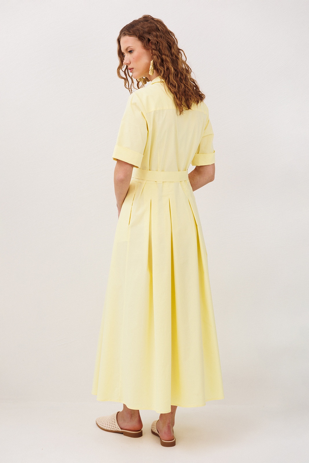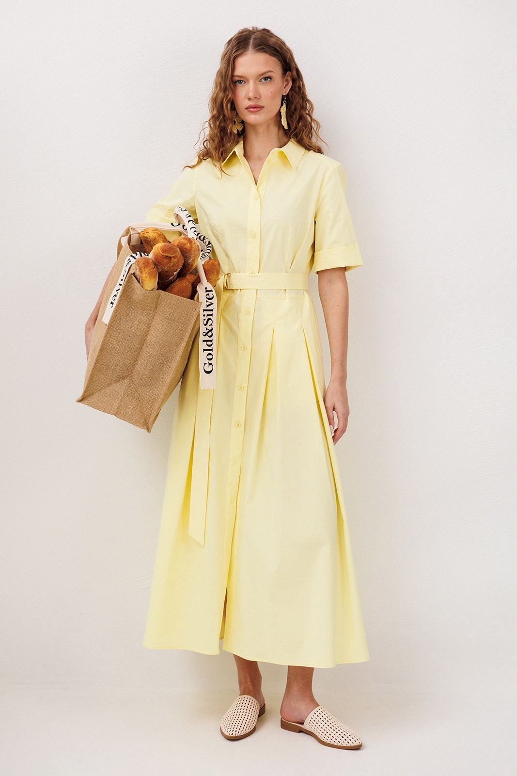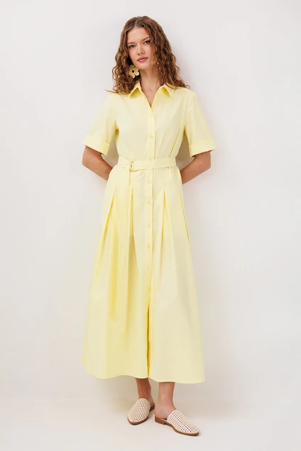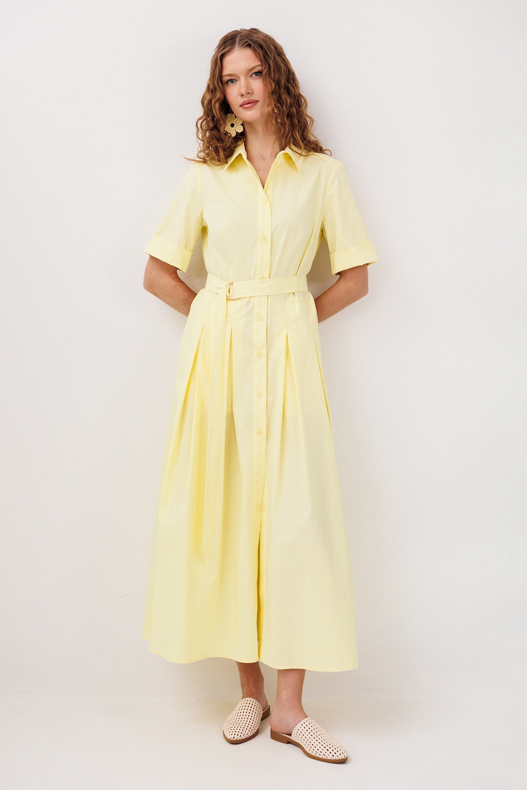 Платье 3341 сливочный BUTER — идеальный выбор для легкого летнего образа. Коллекция бренда BUTER предлагает изящное платье миди длины, выполненное из хлопка с добавлением полиэстера и эластана, что делает его легким и приятным на ощупь. Съемный пояс из основной ткани акцентирует внимание на талии, а встречные складки юбки добавляют движение и объем. Классический рубашечный воротник на стойке и центральная застежка на пуговицы подчеркивают офисный и одновременно повседневный стиль. Полочка украшена карманами в боковых швах, добавляя практичности. Легкий сливочный оттенок создает утонченный и свежий образ для любого дня.