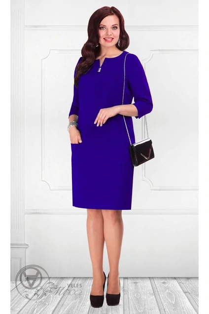 Платье полуприлегающего силуэта, приталенное по спинке, с карманами спереди по линии подреза ниже бедер. Втачные рукава - с разрезами по локтевому шву. Швы платья оформлены отстрочкой. Круглая горловина имеет V-образный разрез, украшенный металлическим элементом.