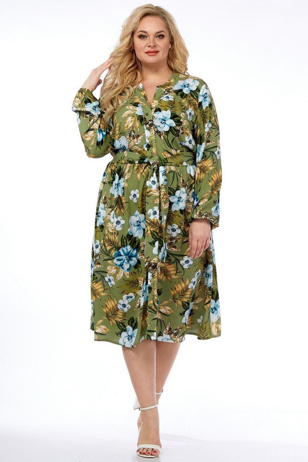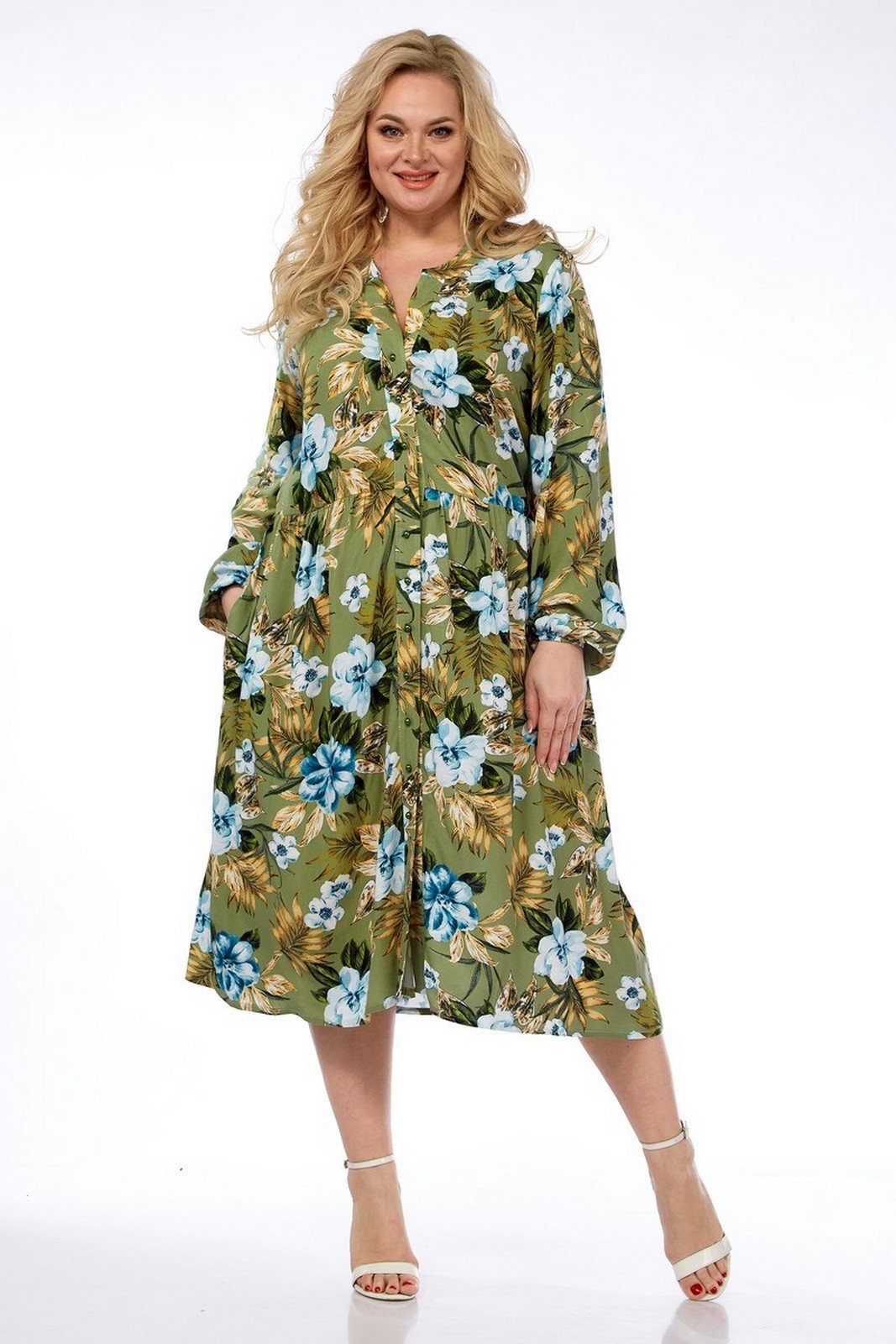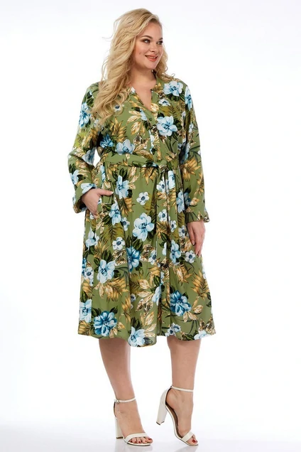 Платье выполнено из мягкой штапельной ткани устойчивой окраски.