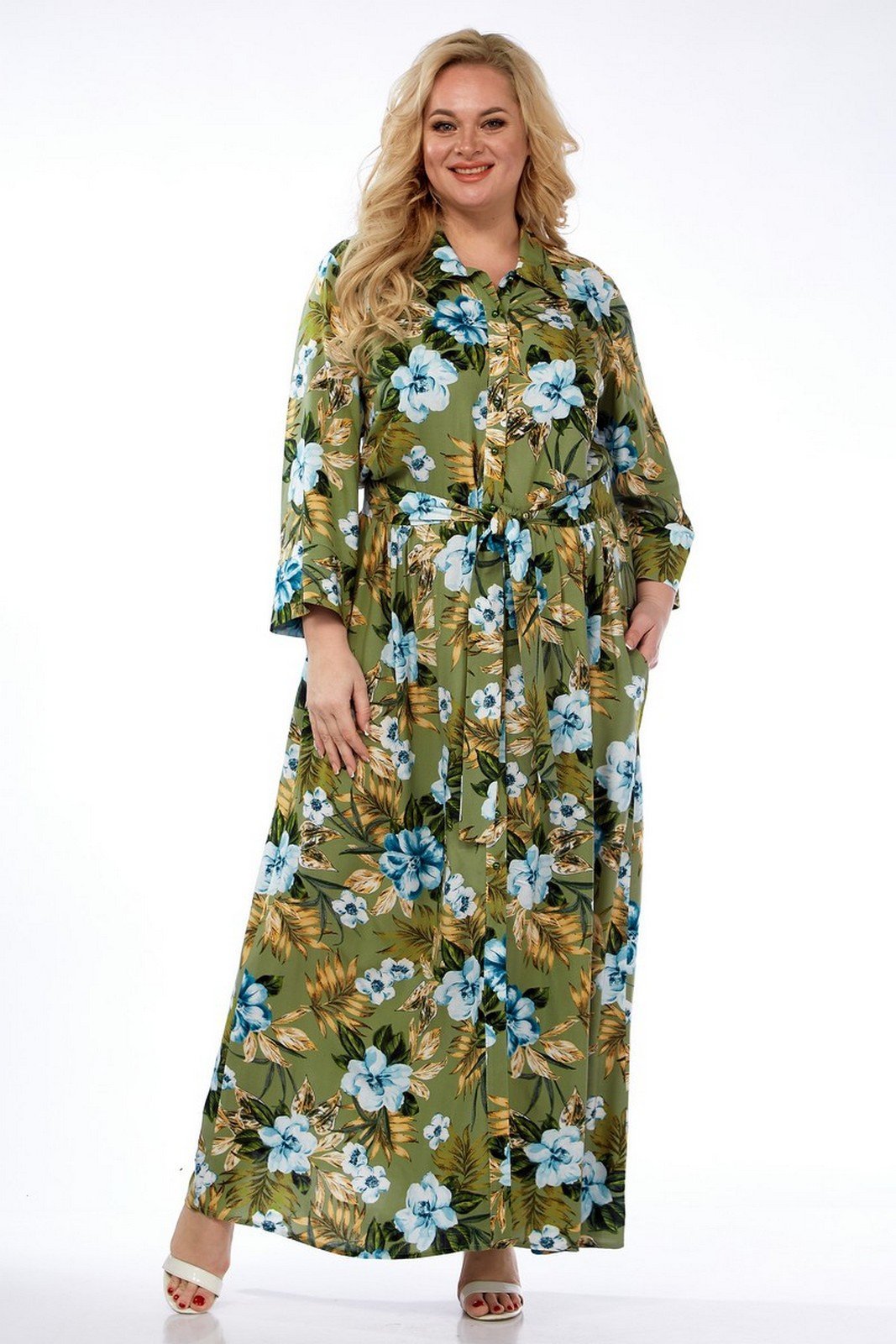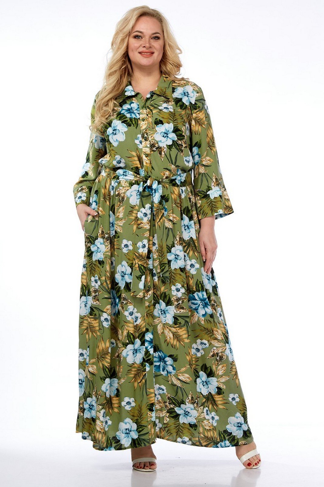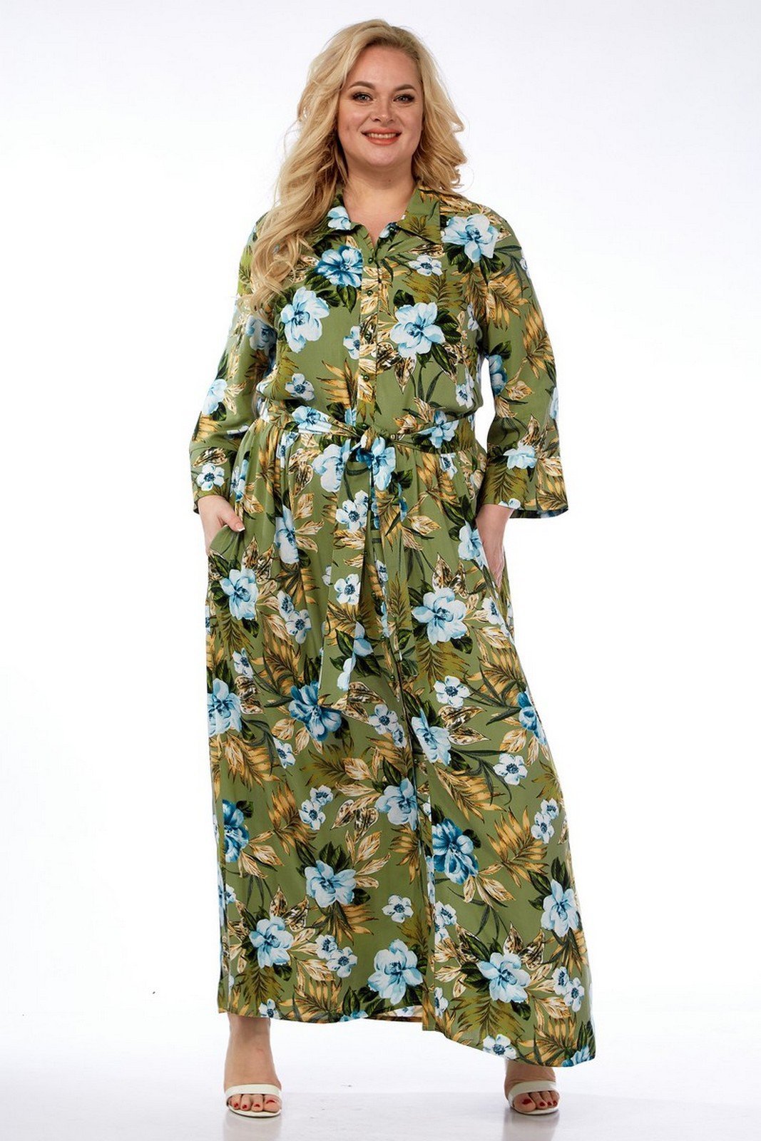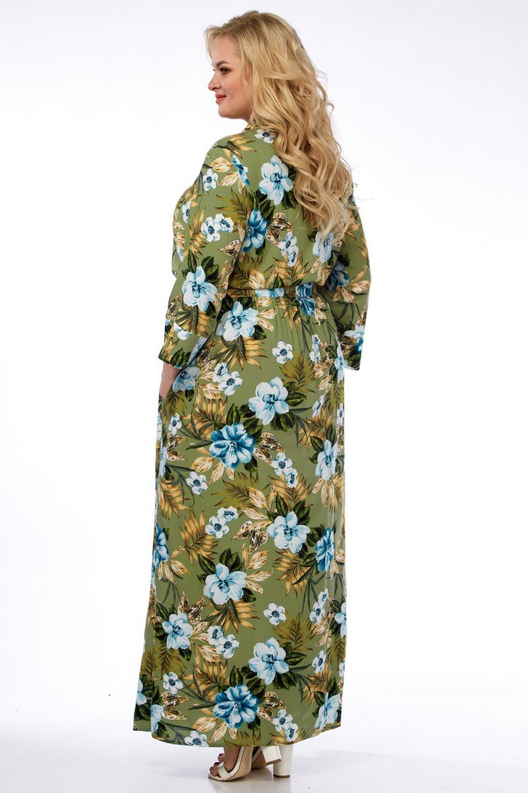 Платье выполнено из мягкой штапельной ткани устойчивой окраски. Рекомендуется вертикальная сушка.