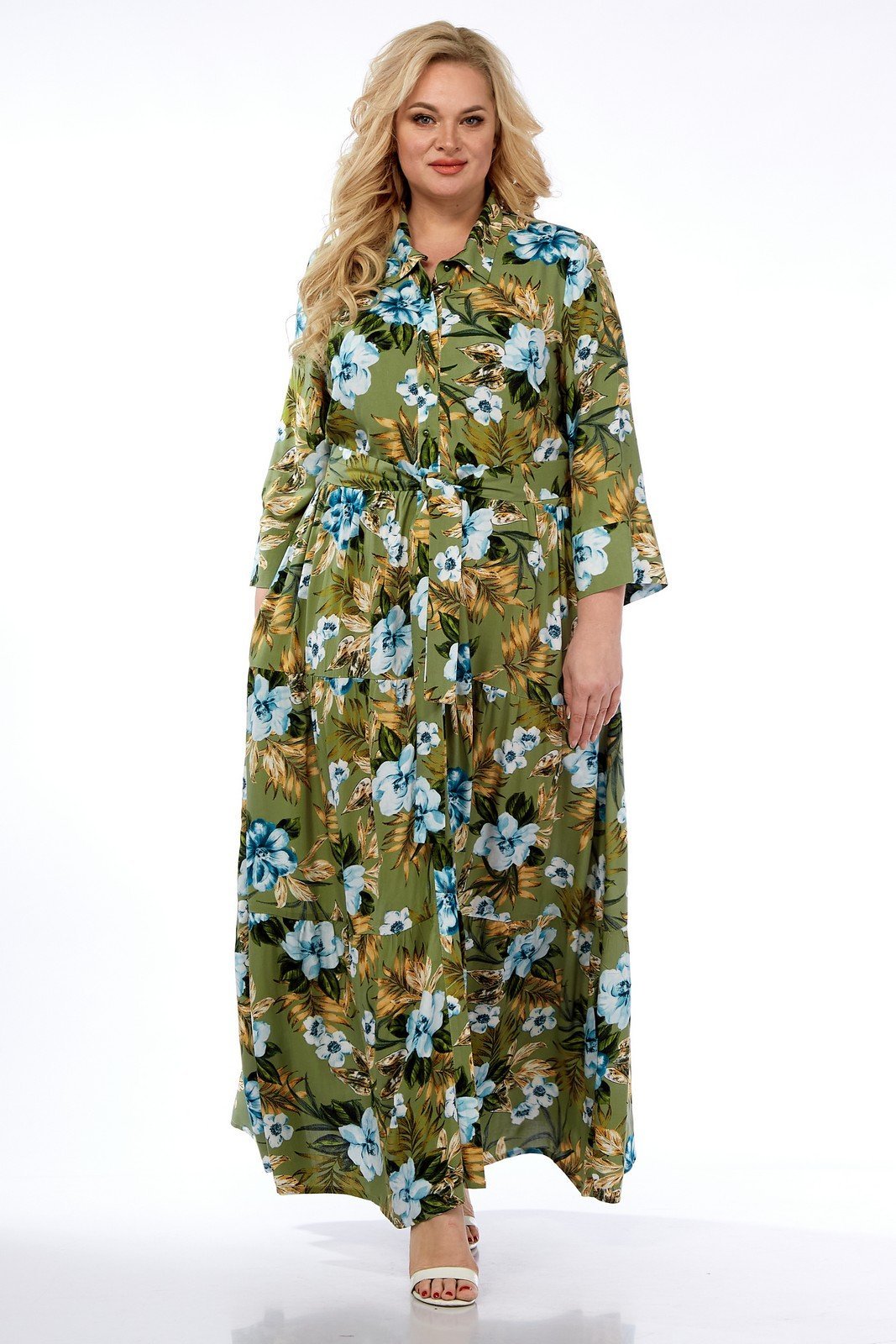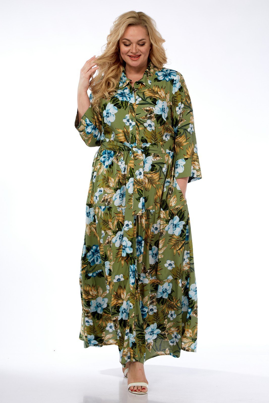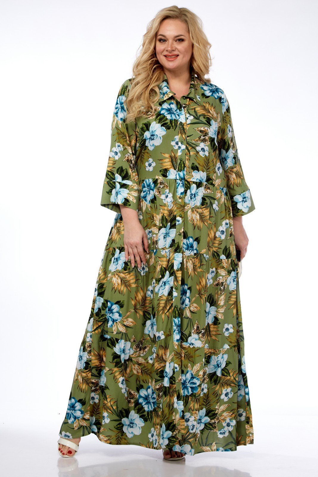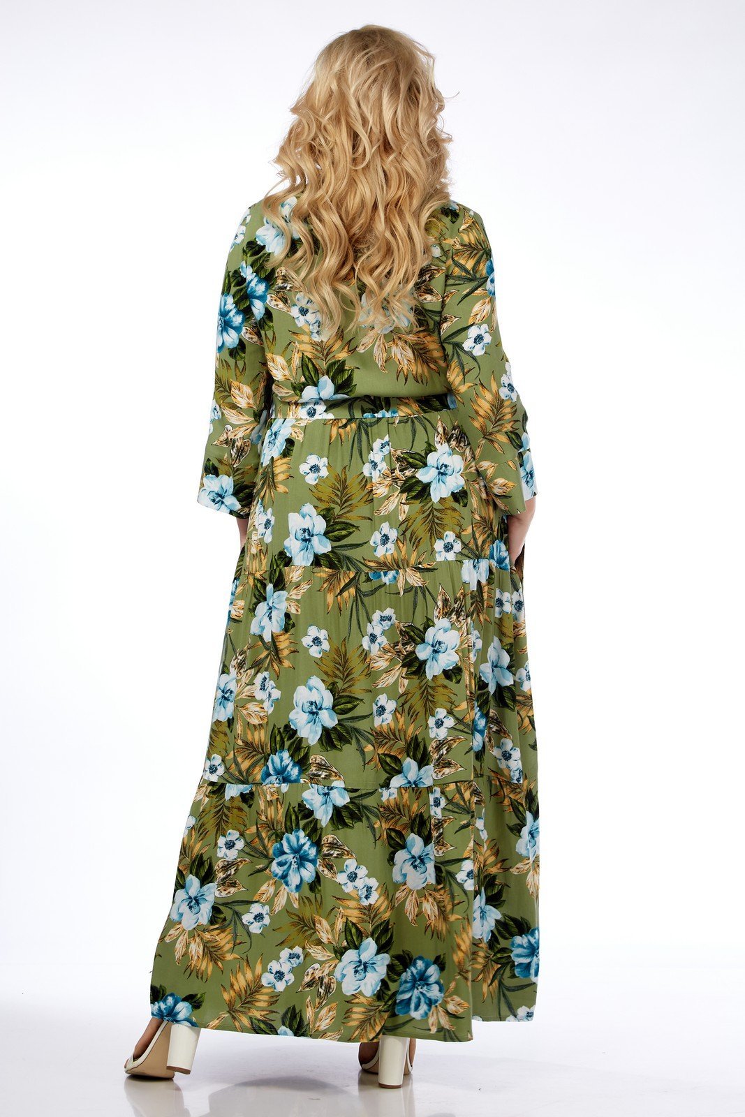 Платье выполнено из мягкой штапельной ткани устойчивой окраски.