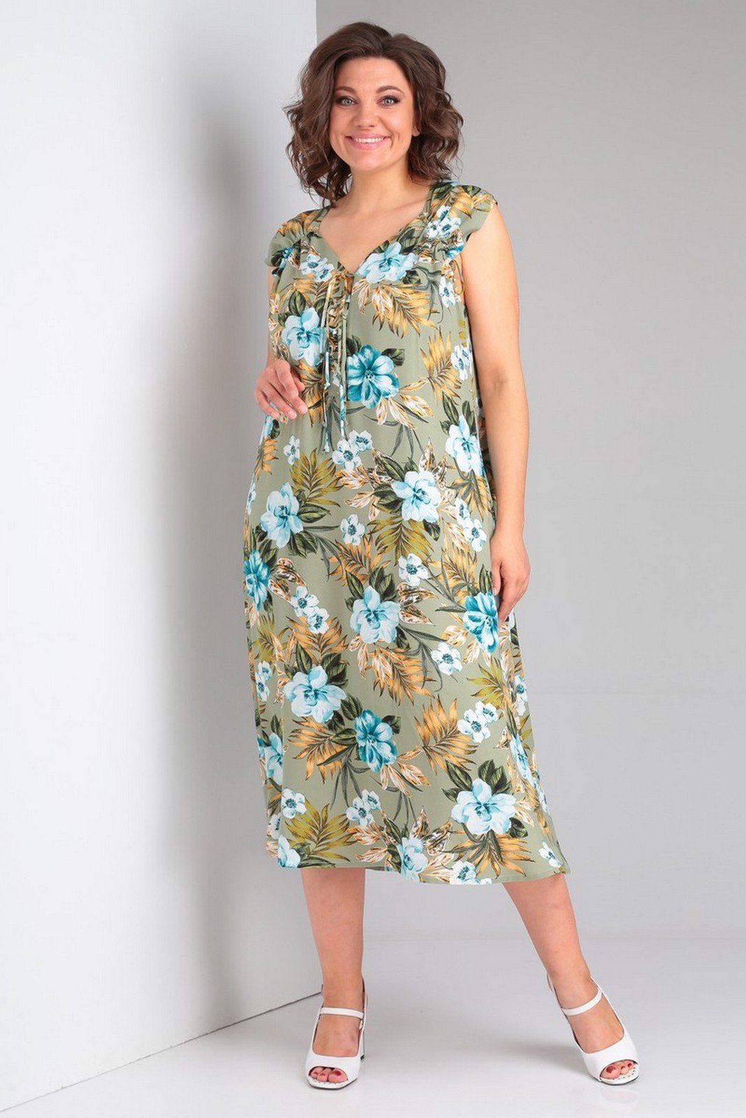 Платье выполнено из мягкой штапельной ткани устойчивой окраски. Рекомендуется вертикальная сушка.