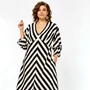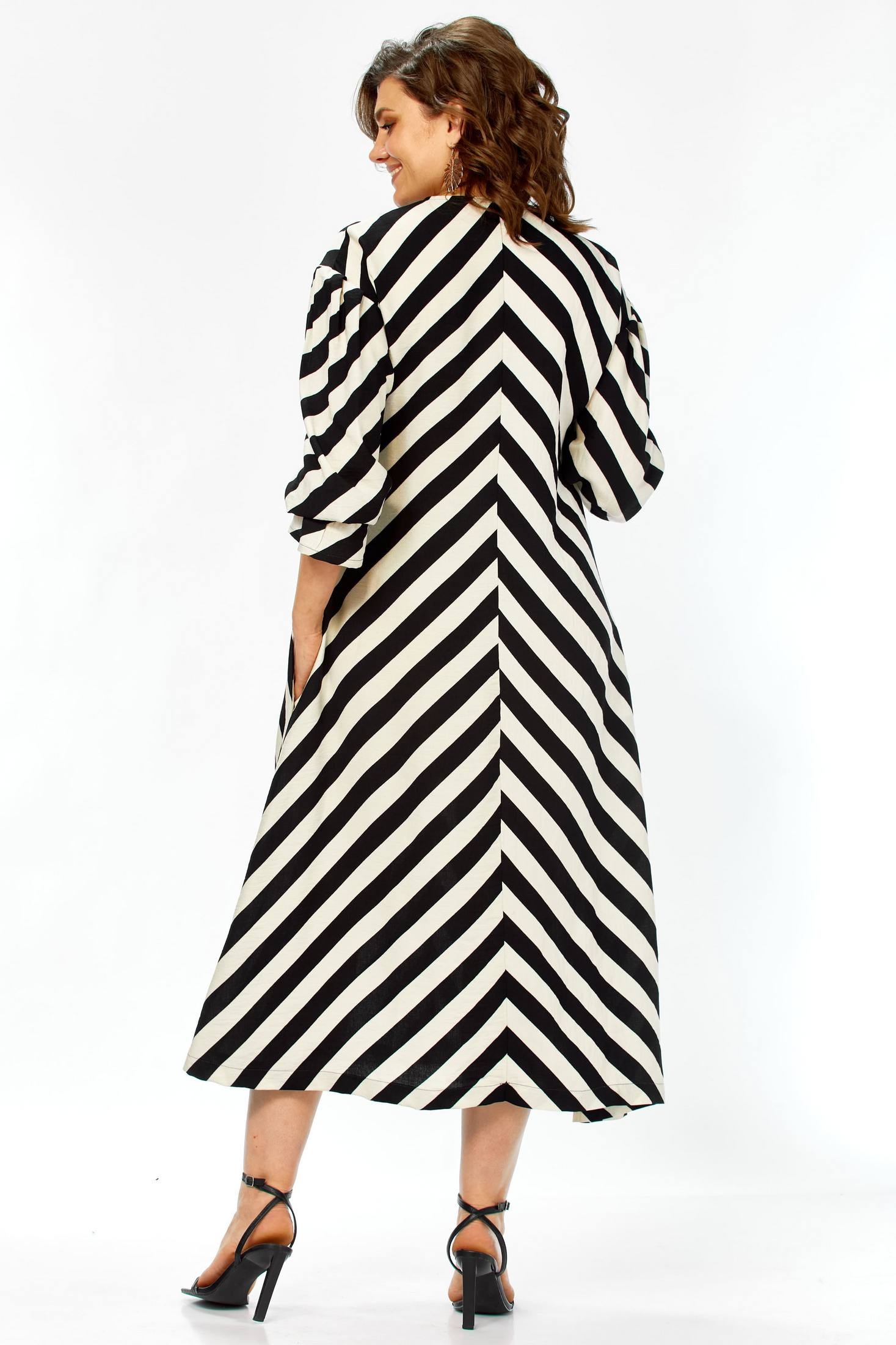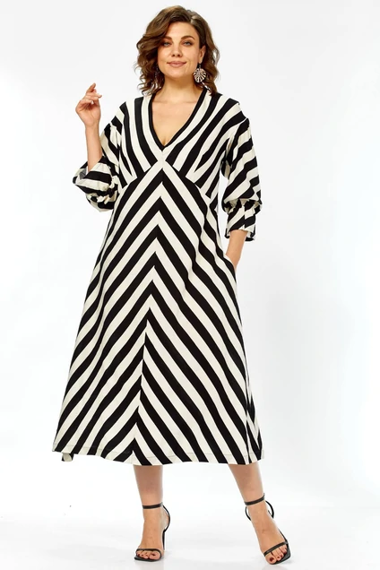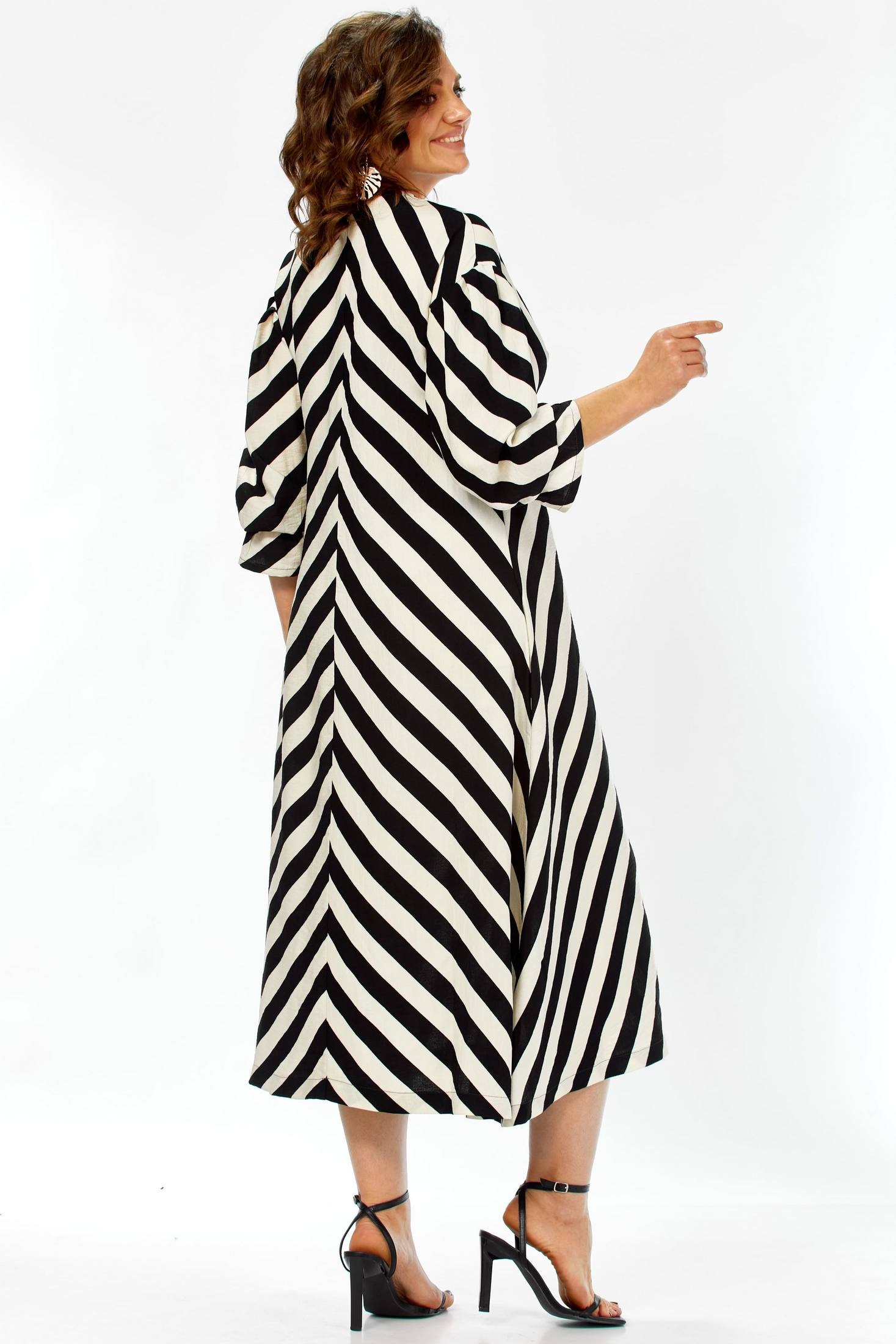 Платье 5084 Celentano lite — это идеальная деталь вашего гардероба. Коллекция бренда Celentano дарит комфорт и стиль с этим потрясающим платьем. Изготовленное из натурального хлопка, платье обеспечивает легкость и свободу движений. Его прямой, но свободный крой, V-образный вырез и оригинальные рукава-фонарики создают женственный и романтичный образ. Контрастный черно-белый принт в широкую полоску визуально вытягивает силуэт. Миди длина (125 см) элегантно прикрывает колени, добавляя изысканности. Удобные прорезные карманы обеспечивают практичность. Платье предназначено для весенне-летнего сезона — идеально для повседневного использования, прогулок и встреч с друзьями. Сочетайте его с босоножками или сандалиями, и вы всегда будете в центре внимания.