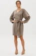 Перед отрезной по линии талии - «на запах». Лиф переда с вытачками от подреза до центра груди. Юбка переда платья со встречными складками, со швами под складками, в нижней части которых обработаны разрезы.