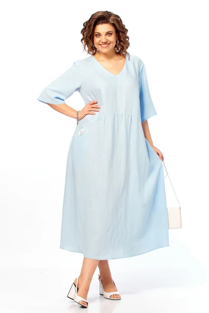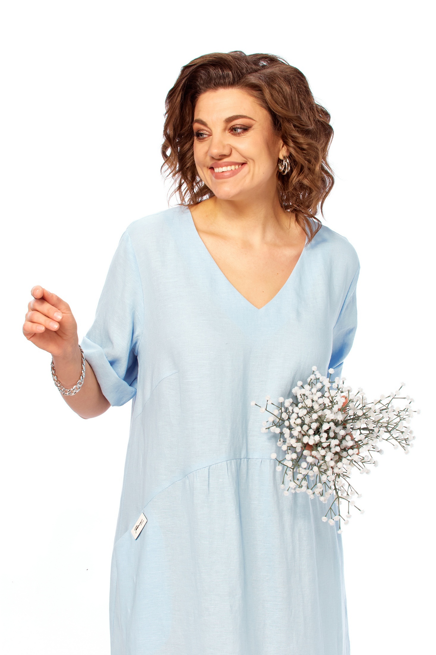 Платье 2172 голубой Diamant — это идеальный вариант для вашего гардероба. Коллекция бренда Diamant предлагает свободный крой из сочетания льна и вискозы, что обеспечивает комфорт и лёгкость. Стильное платье идеально подходит для летнего сезона и подходит как на каждый день, так и на отдых. V-образная горловина и полукруглый подрез в области талии создают элегантный силуэт, в то время как боковые карманы добавляют функциональности. Правый карман украшен акцентной нашивкой. Длина по спинке составляет 125 см, а длина рукава — 35 см, что создаёт удобную среднюю длину. Голубой цвет добавляет свежести и романтичности в образ.