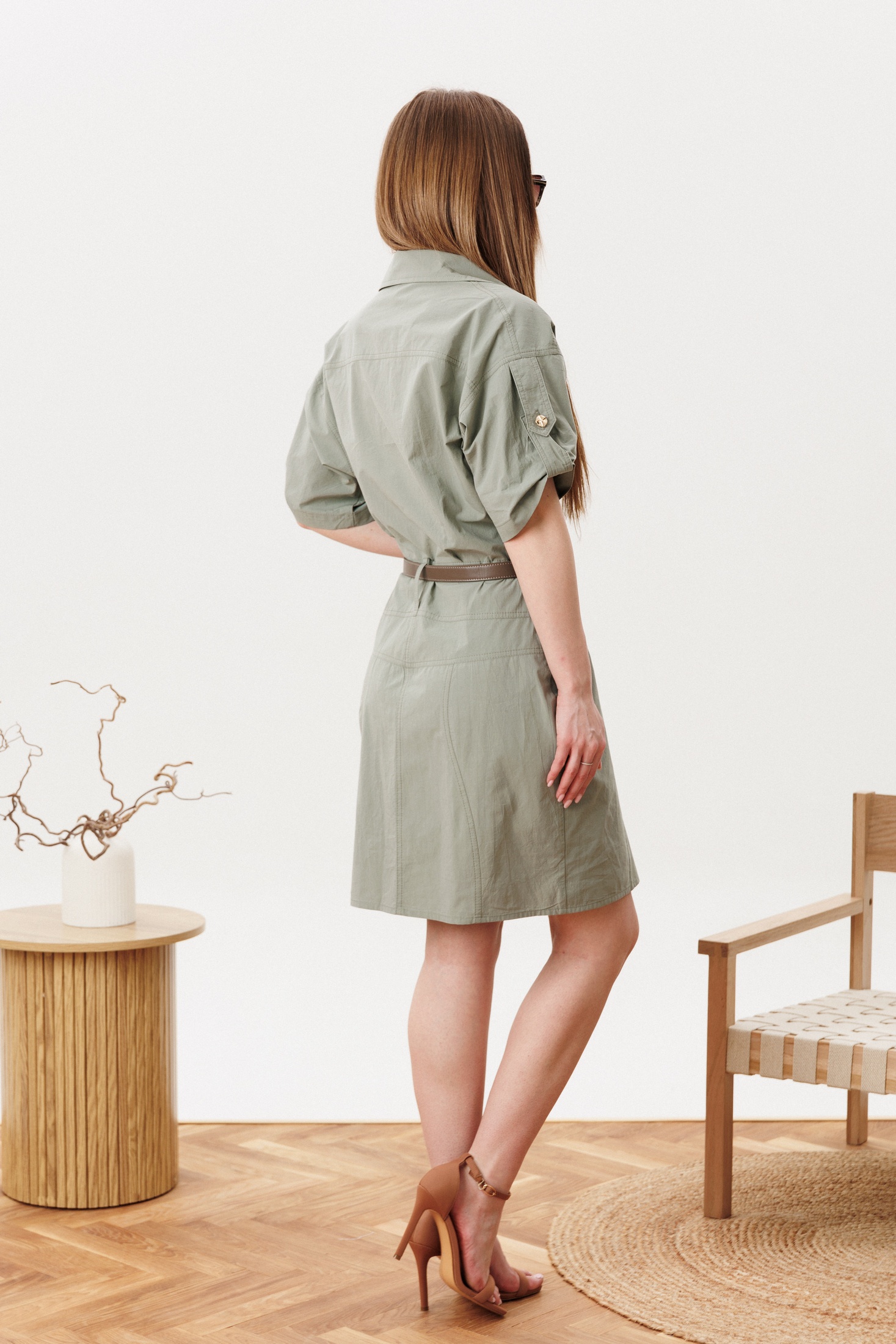 Платье 2176 олива Diamant из коллекции бренда Diamant. Это платье изготовлено из высококачественного хлопка, что обеспечивает комфорт и стиль в любое время года. Полуприлегающий силуэт с застежкой на молнию в левом боковом шве дополняется отрезным поясом со шлевками и съемным поясом, что подчеркивает талию и создаёт элегантный образ. Воротник отложной с лацканами и кокетками добавляет изысканности, а накладные карманы практичности. Длина по спинке составляет 94 см, а длина рукава 23 см, с хлястиками и пуговицами для дополнительного акцента. Подойдет для офиса и повседневной носки, а оливковый цвет прекрасно гармонирует с любыми аксессуарами.