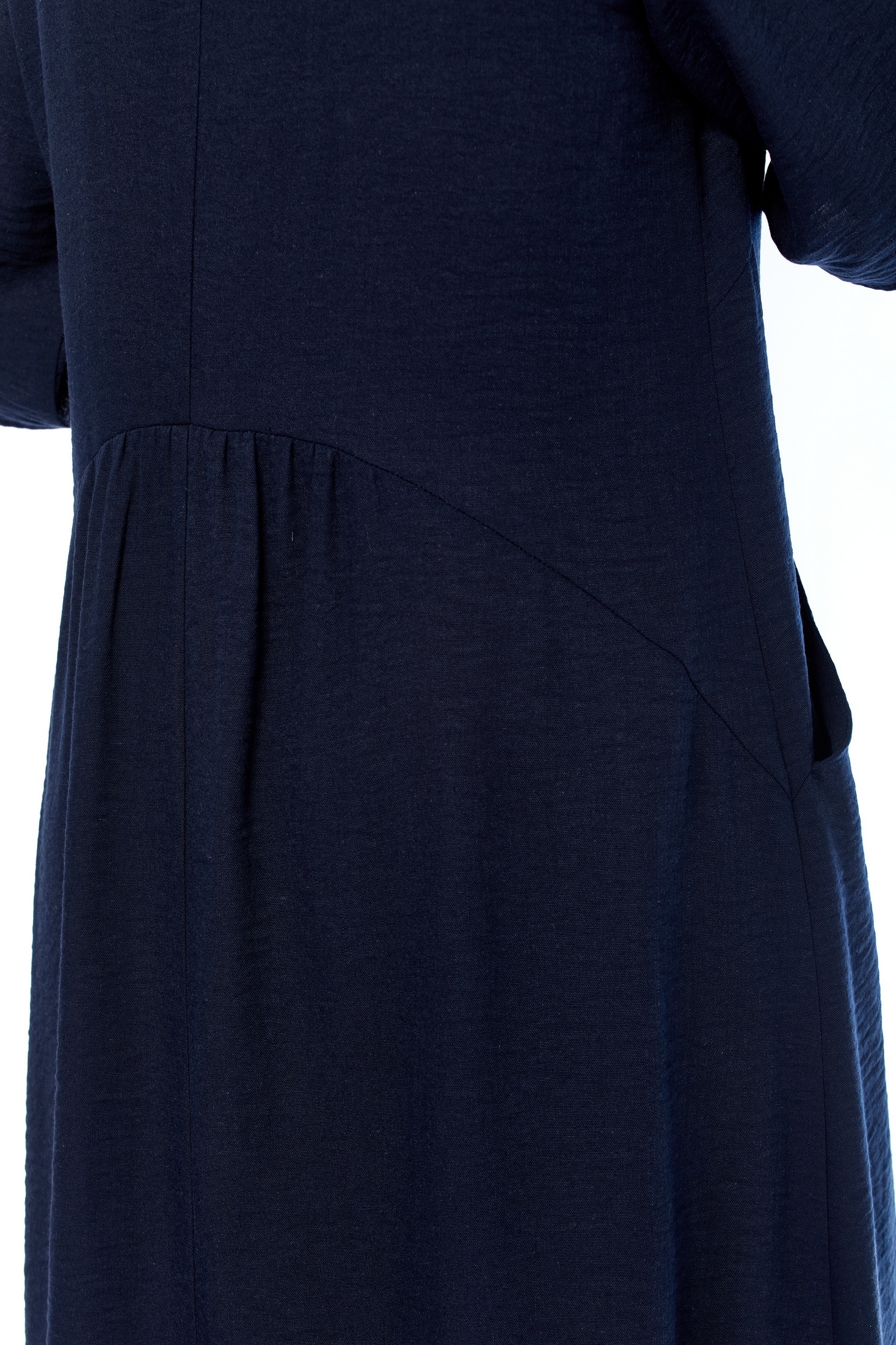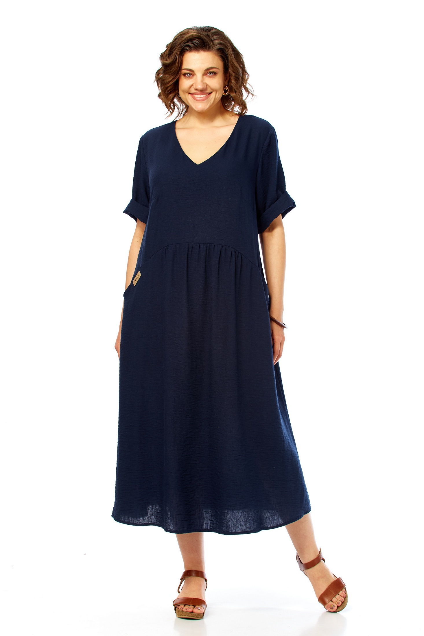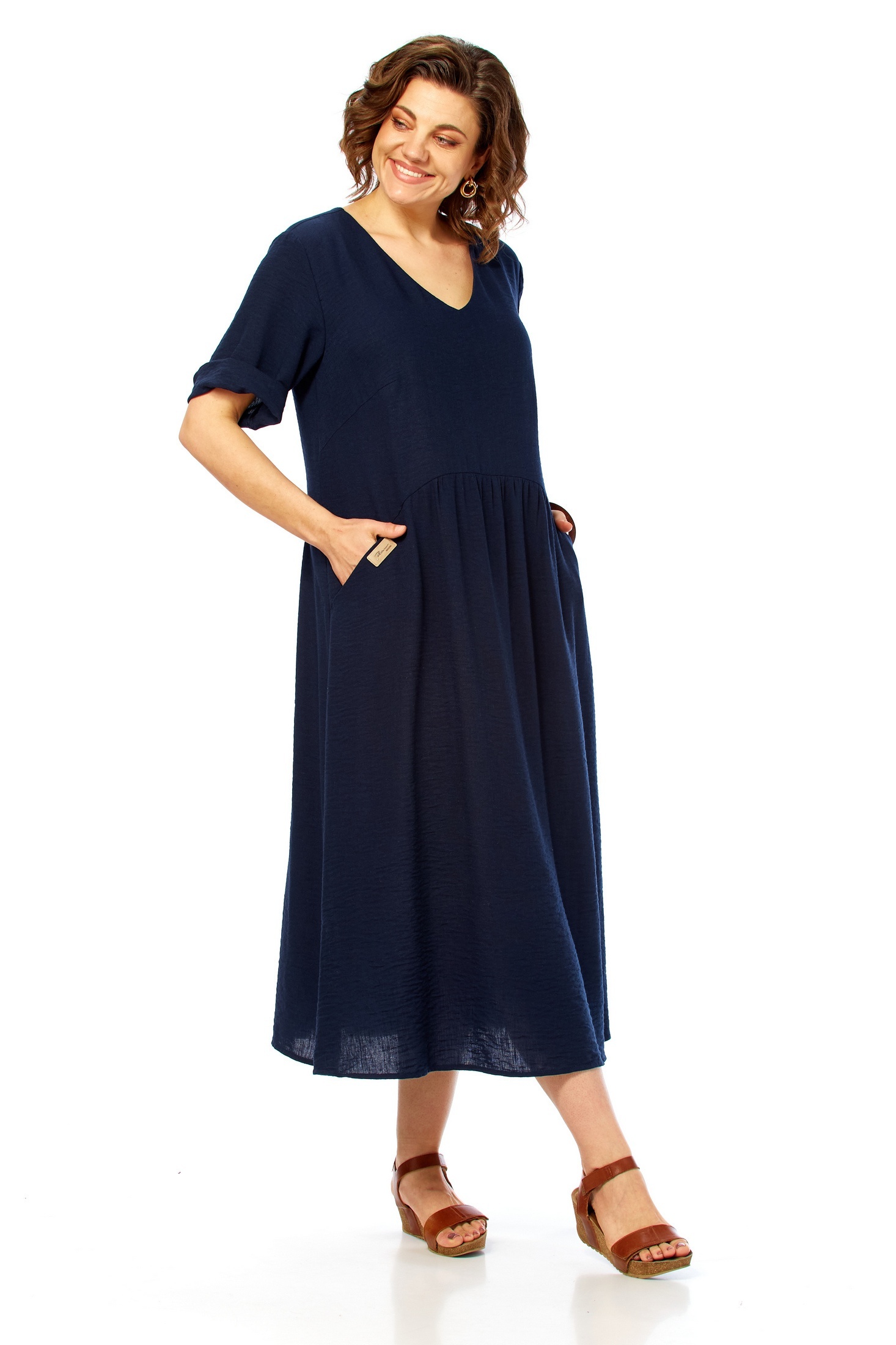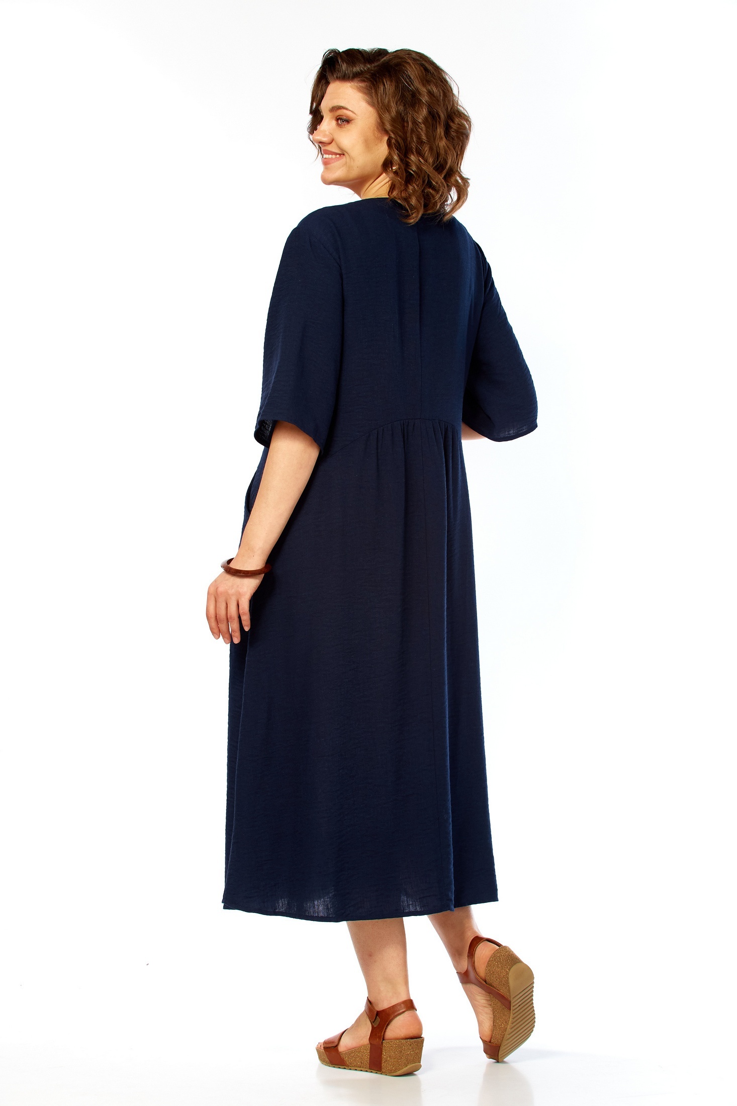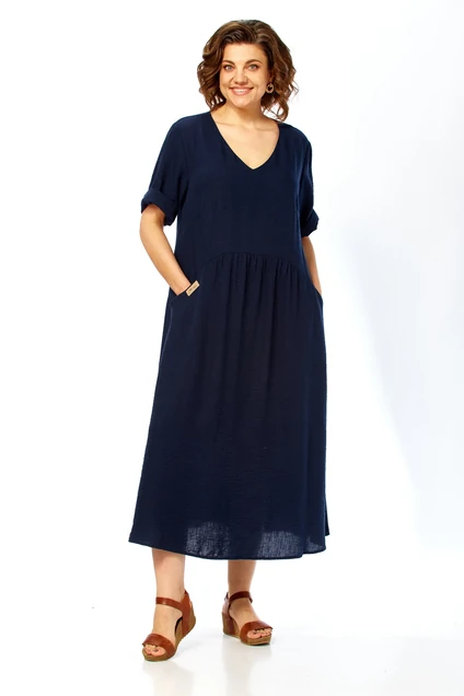 Платье 2182 синий Diamant — идеальный выбор для комфортного и стильного образа. Коллекция бренда Diamant сочетает в себе удобство и оригинальность. Изготовленное из смеси хлопка и полиэстера, платье обеспечивает великолепную воздухопроницаемость и легко стирается. Свободный крой и длина миди создают легкий и непринужденный стиль, а V-образная горловина придает образу нежность. Практичные боковые карманы декорированы нашивкой, добавляя функциональности и уникальности. Рукава длиной до локтя и длина по спинке 125 см делают его отличным вариантом для весны и лета. Синий цвет платья подчеркивает его универсальность, подходящую для повседневных выходов или работы. Длина рукава 35 см.