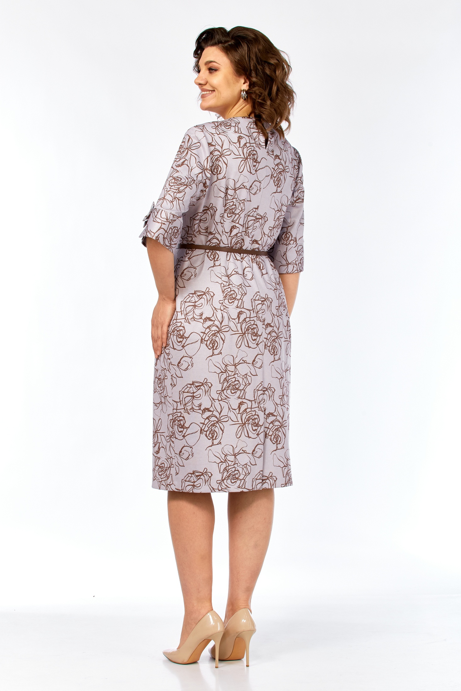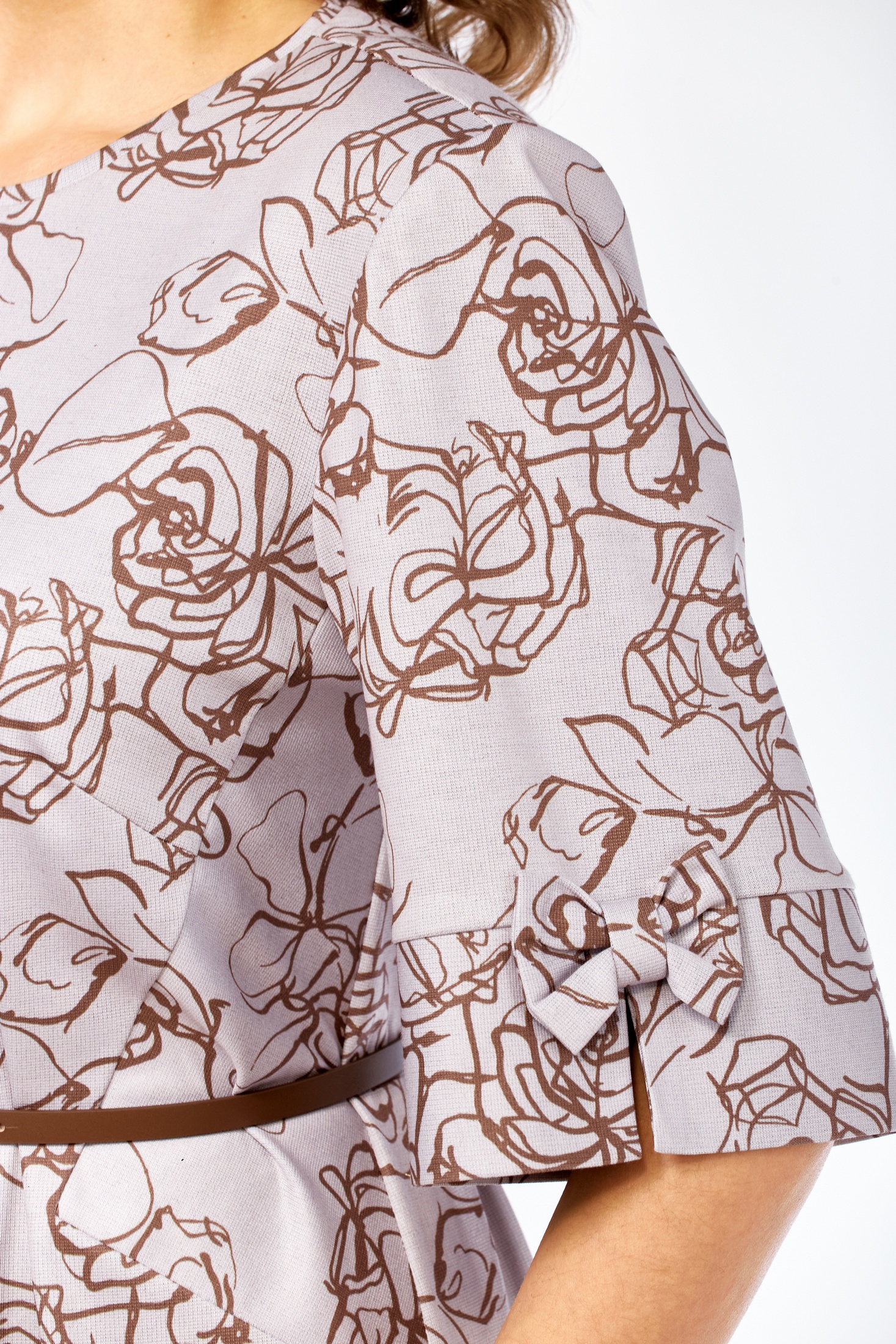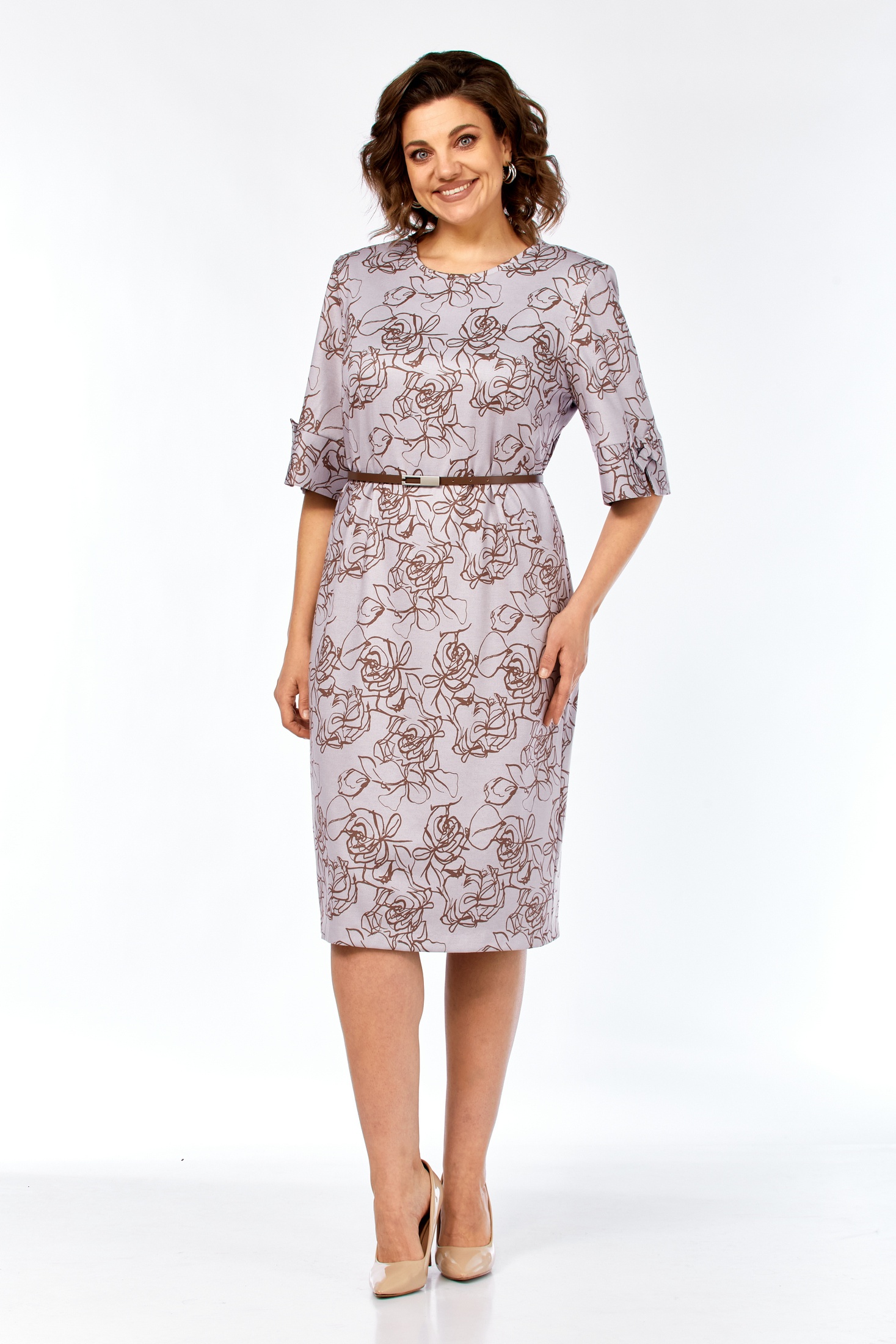 Платье 2406-2 Элль-стиль — идеальный выбор для повседневного гардероба. Коллекция бренда Элль-стиль предлагает женственное платье из трикотажного полотна, полуприлегающего силуэта с длиной миди. Основной материал содержит вискозу, что обеспечивает мягкость и комфорт, и полиэстер для прочности. Платье украшено нагрудными вытачками и декоративными элементами на втачном рукаве длиной 7/8. Застежка на петлю-пуговицу подчеркивает округлую горловину, внизу спинки обработана шлица. Съемный пояс акцентирует талию, создавая эффектный образ. Пастельный цветочный принт делает его универсальным для многих сезонов, особенно весны и осени. Идеально подходит как на работу, так и на праздничное событие.