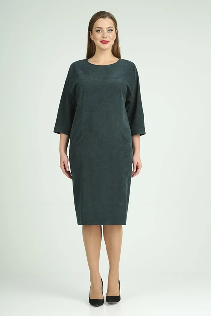 Платье из текстильной штроксовой ткани . Платье полуприлегающего силуэта слегка заужено к низу с рукавом "летучая мышь". Рукав цельнокроеный, переходящий в треугольную кокетку, отстроченную отделочной строчкой.Такая же кокетка есть и на спинке платья. Вырез горловины "лодочка". Вертикальные талиевые вытачки на передней полочке переходят в косые карманы. На спинке платья средний шов с потайной молнией и небольшой шлицей, вертикальные вытачки. Длина платья по спинке от плечевого шва у выреза горловины вниз 108см, длина рукава от выреза горловины 54см.