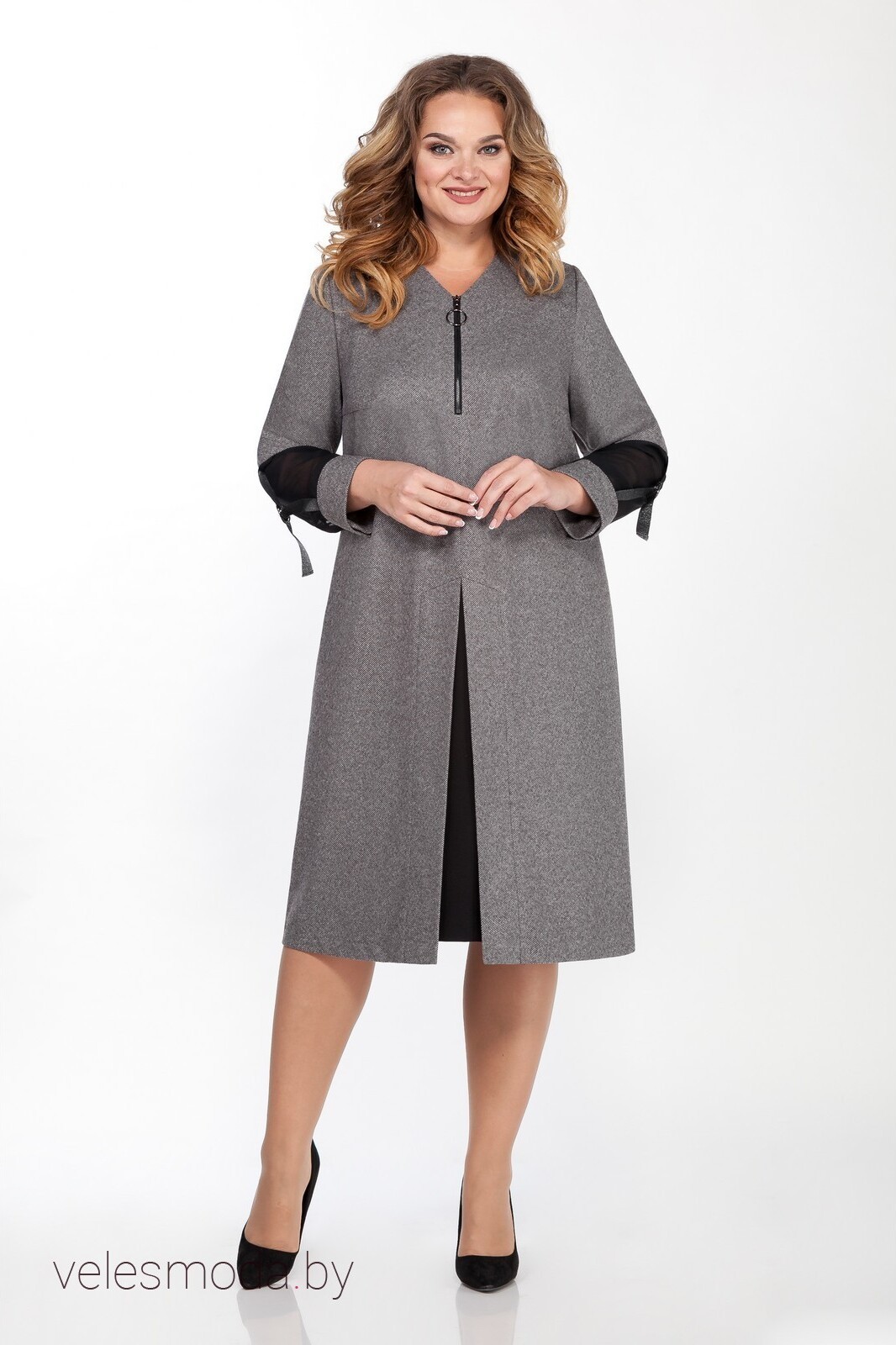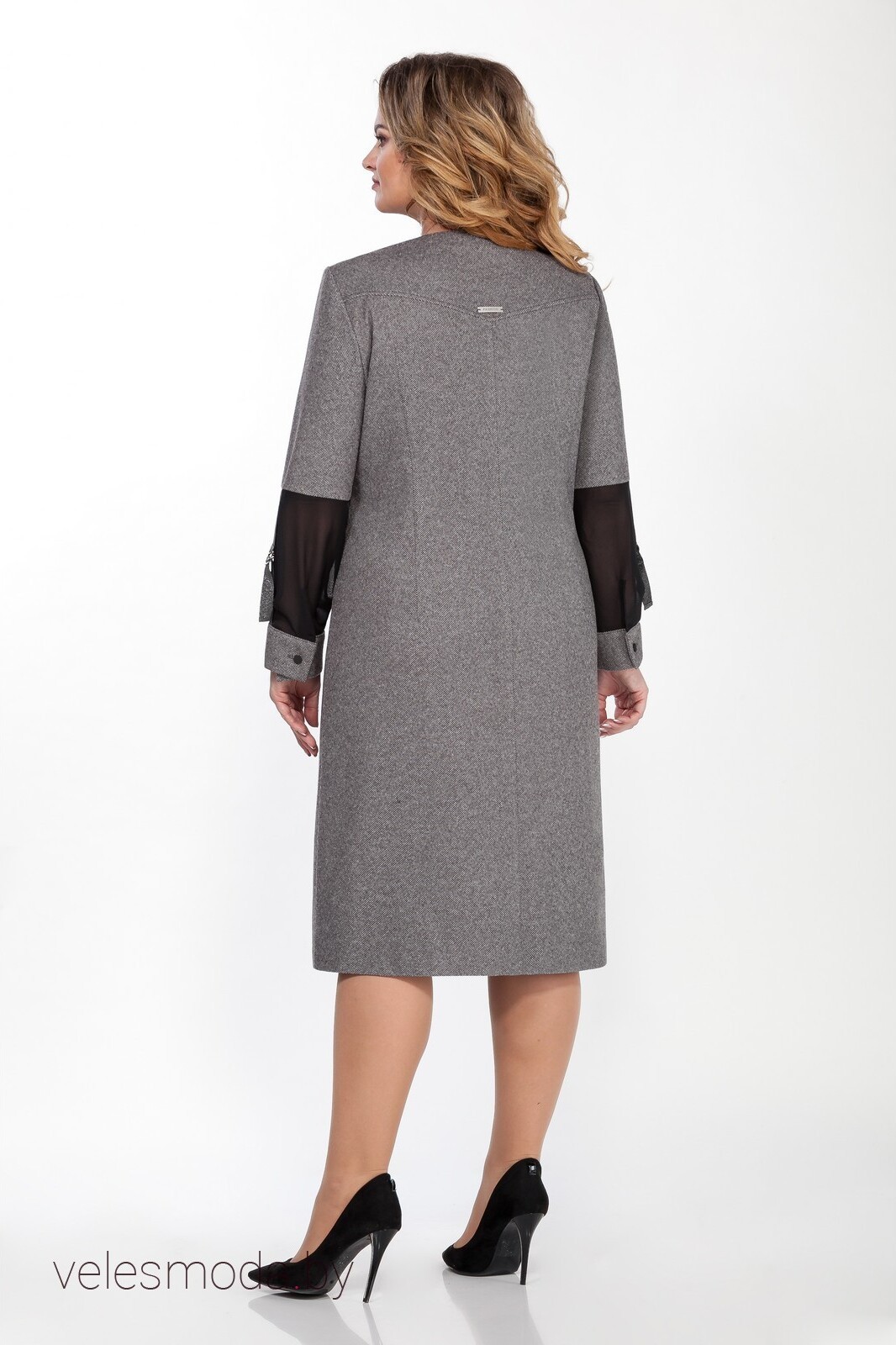 Платье женское слегка расклешенное к низу, лучший выбор как на каждый день, так и на светские мероприятия. Полочки с нагрудными вытачками, средний шов на полочке переходит в декоративный разрез с вставкой из черной ткани. Вырез горловины V-образный, декорированный функциональной молнией. Спинка с отрезной кокеткой и средним швом, имеет талиевые вытачки. Рукав втачной с притачной деталью из шифона и манжетой на петлю, пуговицу. В этом плате вы будете выглядеть элегантно, но при этом чувствовать себя комфортно.