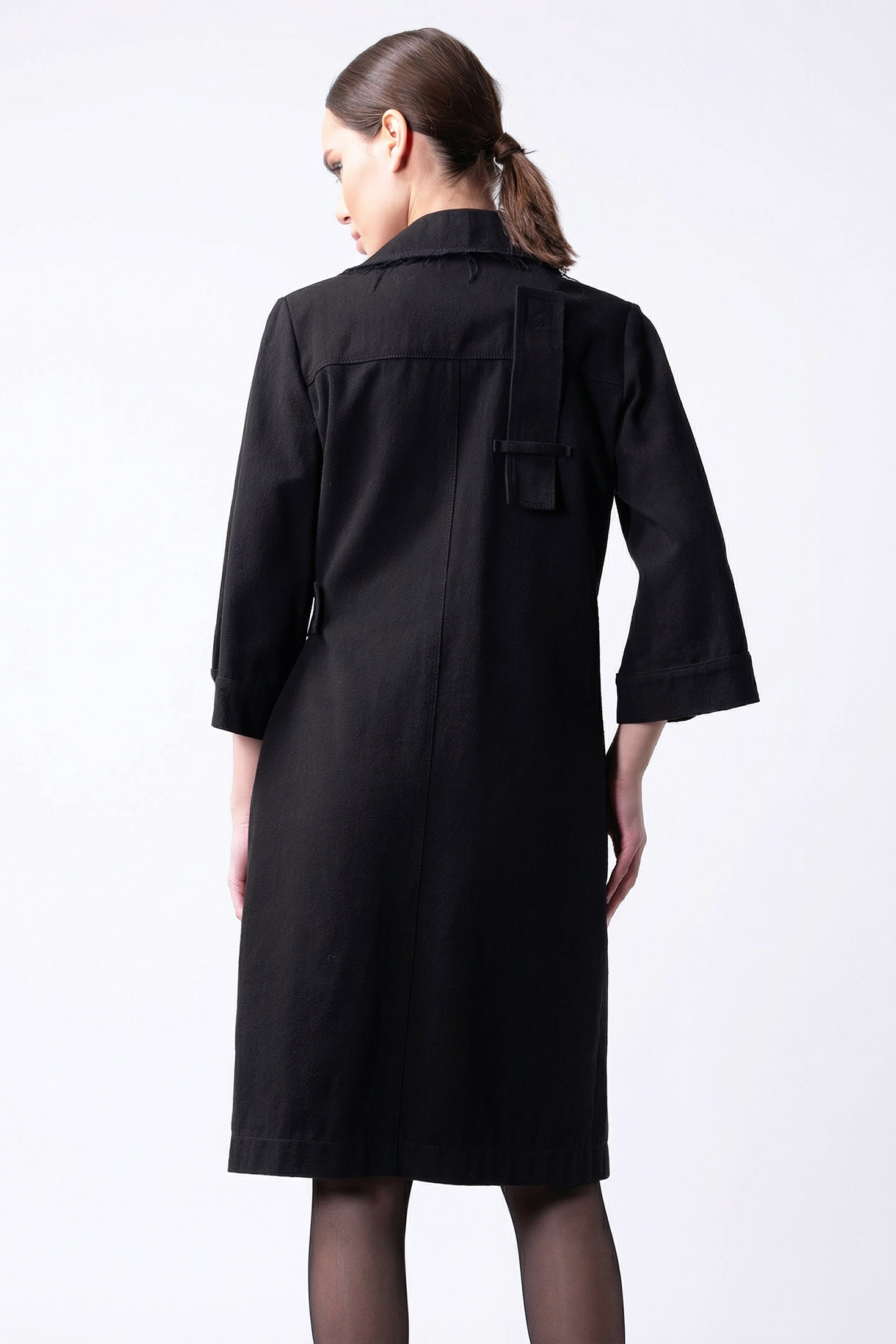 Платье 7073 черный Erika — это стильный и элегантный выбор для любого случая. Коллекция бренда Erika предлагает классическое платье-чемодан, выполненное из 100% хлопка. Эта плотная ткань обеспечивает комфорт и долговечность, идеально подходя для делового и повседневного гардероба. Платье отличается свободным кроем с поясом на талии, что позволяет подчеркнуть фигуру. Классический воротник и 3/4 рукава добавляют изысканности, а удобные карманы — функциональности. Универсальный черный цвет гармонично сочетается с различными аксессуарами, что делает платье подходящим для любого сезона.