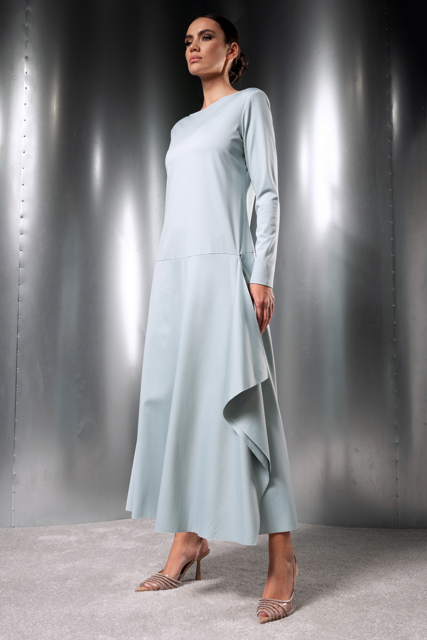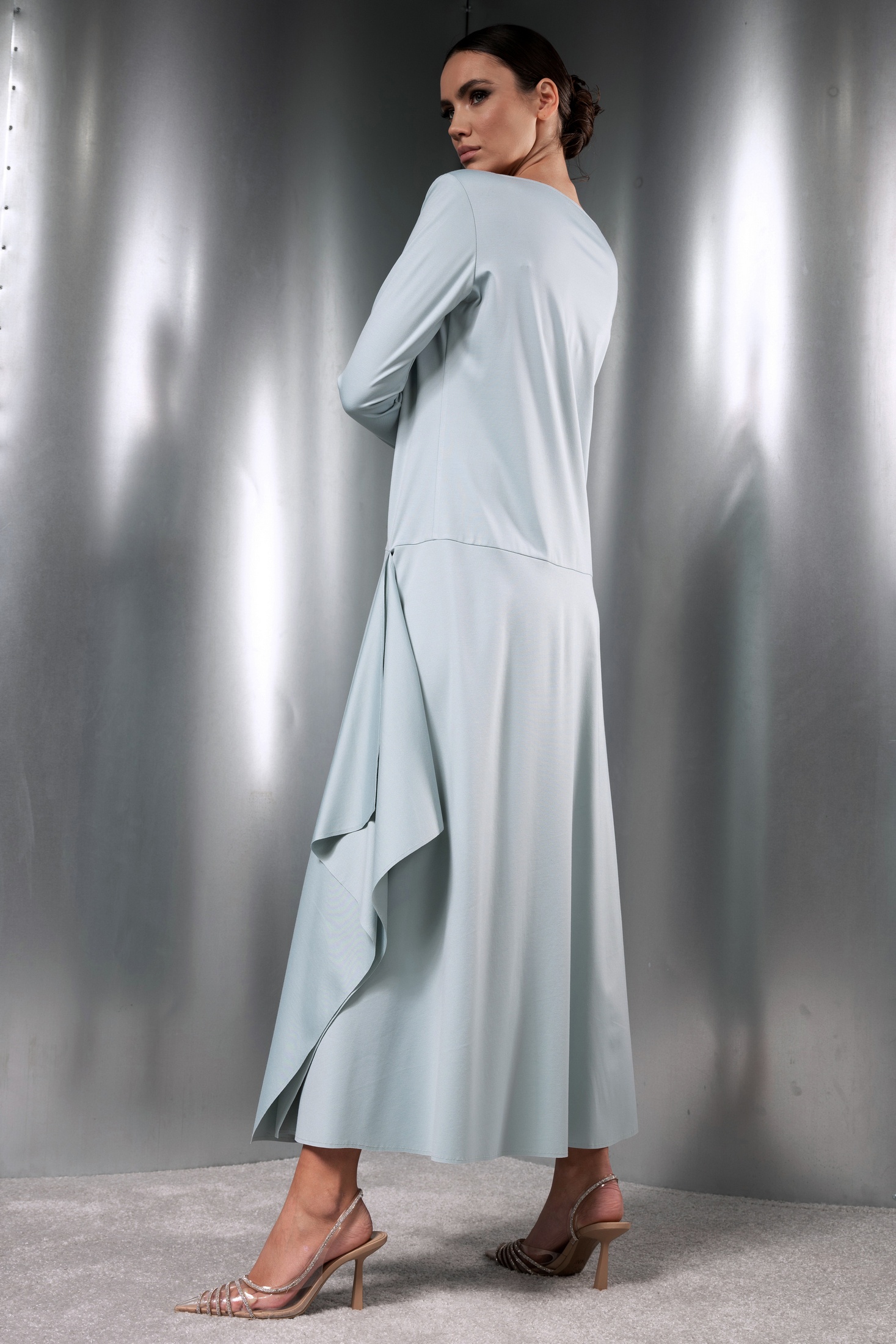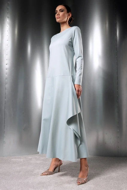 Платье 7370-3 голубой Erika из коллекции бренда Erika выделяется своим изысканным дизайном. Выполненное из вискозы, нейлона и лайкры, оно сочетает комфорт и стиль. Модель имеет расклешенный фасон с отрезной частью по линии бедер, что подчеркивает женственность и изящество. Оригинальный защип с имитацией волана придаёт уникальность образу, а карман в боковом шве добавляет практичности. Голубой цвет делает платье идеальным выбором для весенне-летнего сезона, добавляя свежести и легкости вашему гардеробу. Эта модель станет отличным выбором для повседневной носки, а также для офисных будней и деловых встреч.