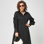 Платье женское повседневное трапецевидного силуэта, выполнено из трикотажного полотна двух дизайнов в сочетании с отделкой из экокожи. Вырез горловины круглый на притачной обтачке из довяза, плечо спущенное, рукав стачной по низу на притачной манжете из довяза. Декором служат вставски из экокожи по полочке, спинке и рукавам.