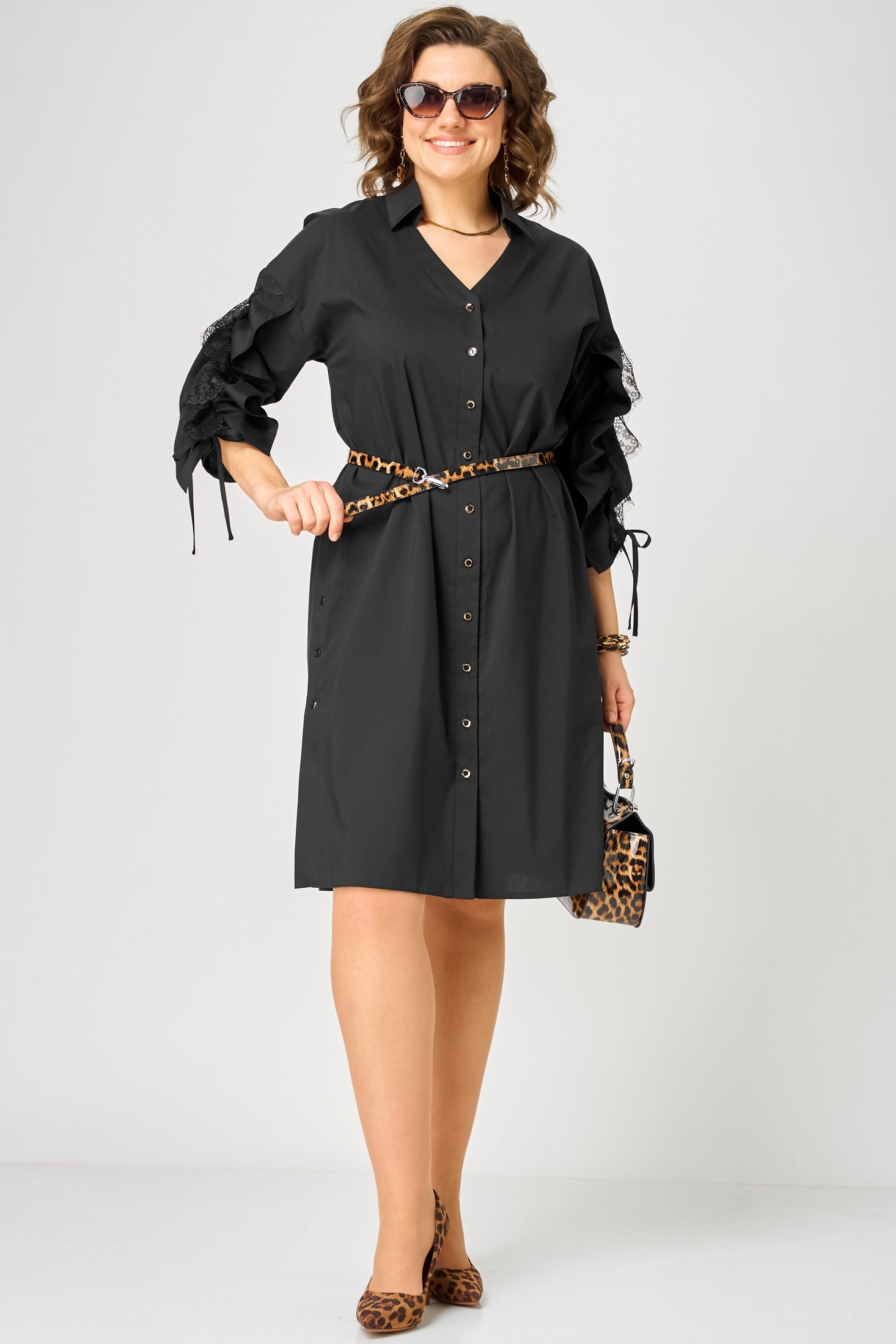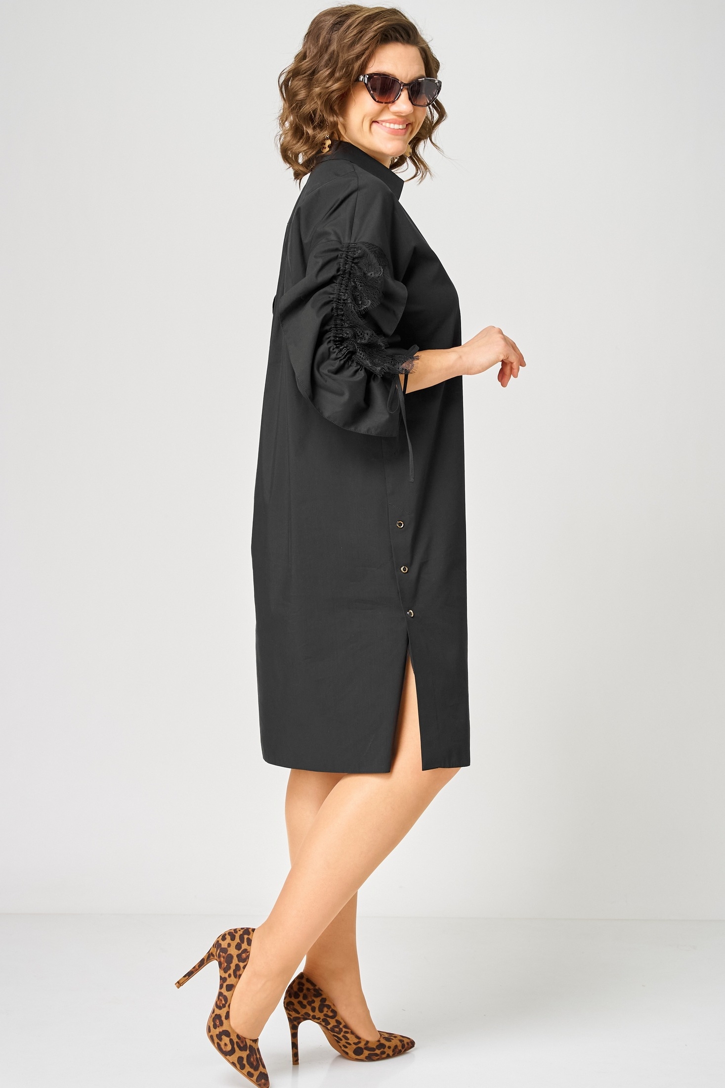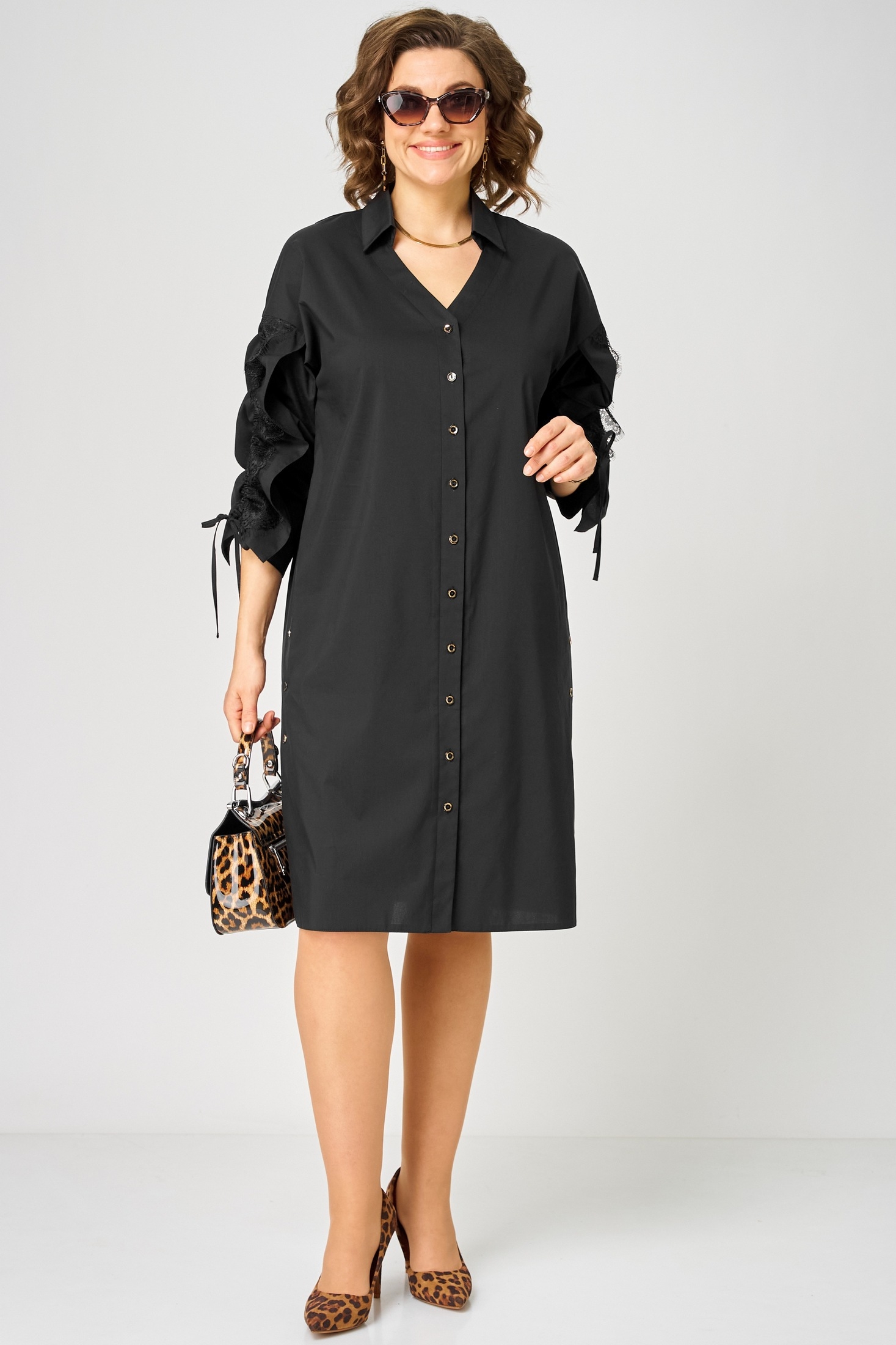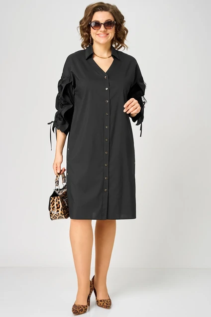 Платье 7102 черный EVA GRANT создаст стильный и современный образ на каждый день. Коллекция бренда EVA GRANT сочетает в себе высококачественный хлопок с изысканной отделкой. Прямой силуэт и спущенное плечо придают платью особый шарм. Фигурный вырез горловины и воротник-стойка добавляют элегантности, а регулируемые рукава с кулисками обеспечивают универсальность длины. Центральная застежка на пуговицах украшена отделочными пуговицами, а в боковых швах шлицы, создавая кокетливый образ. Идеально подходит для весенне-летнего сезона благодаря легкости и дышащим свойствам ткани. Чёрный цвет добавляет строгости, а стильное исполнение — динамики и свежести вашему гардеробу.