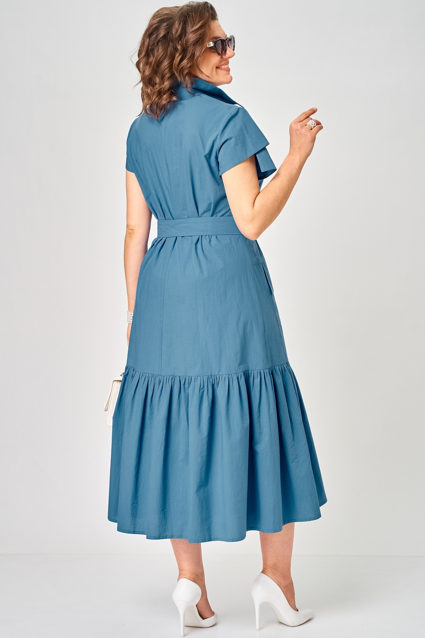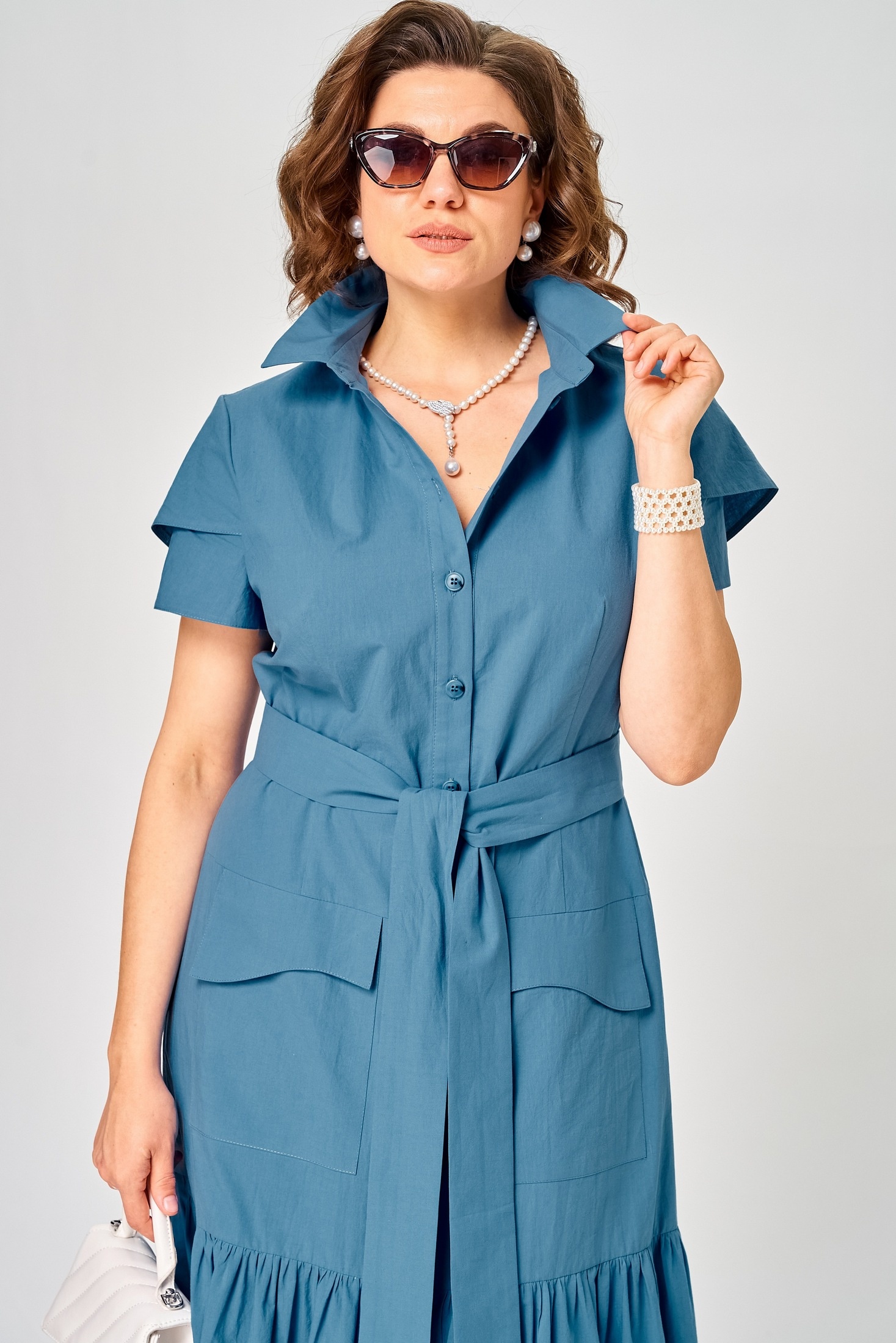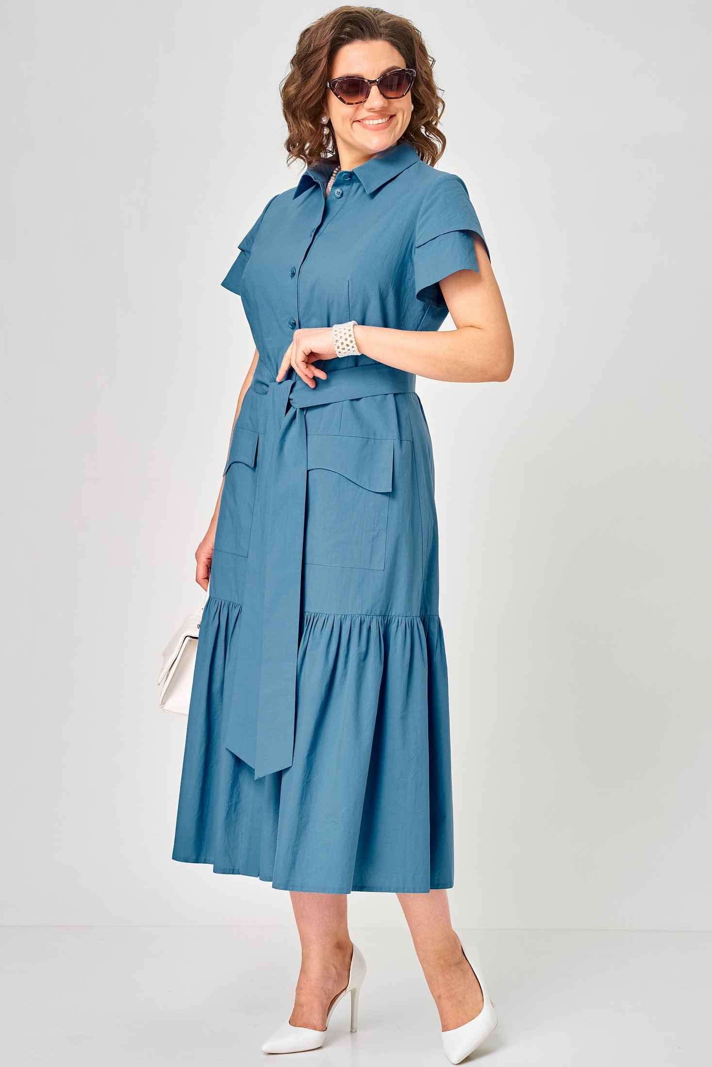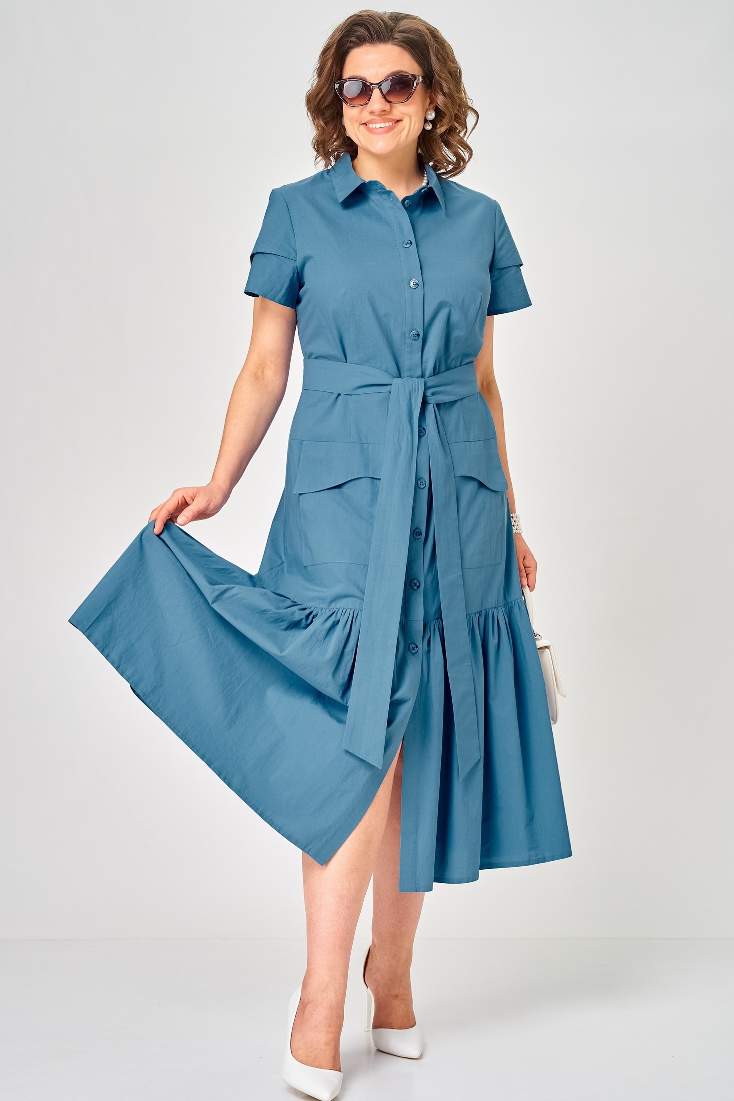 Платье 7168Е цвет джинс EVA GRANT — это стильное женское платье, идеально сочетающее спорт-шик и повседневную элегантность. Коллекция бренда EVA GRANT предлагает универсальный силуэт, выполненный из легкого хлопка, который обеспечивает комфорт и стиль в течение всего дня. Платье полуприлегающего силуэта расширяется книзу за счет волана, создавая игривый и трендовый образ. Застежка на пуговицы и воротник на стойке придают платью аккуратный вид. Короткий рукав с элементом асимметрии и съёмный пояс подчеркивают уникальность дизайна. Накладные карманы с фигурными клапанами добавляют функциональности. Подходит для теплого сезона и будет отличным выбором для повседневной носки. Джинсовый цвет позволяет легко сочетать платье с различными аксессуарами.